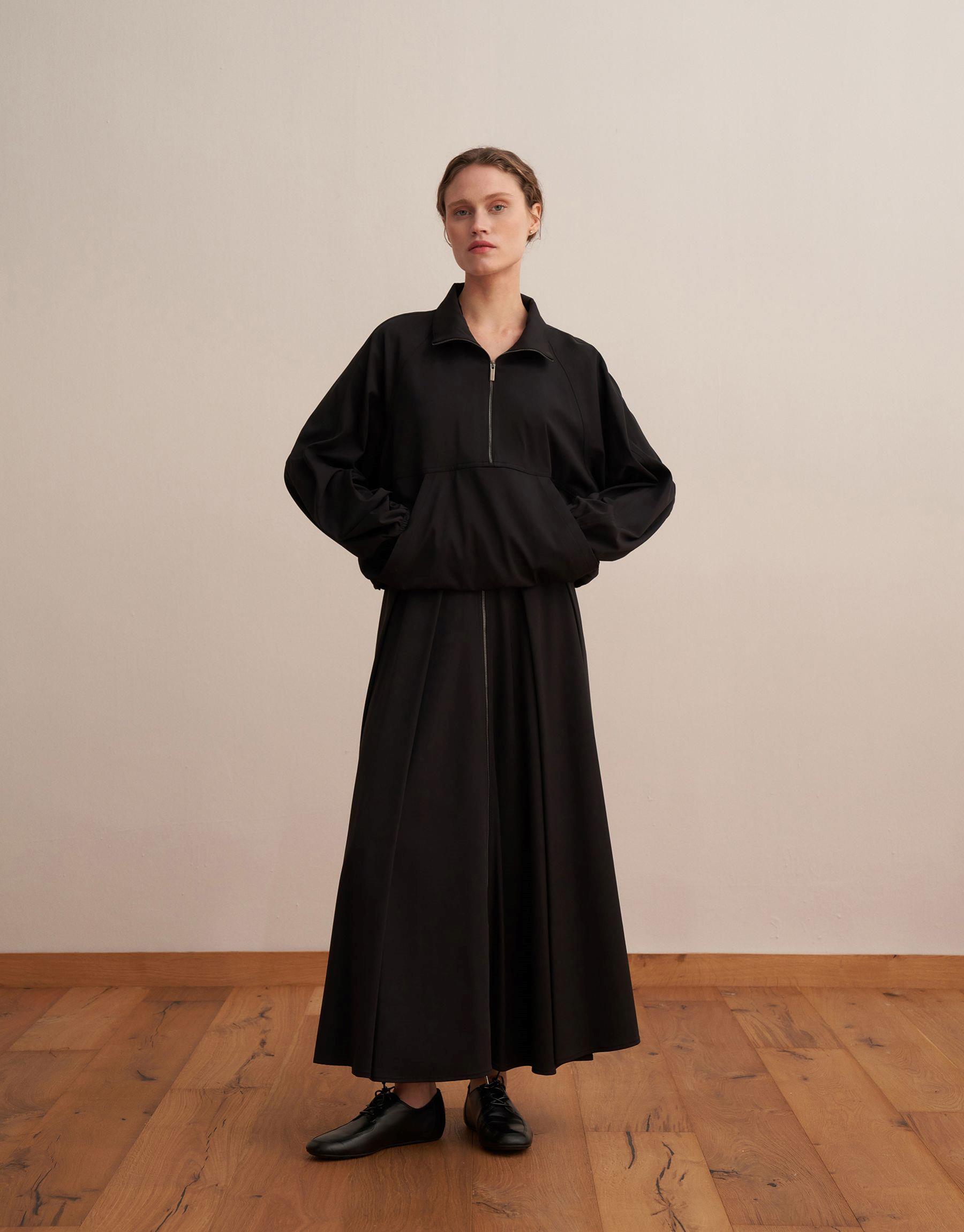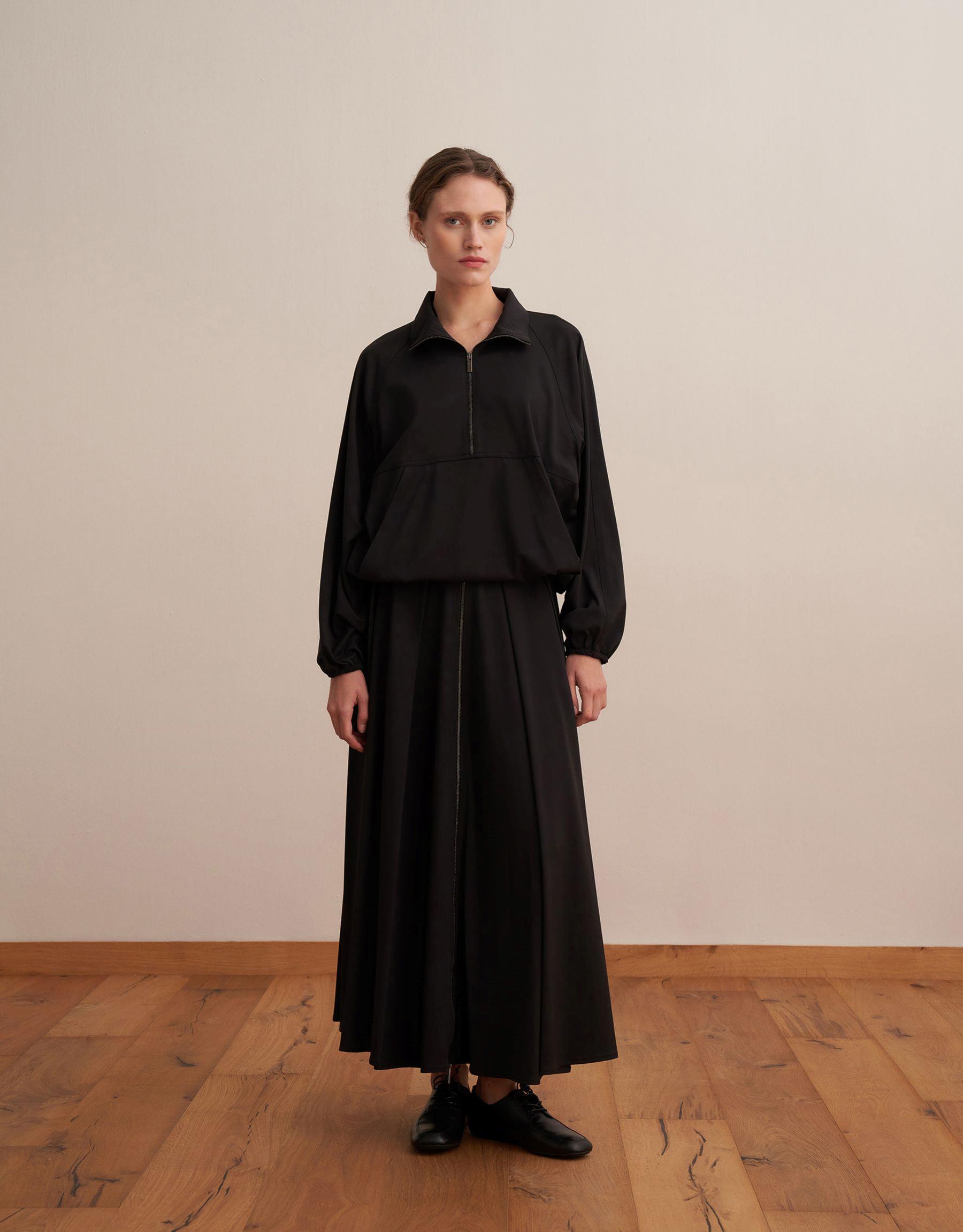 Fermuarlı Yüksek Yaka Teknik Sweatshirt Siyah