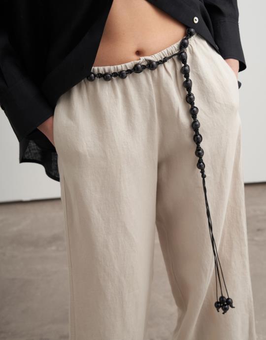 Ahşap Boncuklu Örgü Kemer Siyah