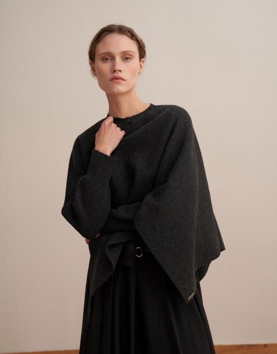 Yün Karışımlı Fermuarlı Yelek Koyu Yağ Yeşili
