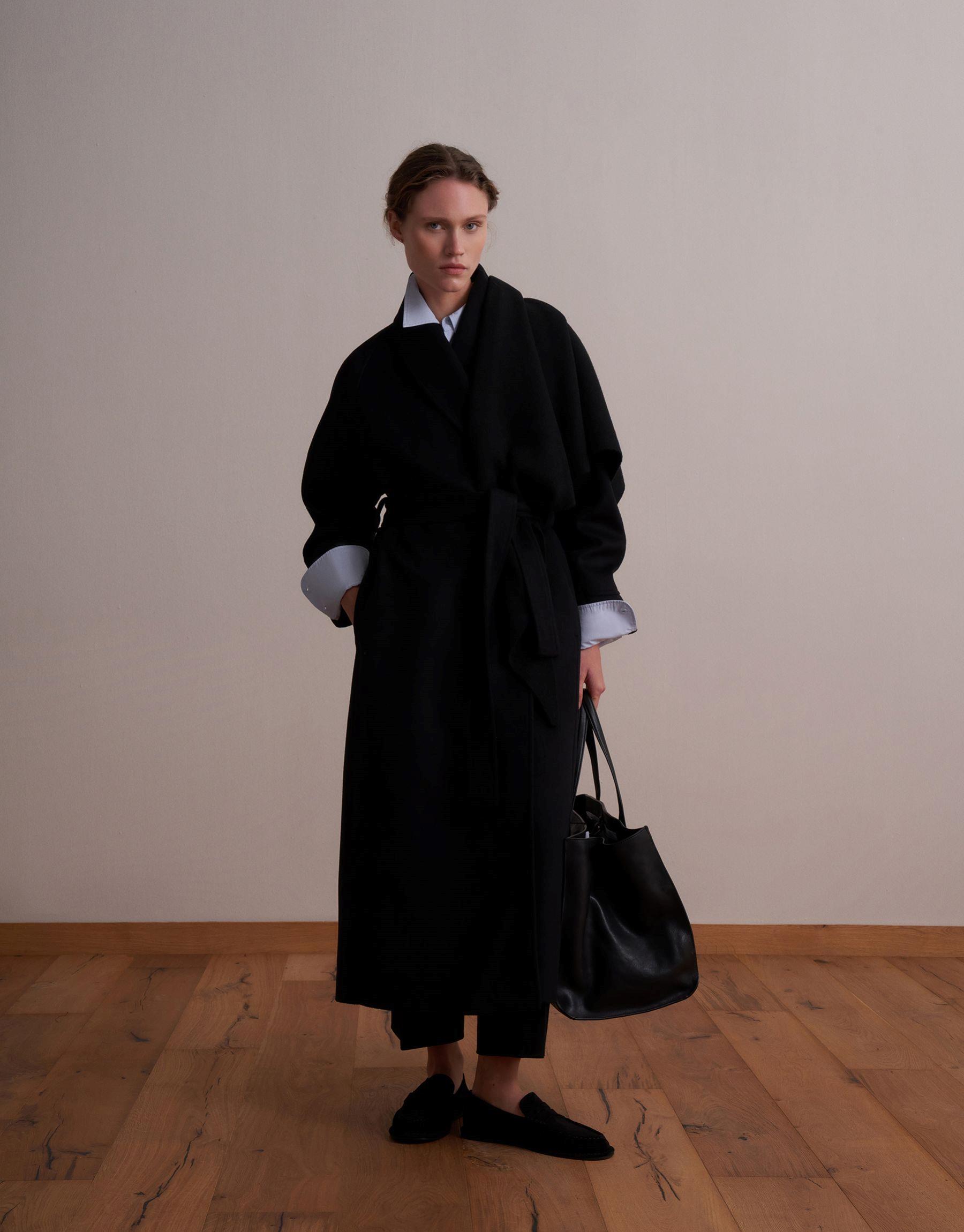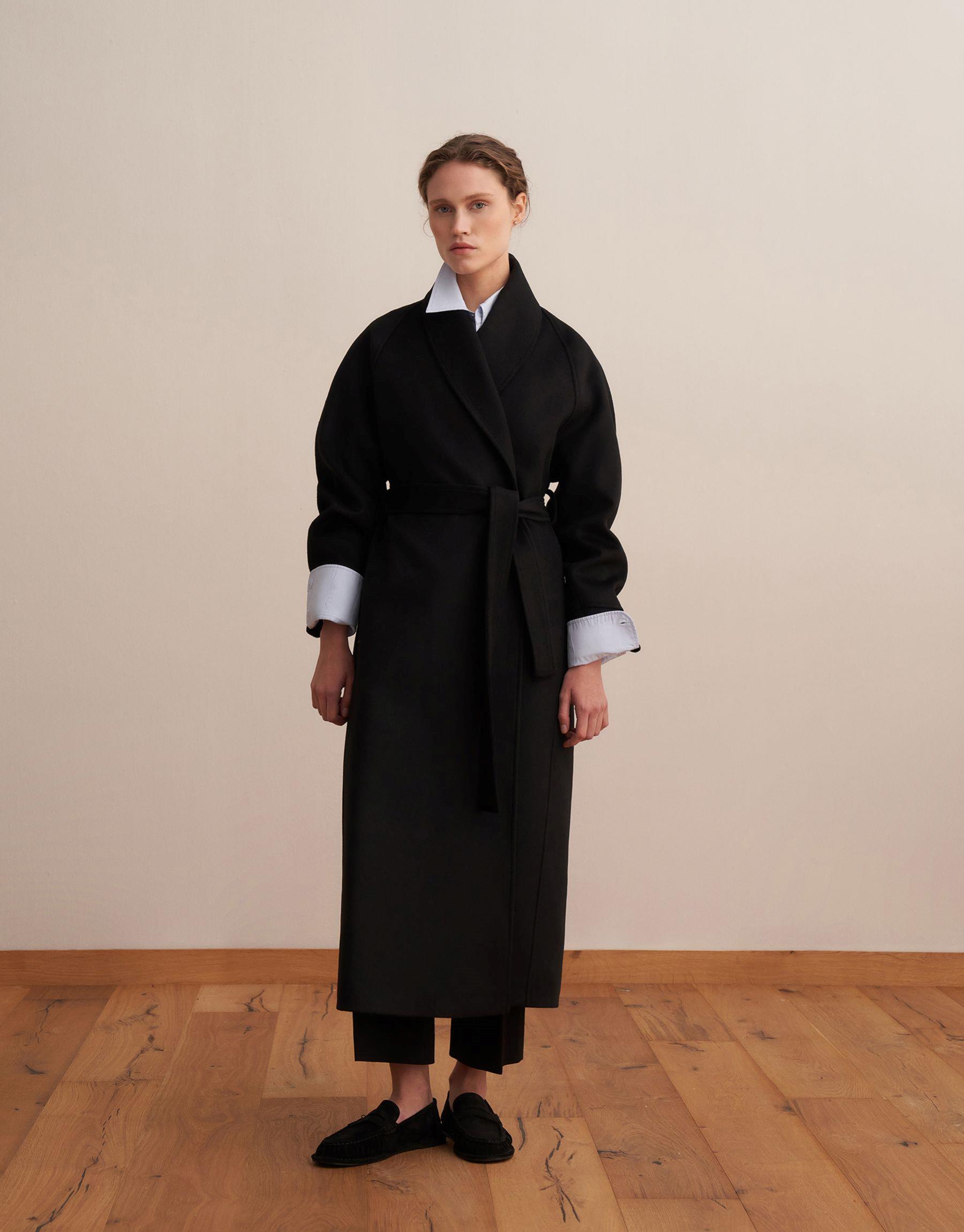 Bayan Siyah Şal Yaka Yün Palto | KK Design