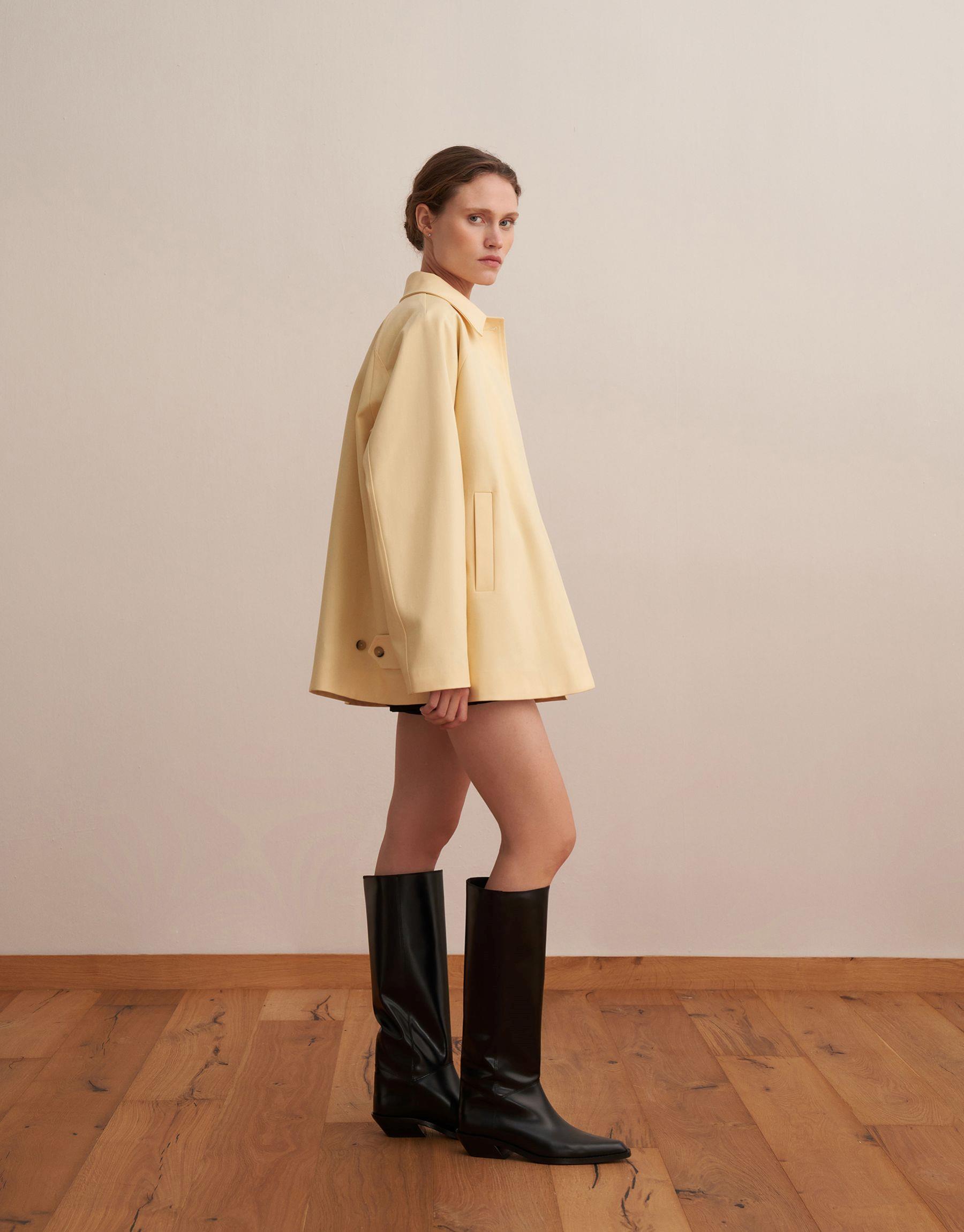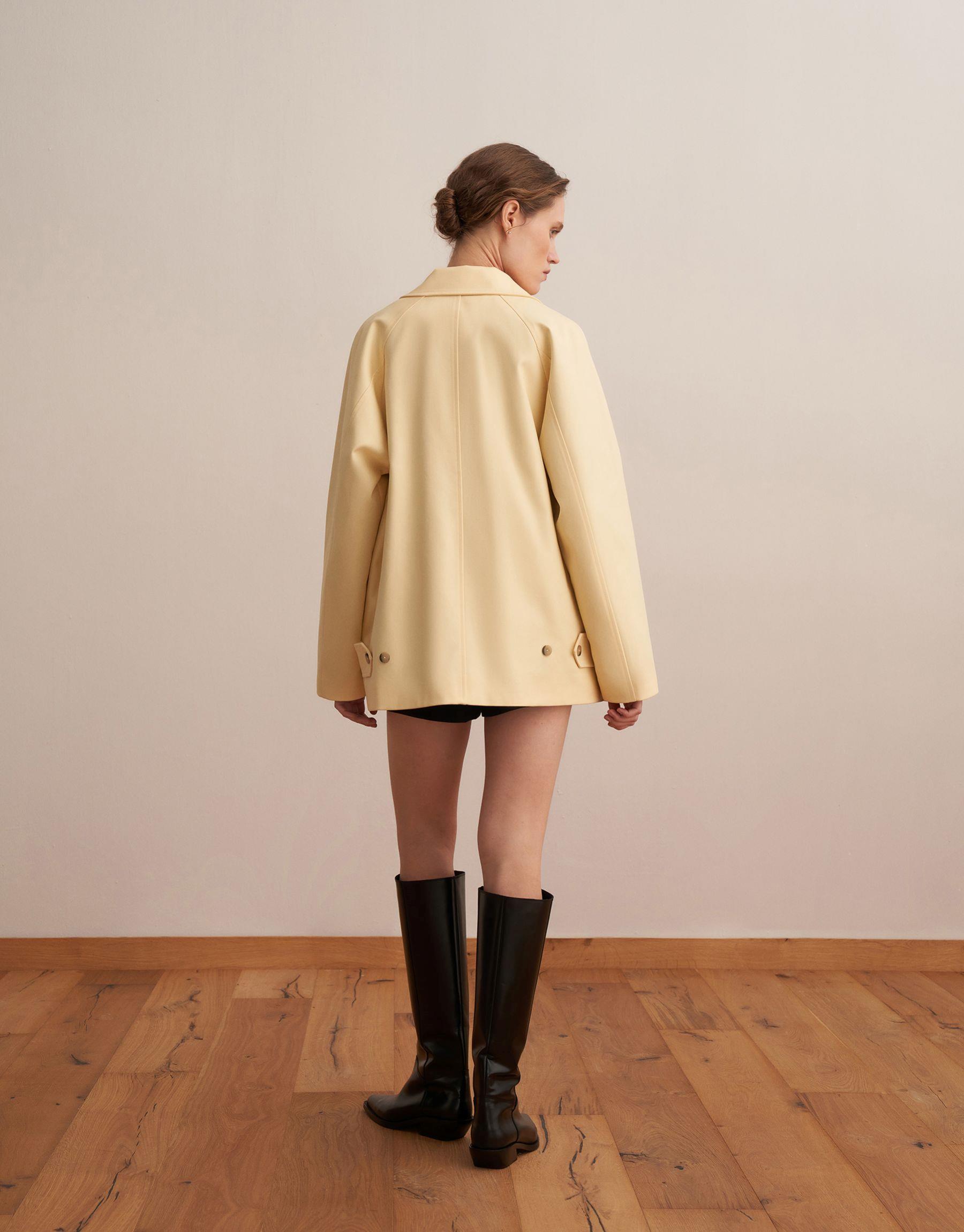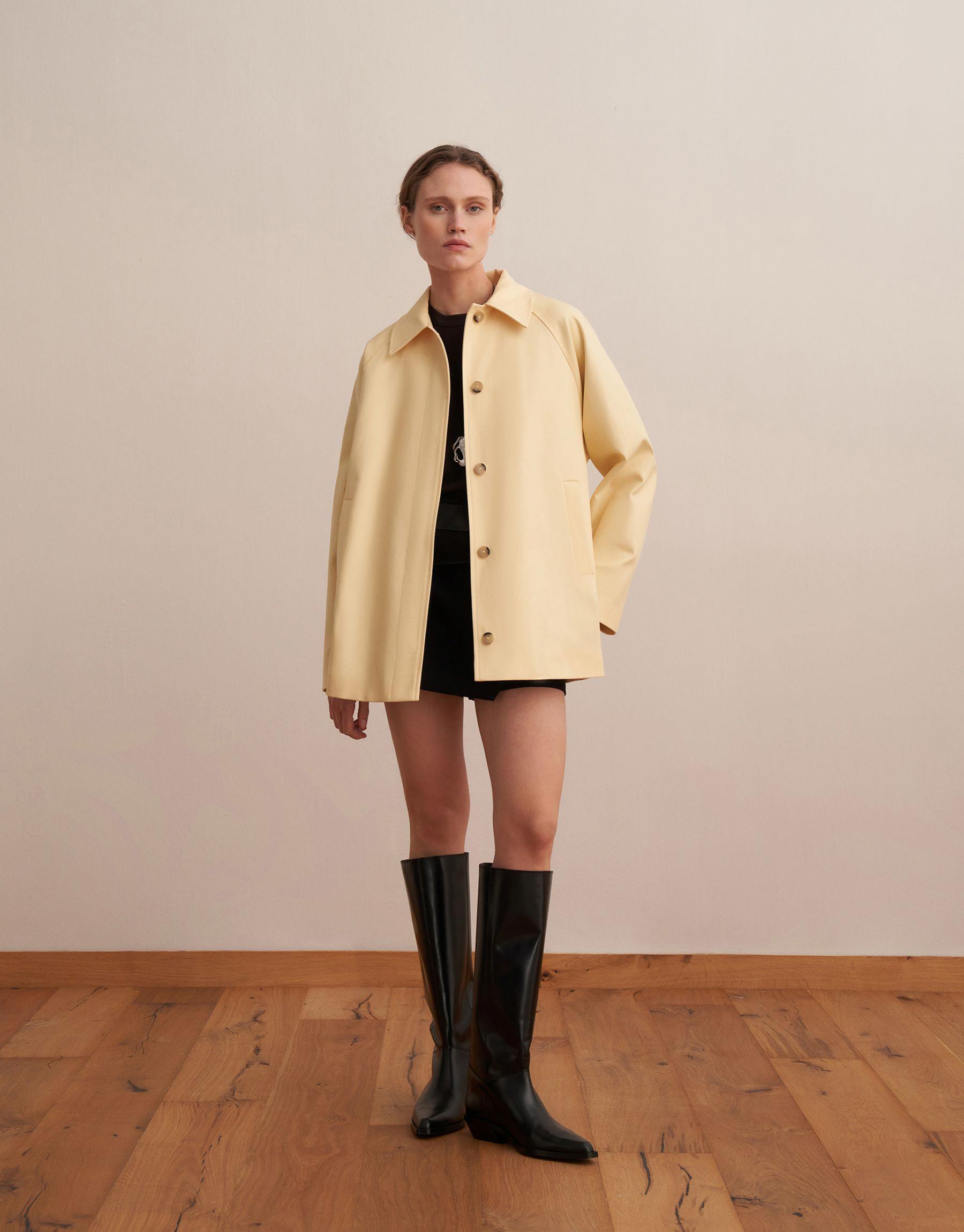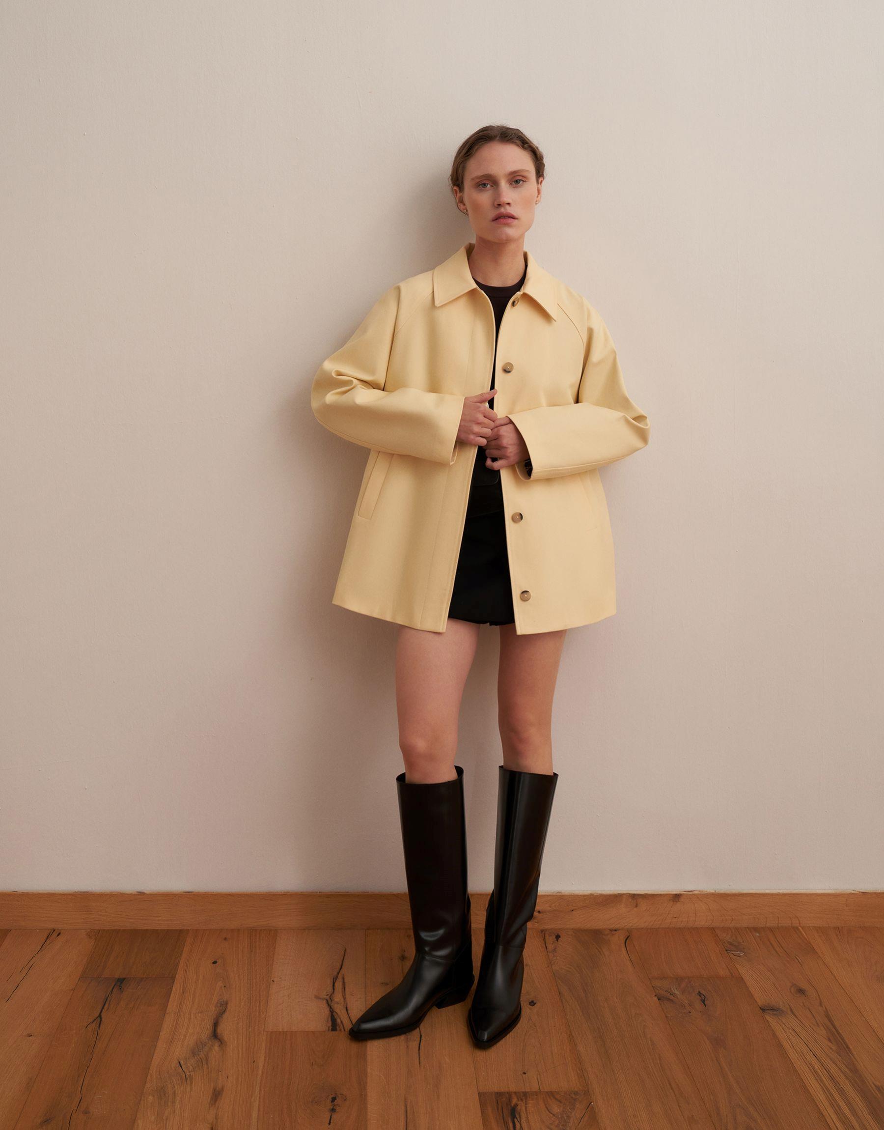 Bayan Soft Sarı %100 Koton Kontrast Detaylı Trençkot | KK Design