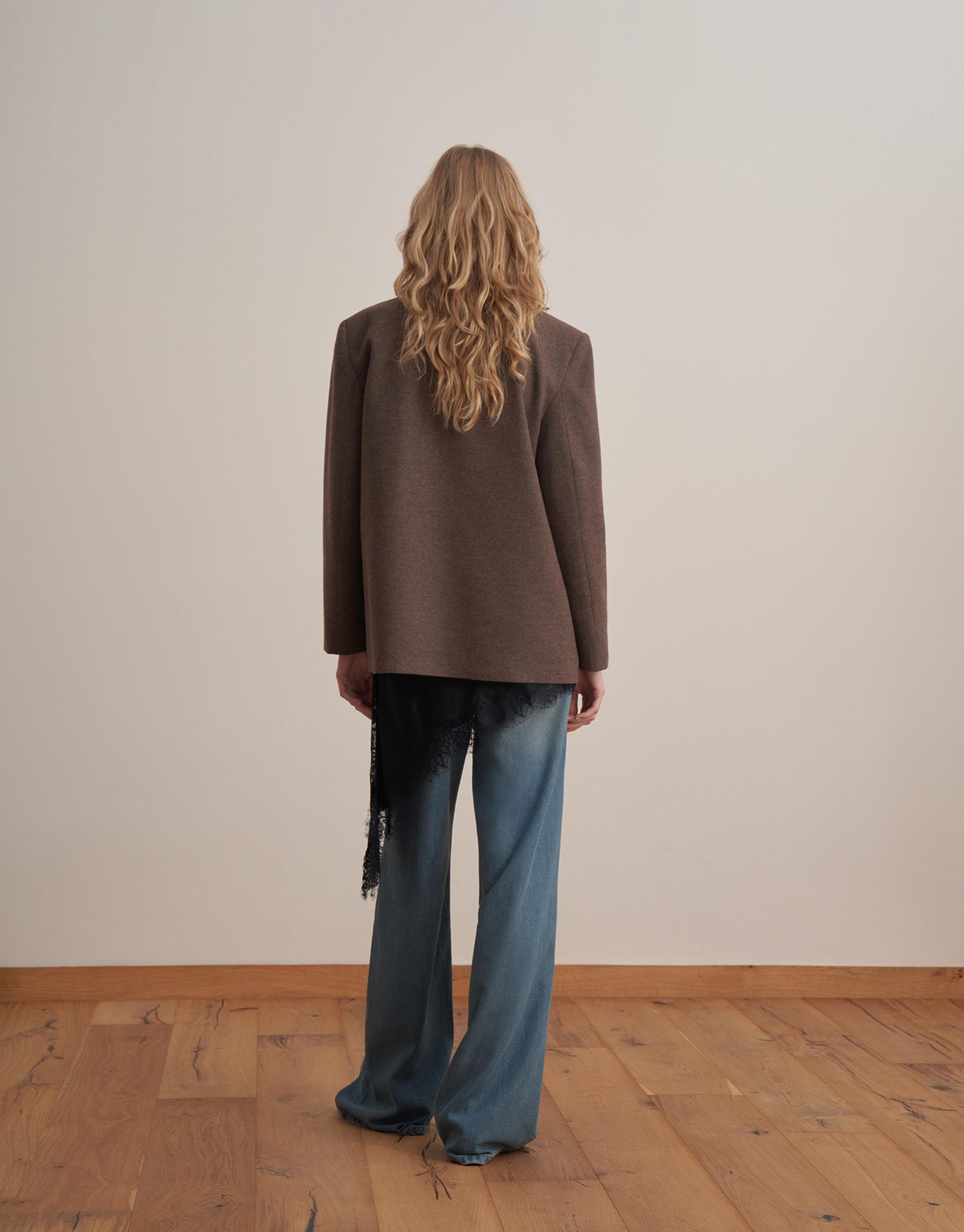 Yün Karışımlı Blazer Kahverengi