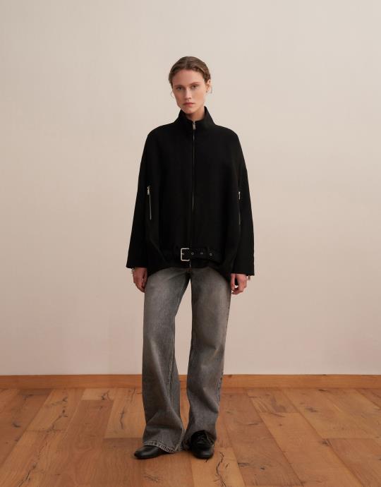 Kemer Detaylı Teknik Ceket Siyah