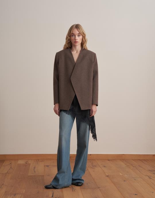 Kemerli Yün Kruvaze Blazer Sütlü Kahve