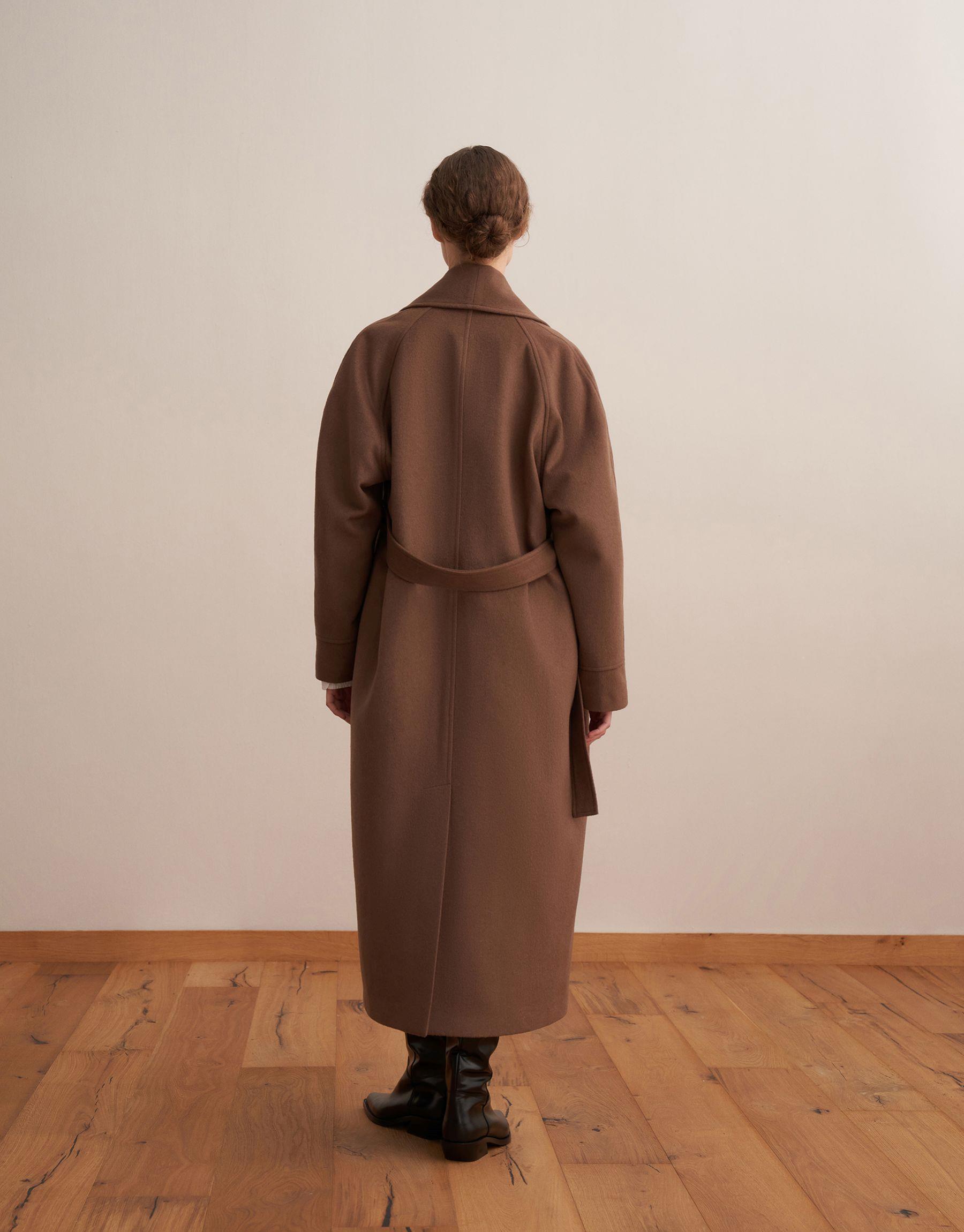 Bayan Sütlü Kahve Şal Yaka Yün Palto | KK Design