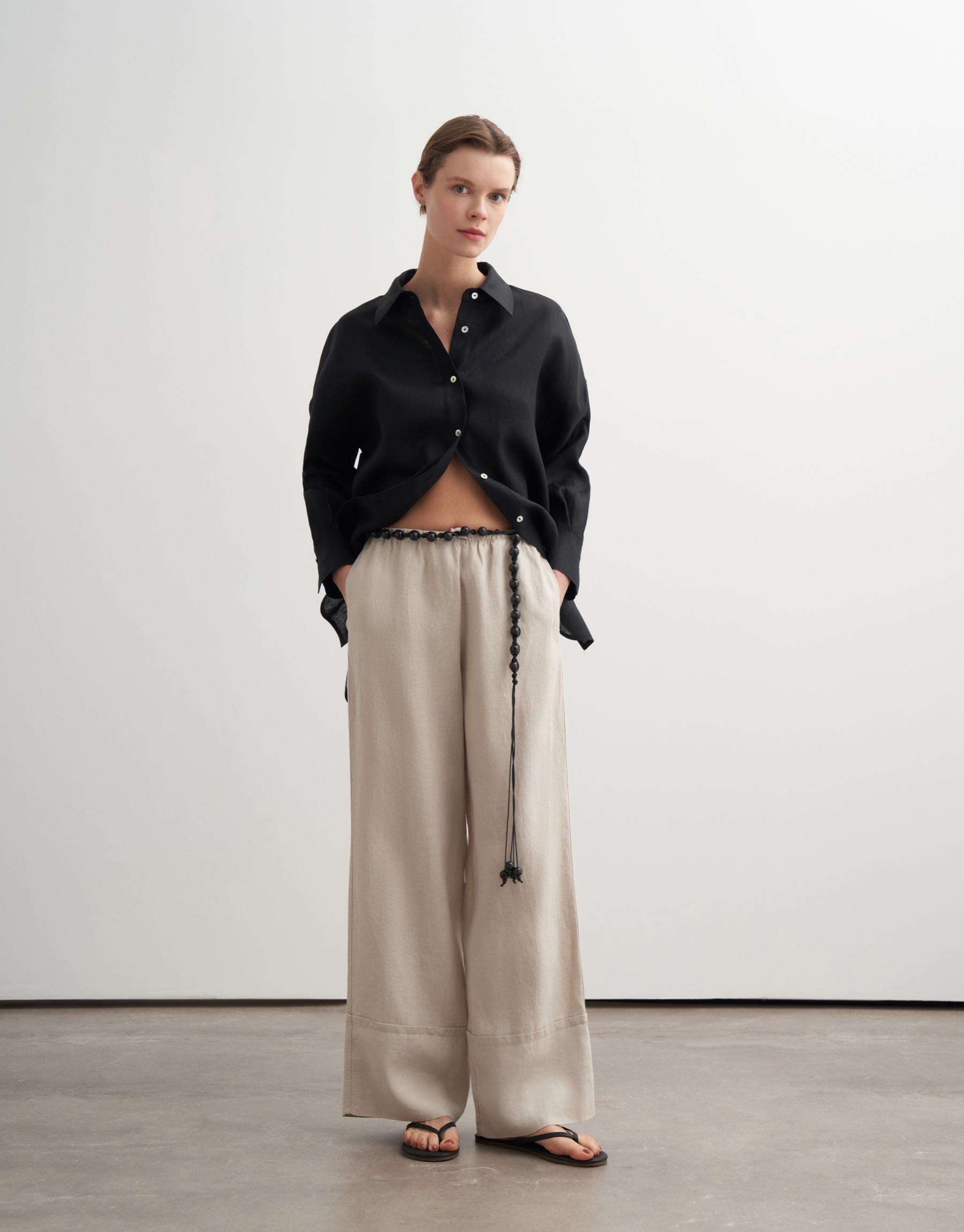 Bayan Taş %100 Keten Palazzo Pantolon | KK Design