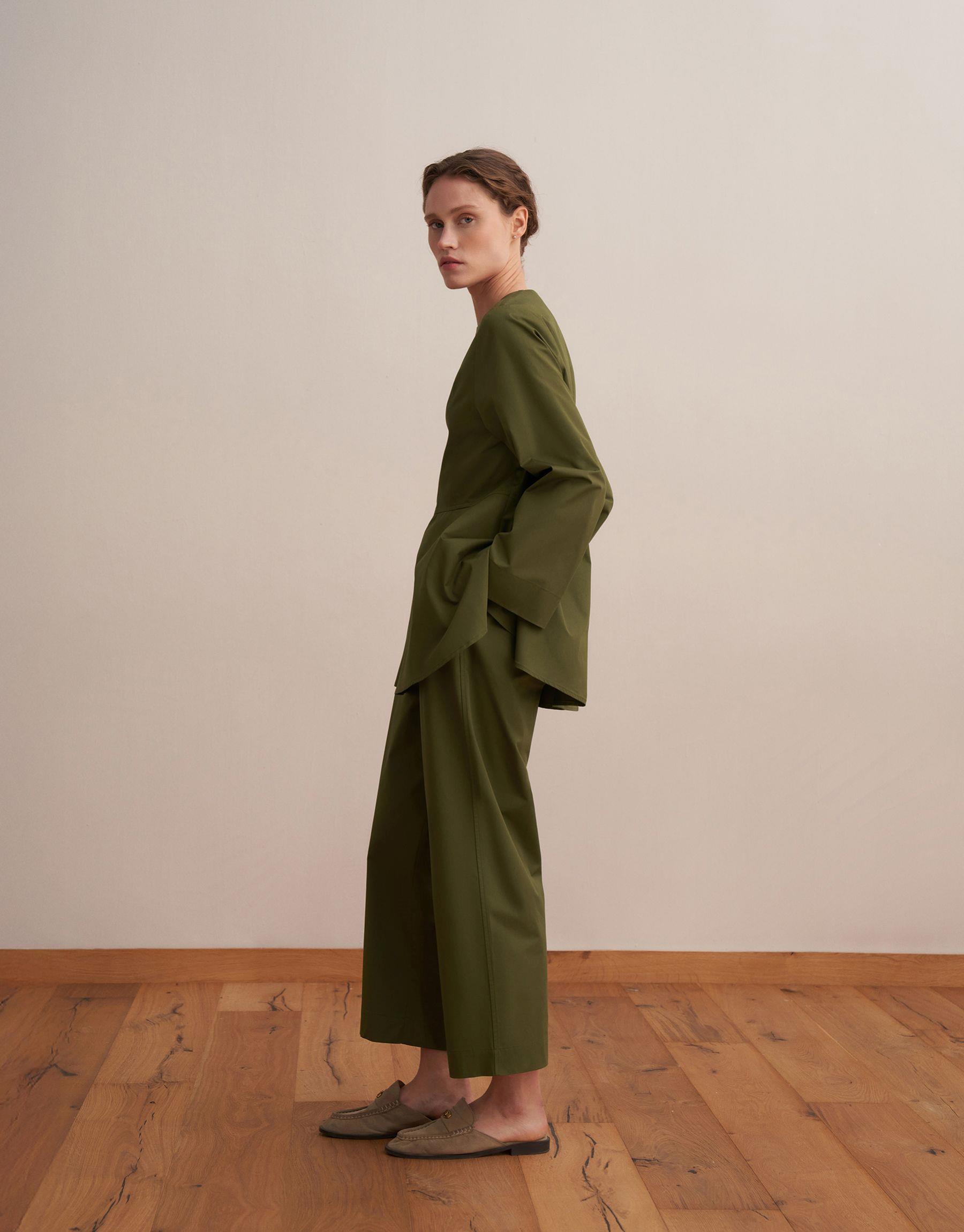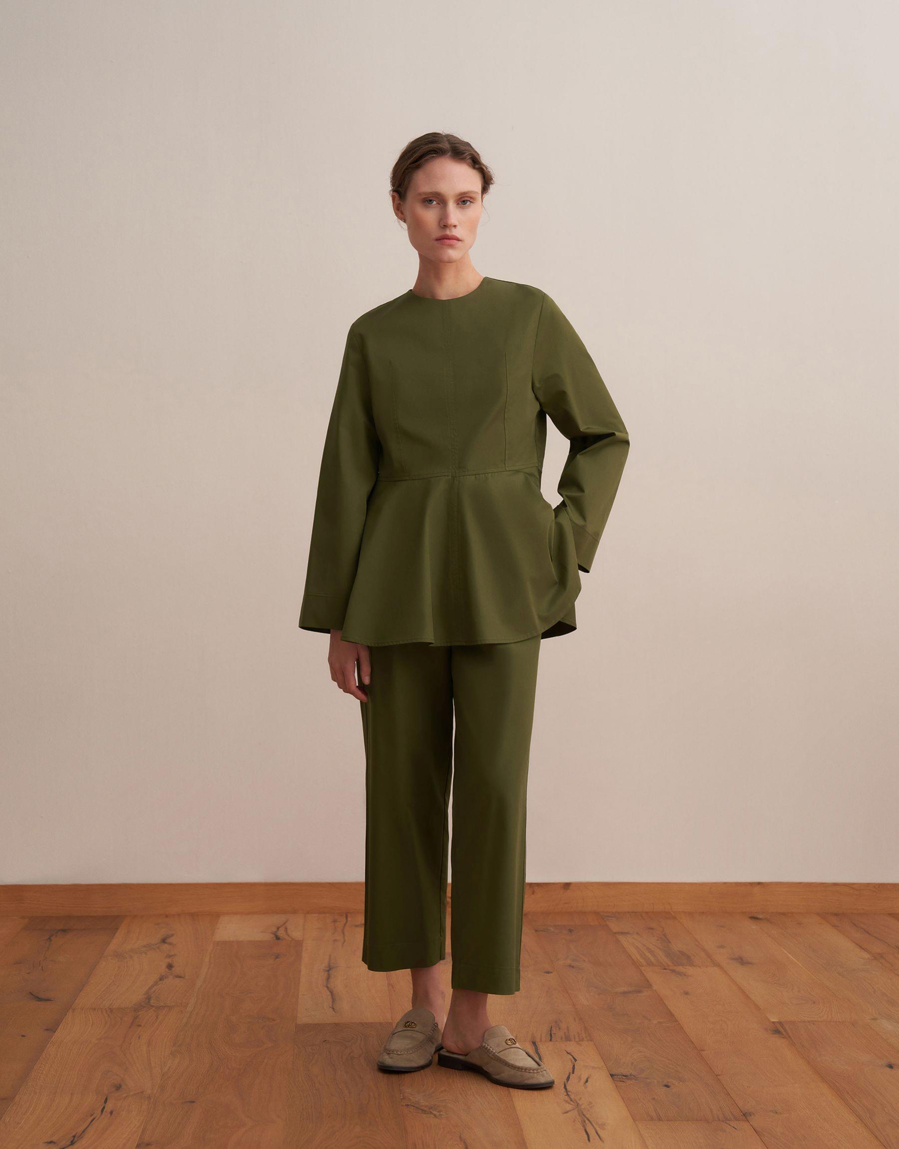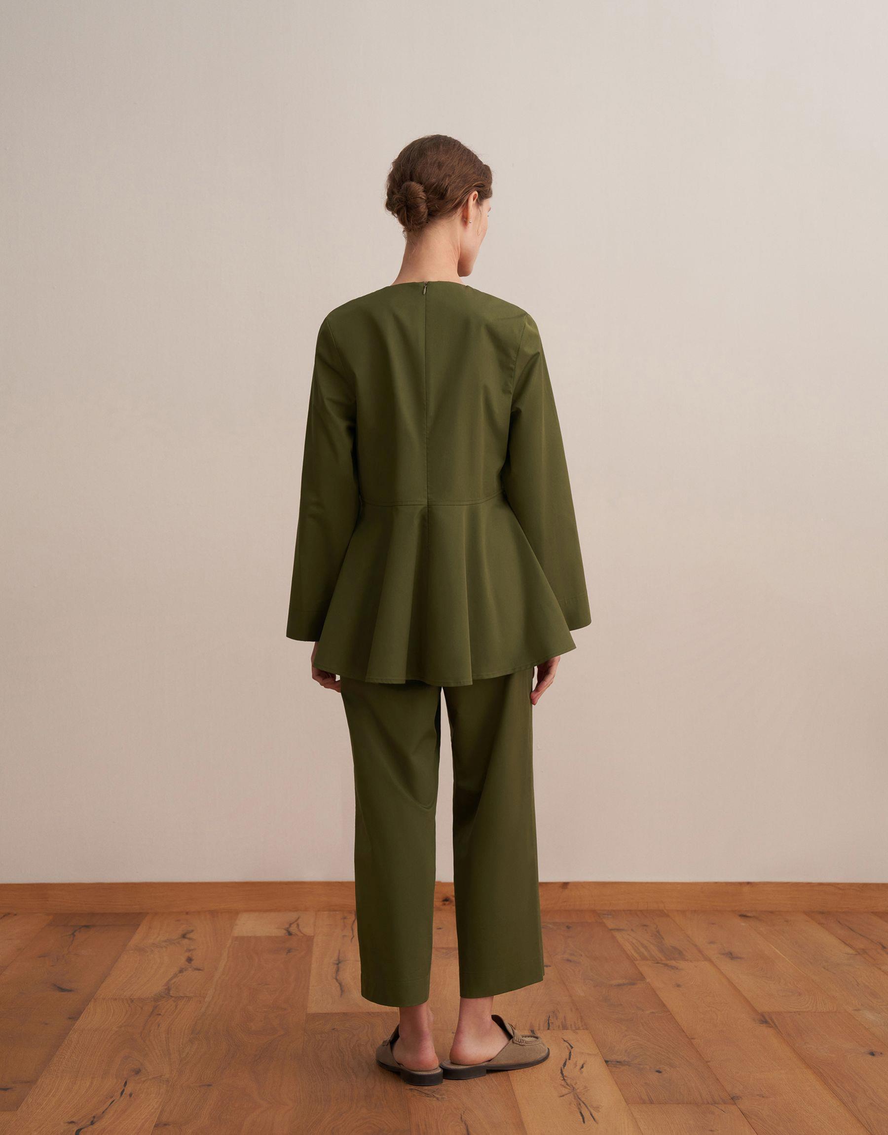 Bayan Yeşil %100 Koton Peplum Bluz | KK Design