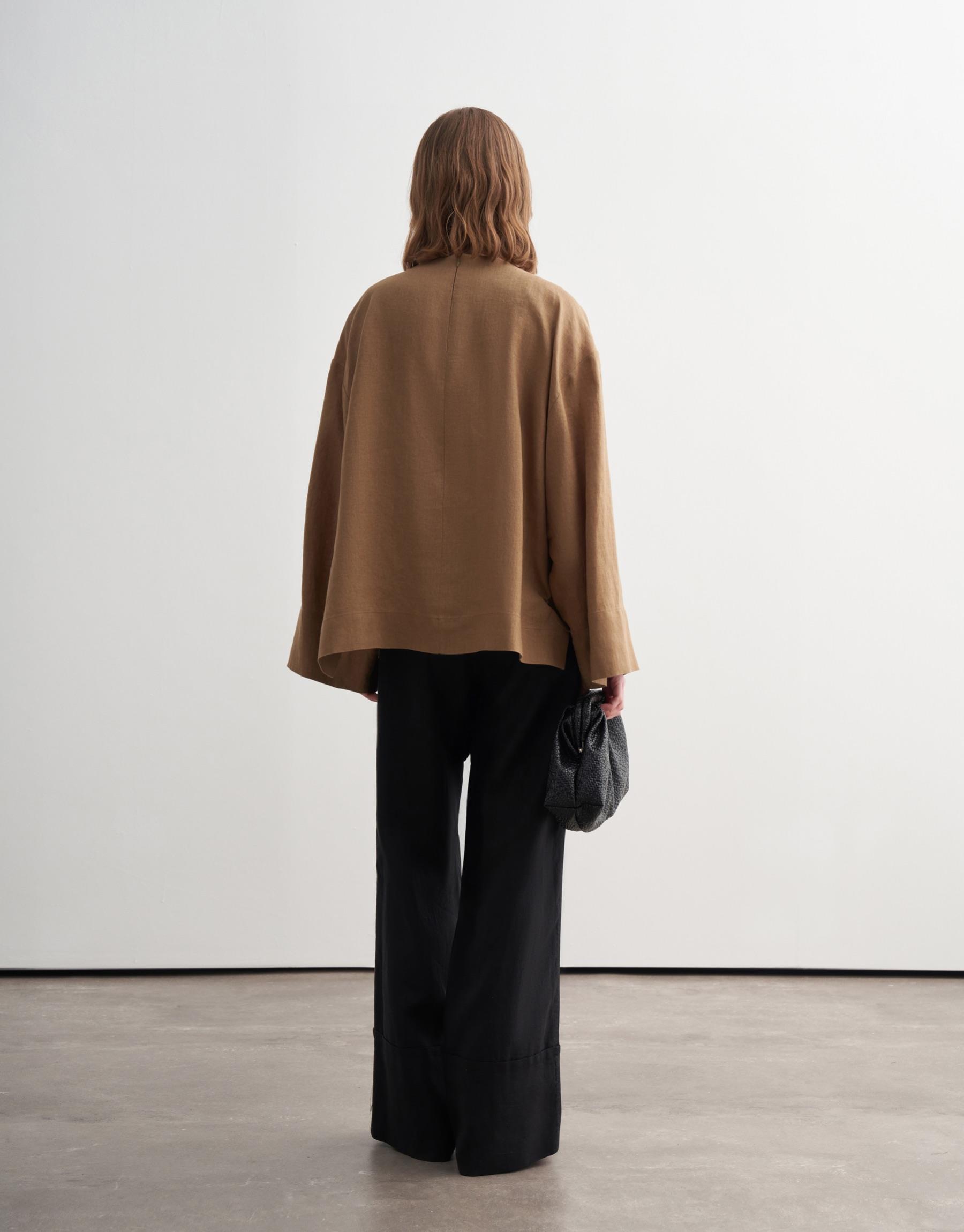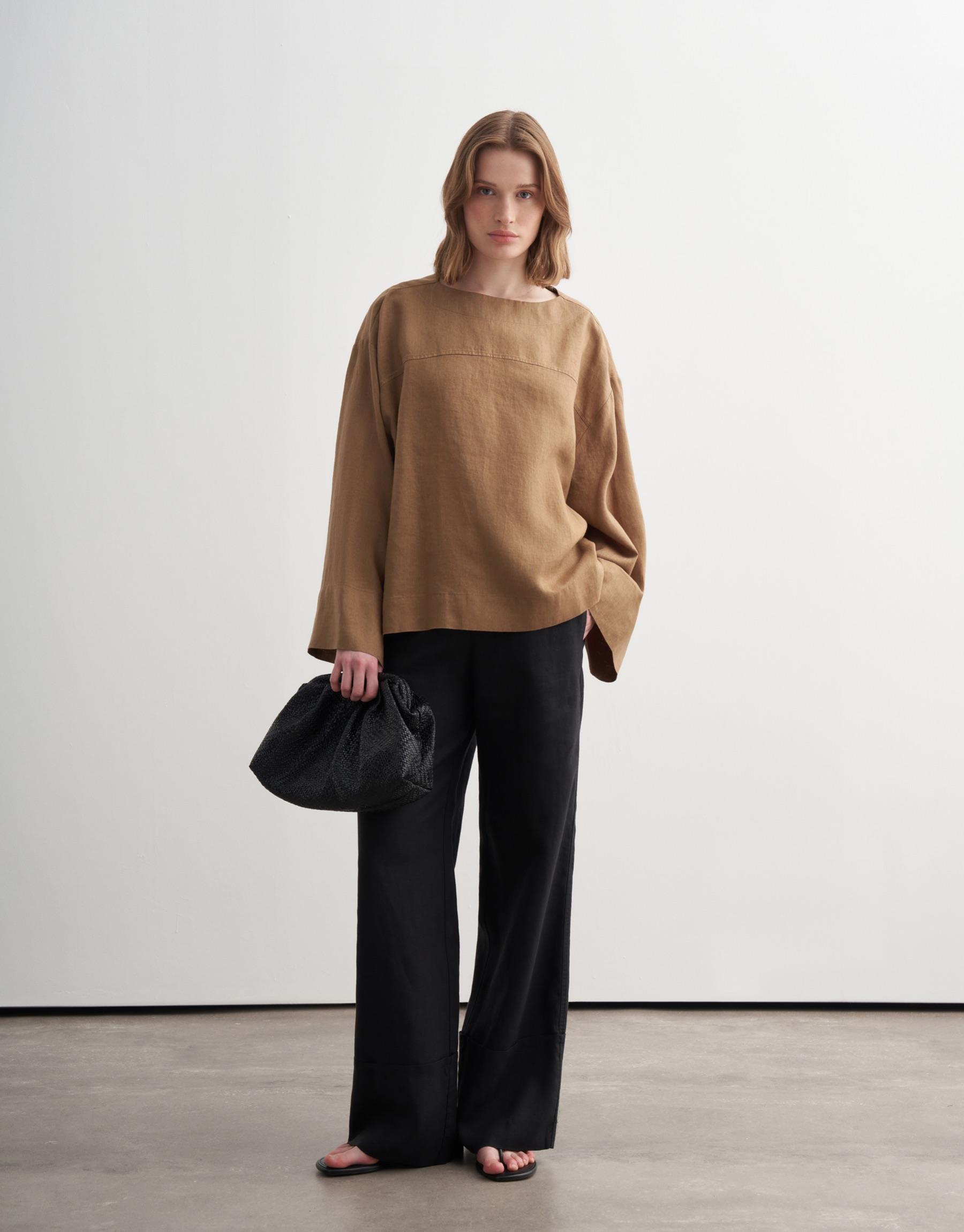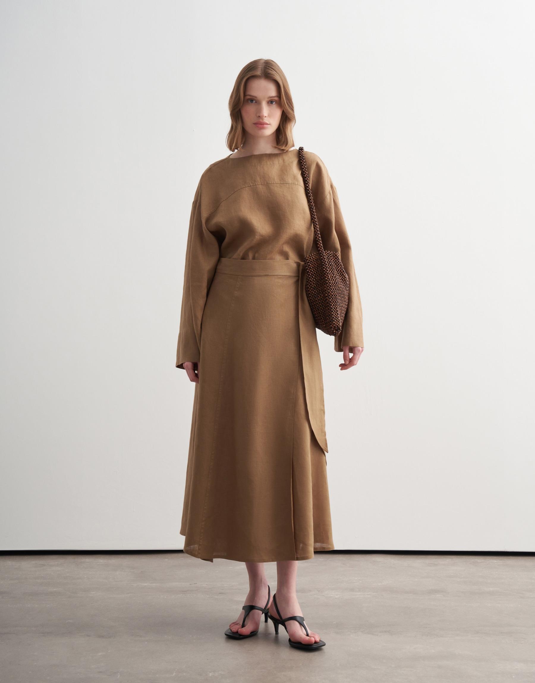 Bayan Camel %100 Keten Kesik Detaylı Gömlek | KK Design