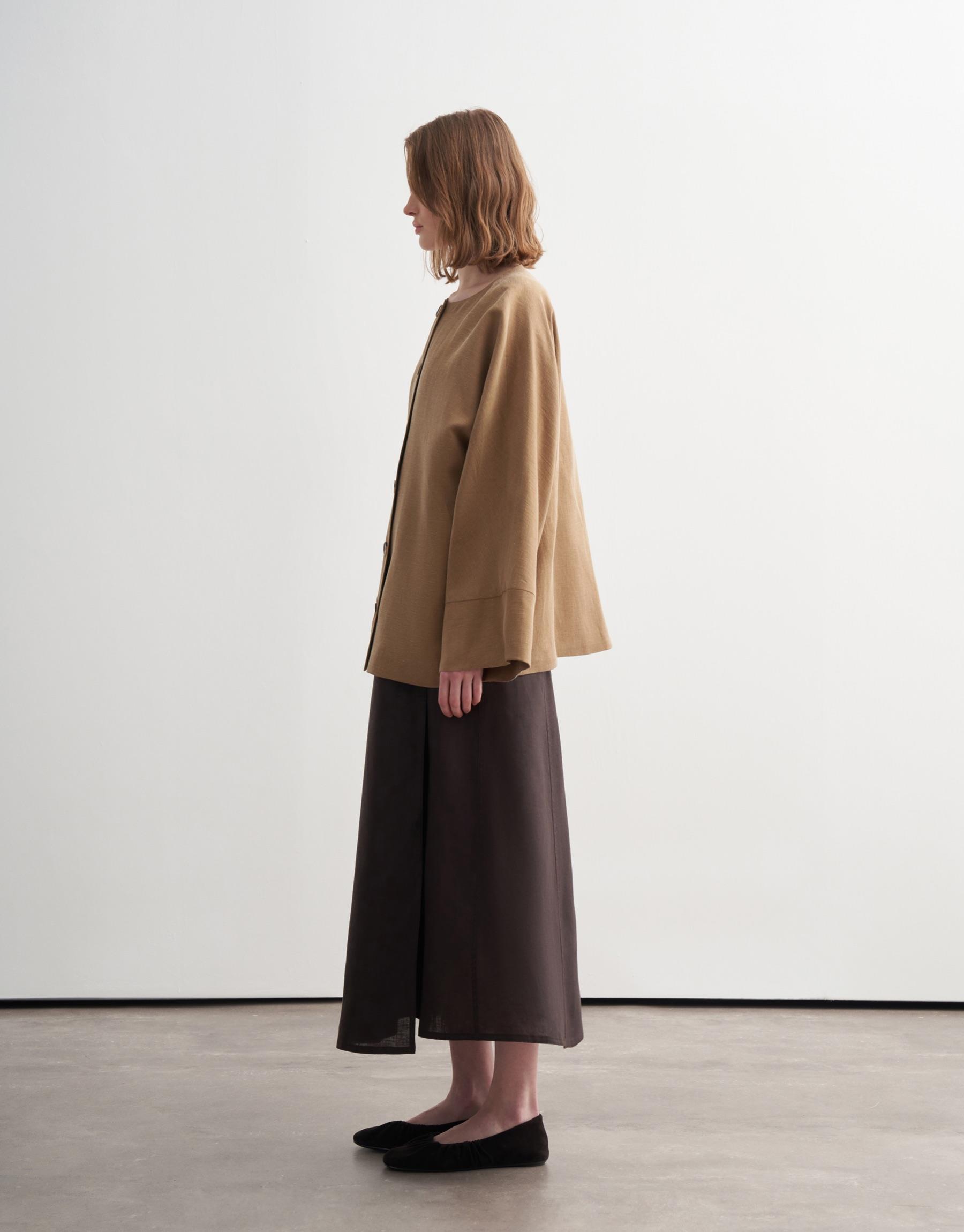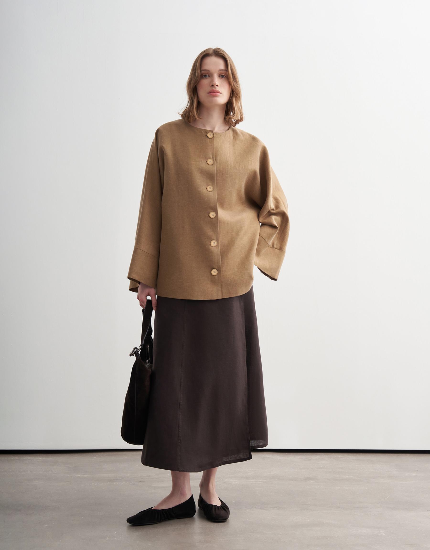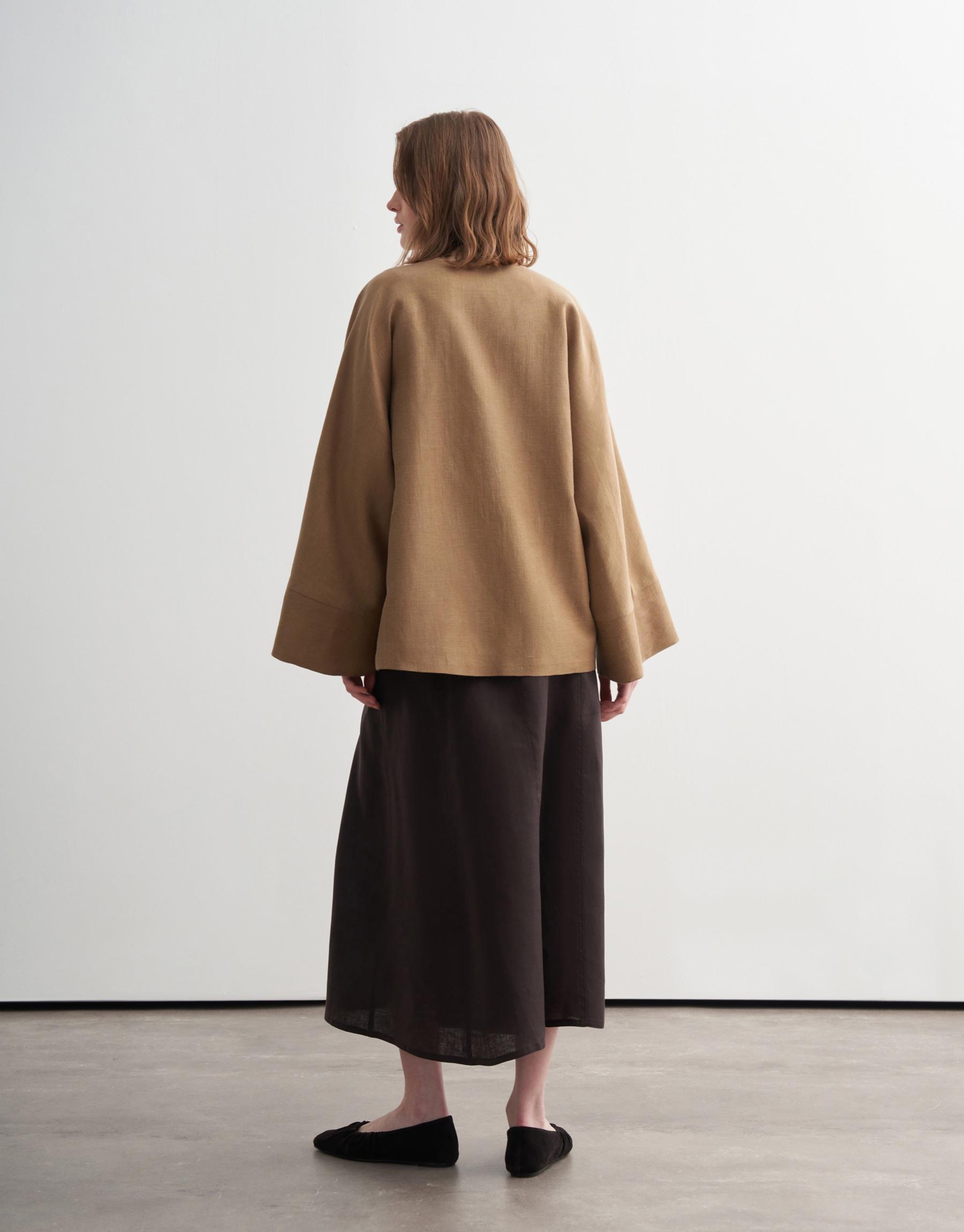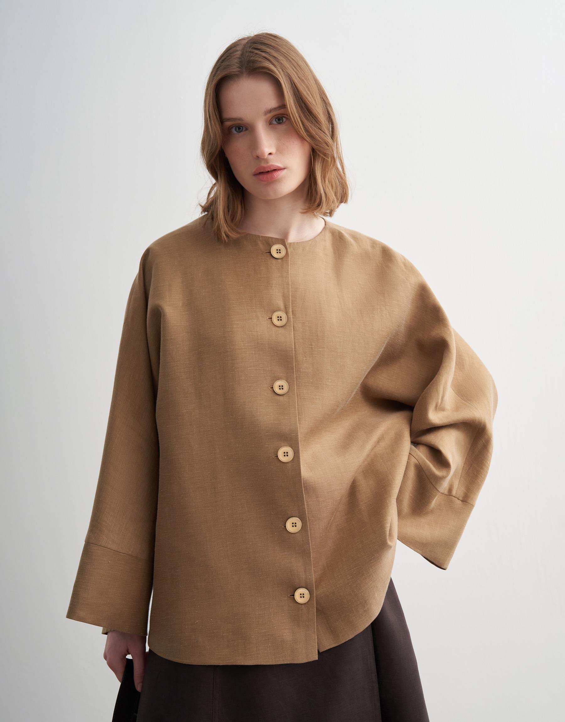 Bayan Camel Geniş Kollu Vegan Keten Ceket | KK Design