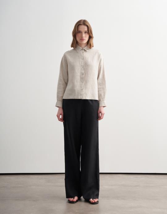 %100 Keten Kesik Detaylı Gömlek Ekru