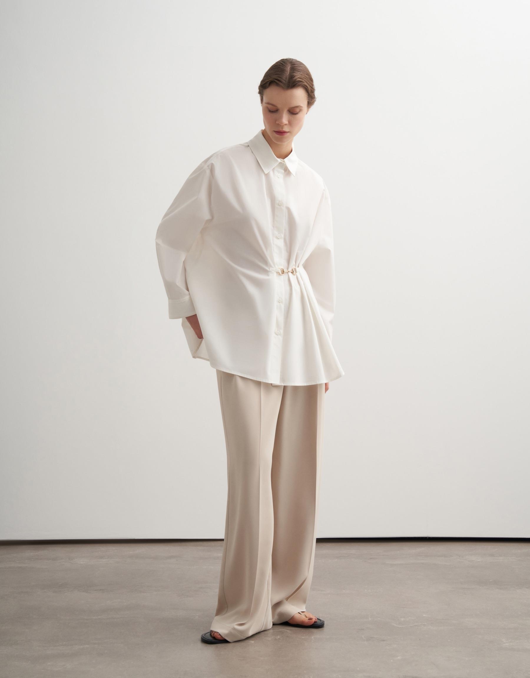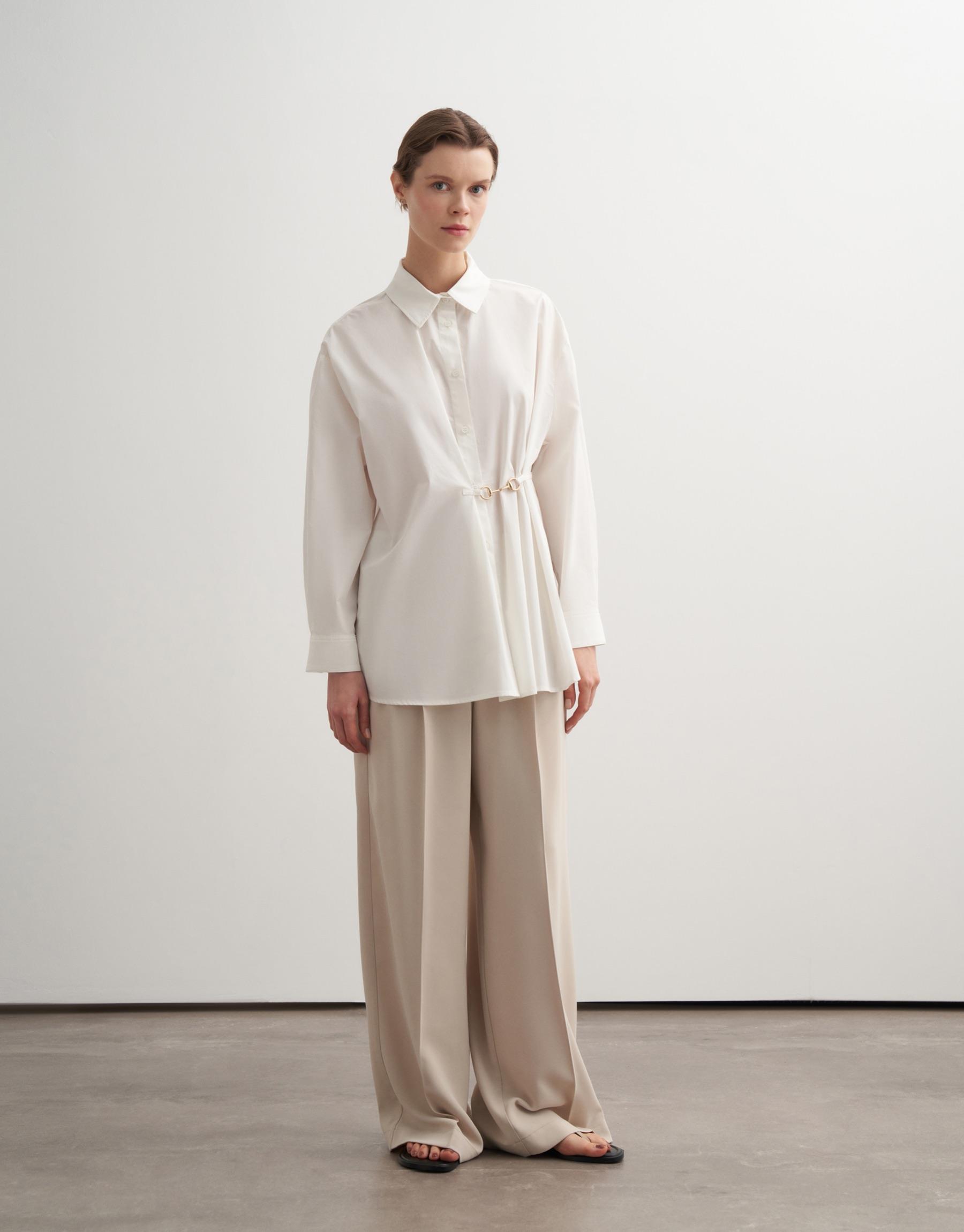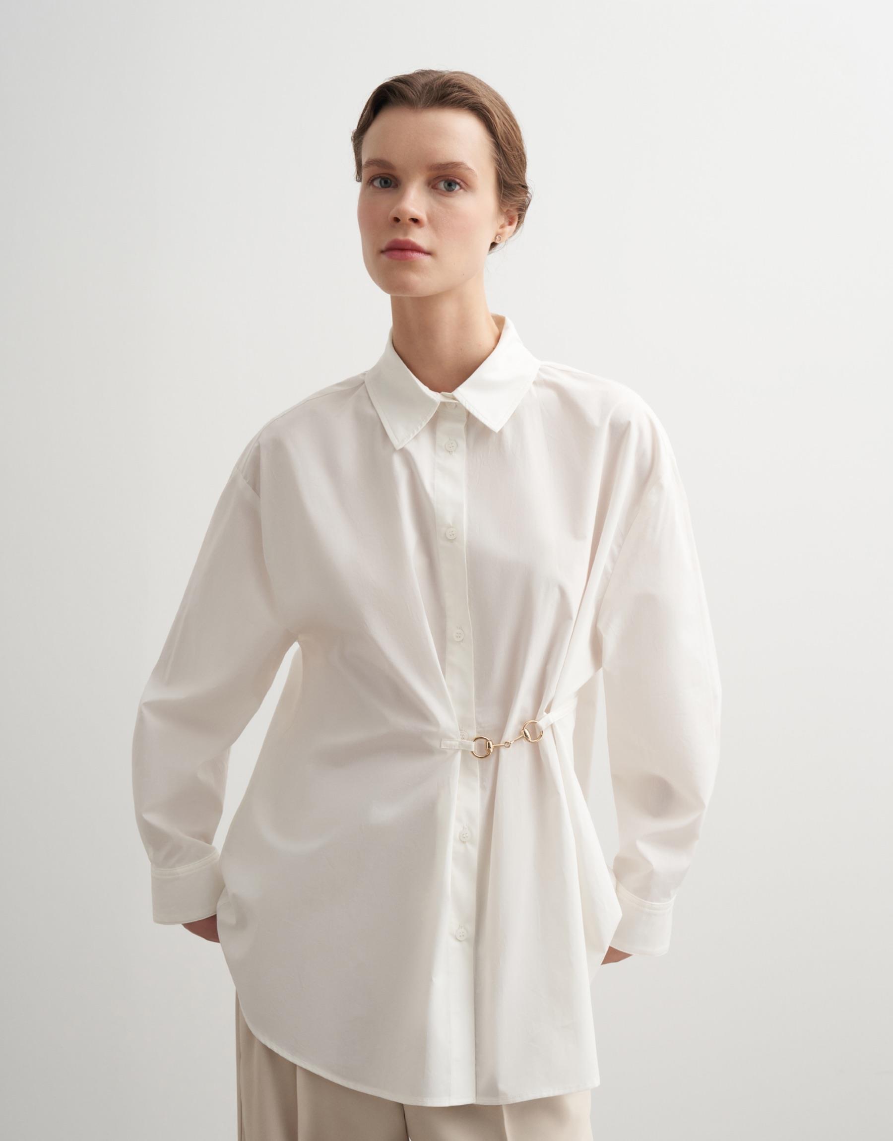 Bayan Ekru %100 Koton Metal Tokalı Gömlek | KK Design
