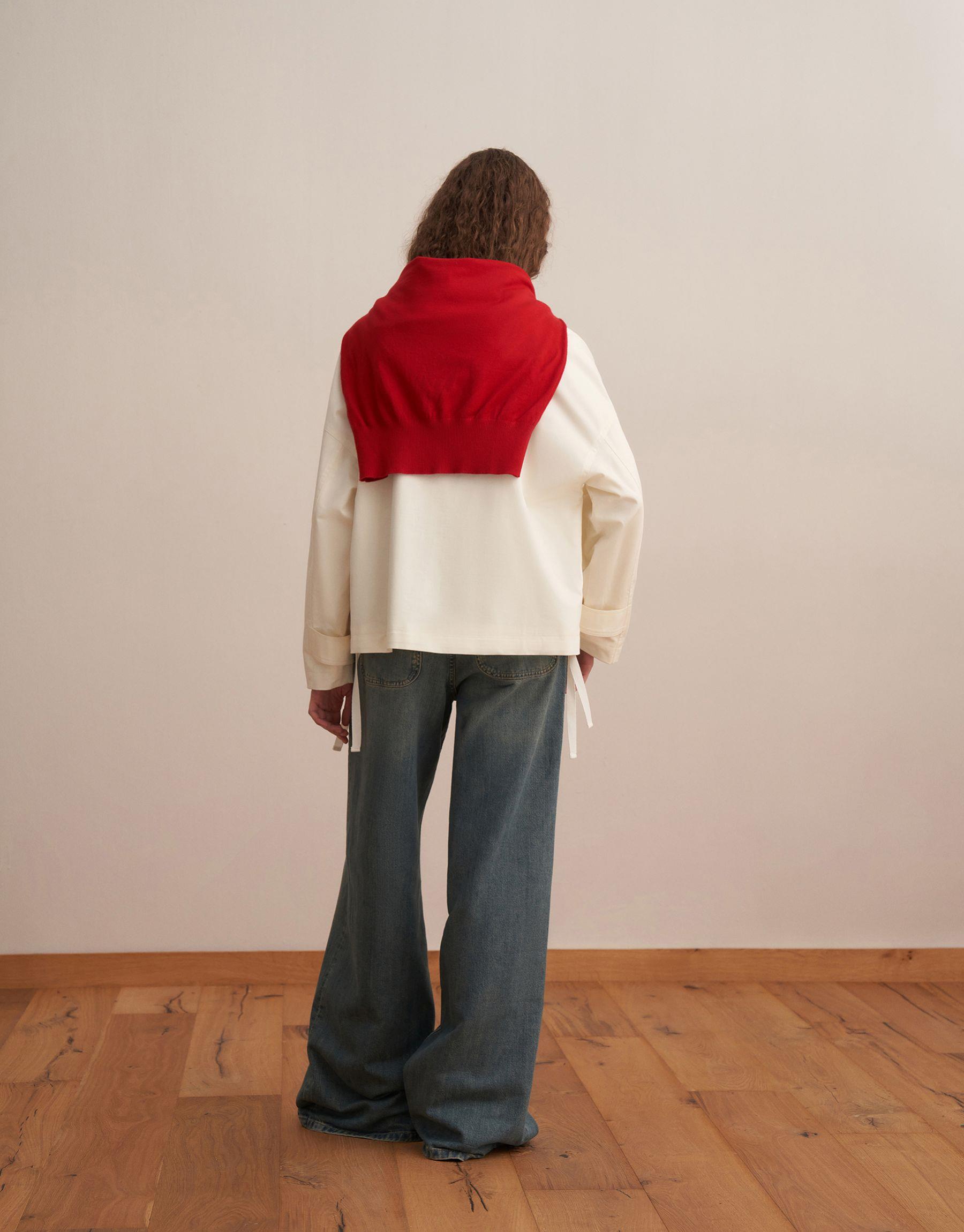 Bayan Ekru Fermuarlı Koton Ceket | KK Design