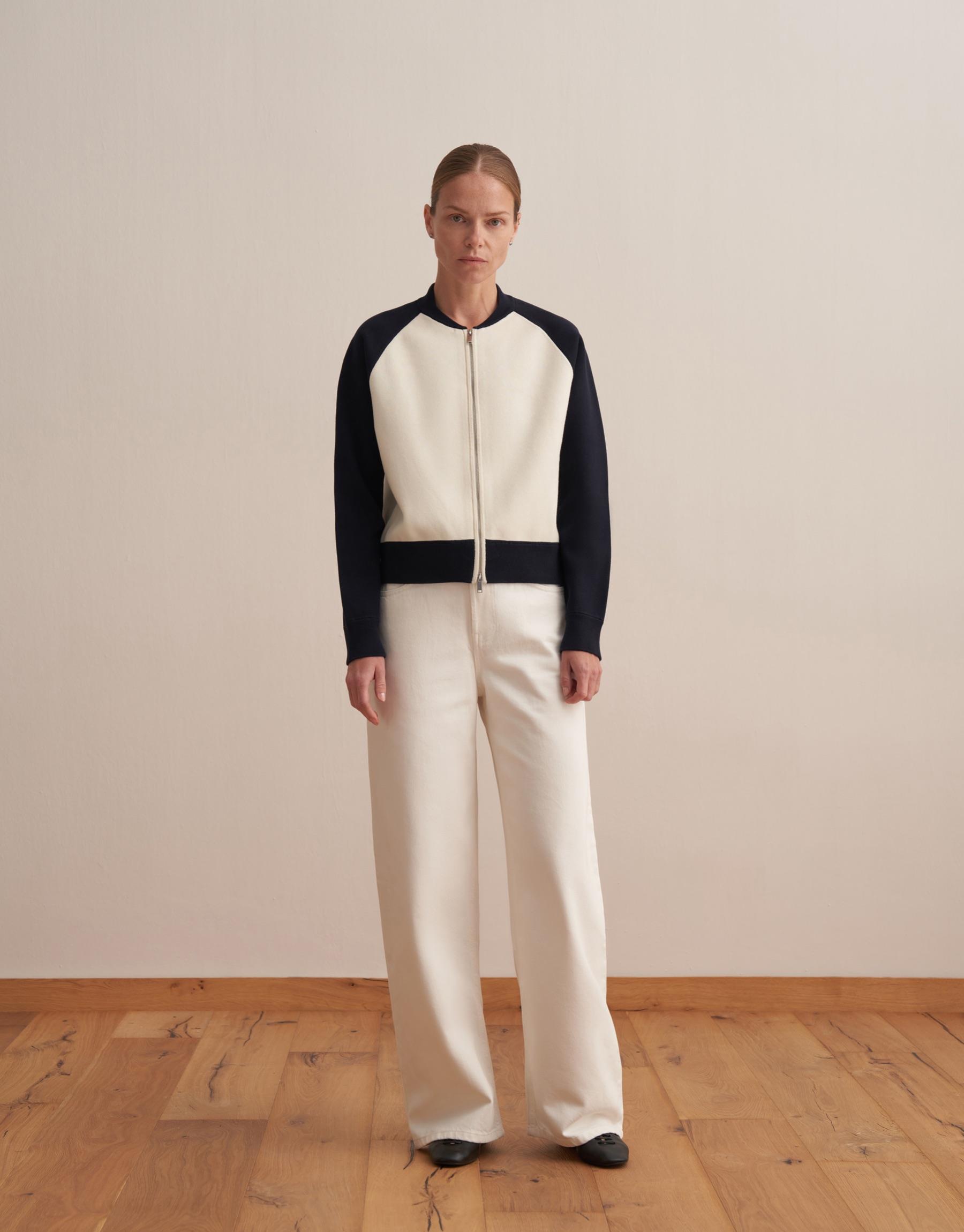 Bayan Ekru İki Renkli Pamuk Triko Hırka | KK Design