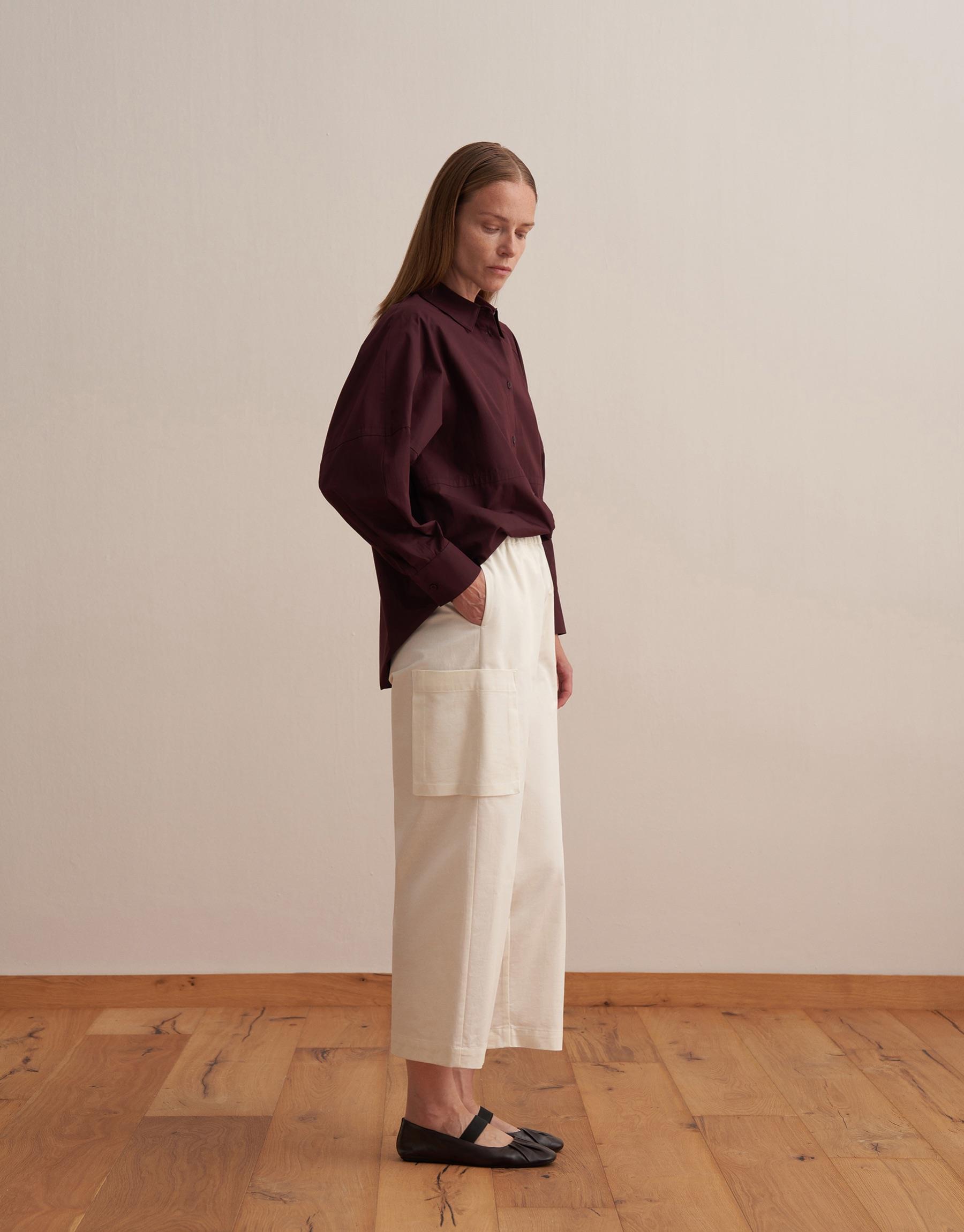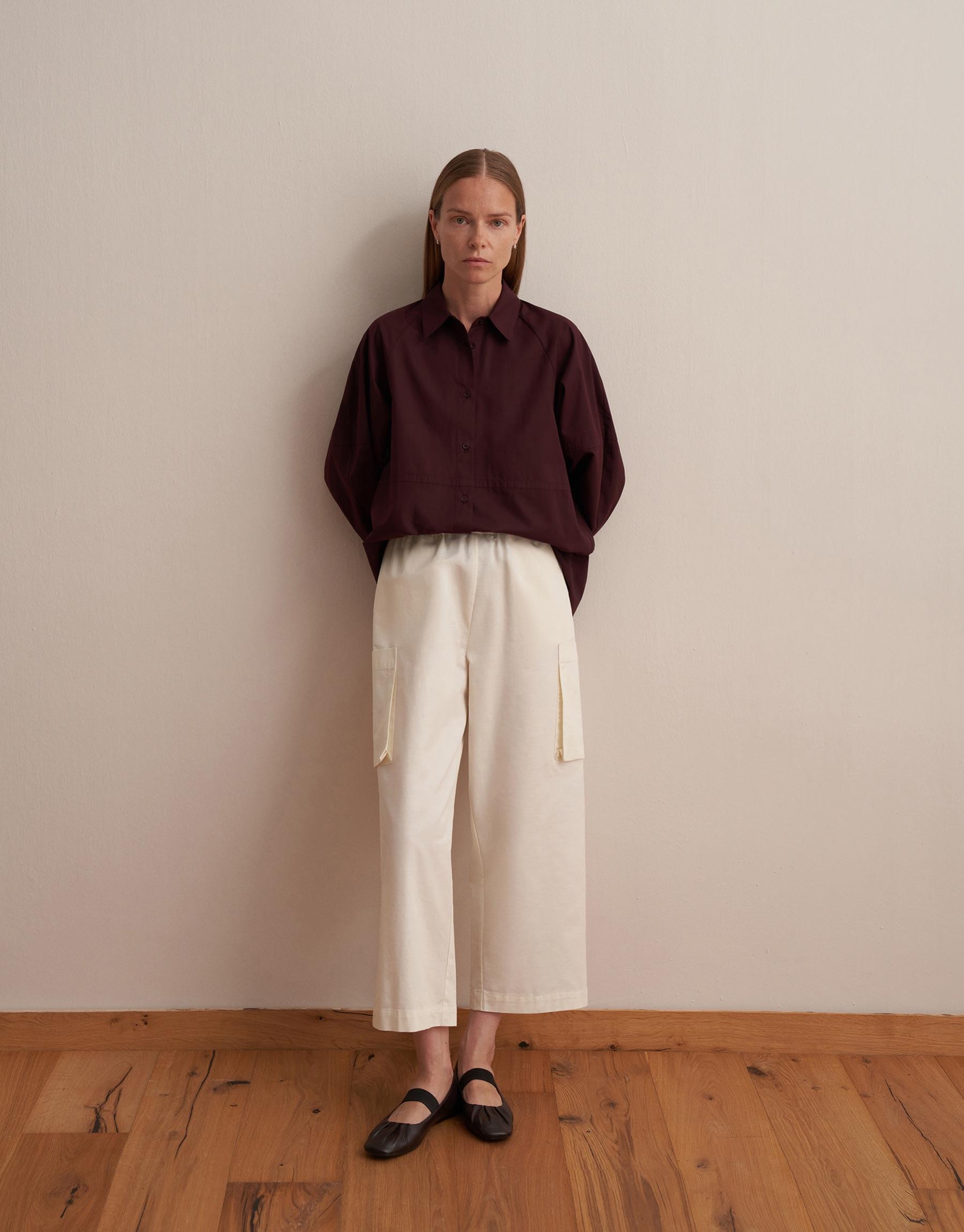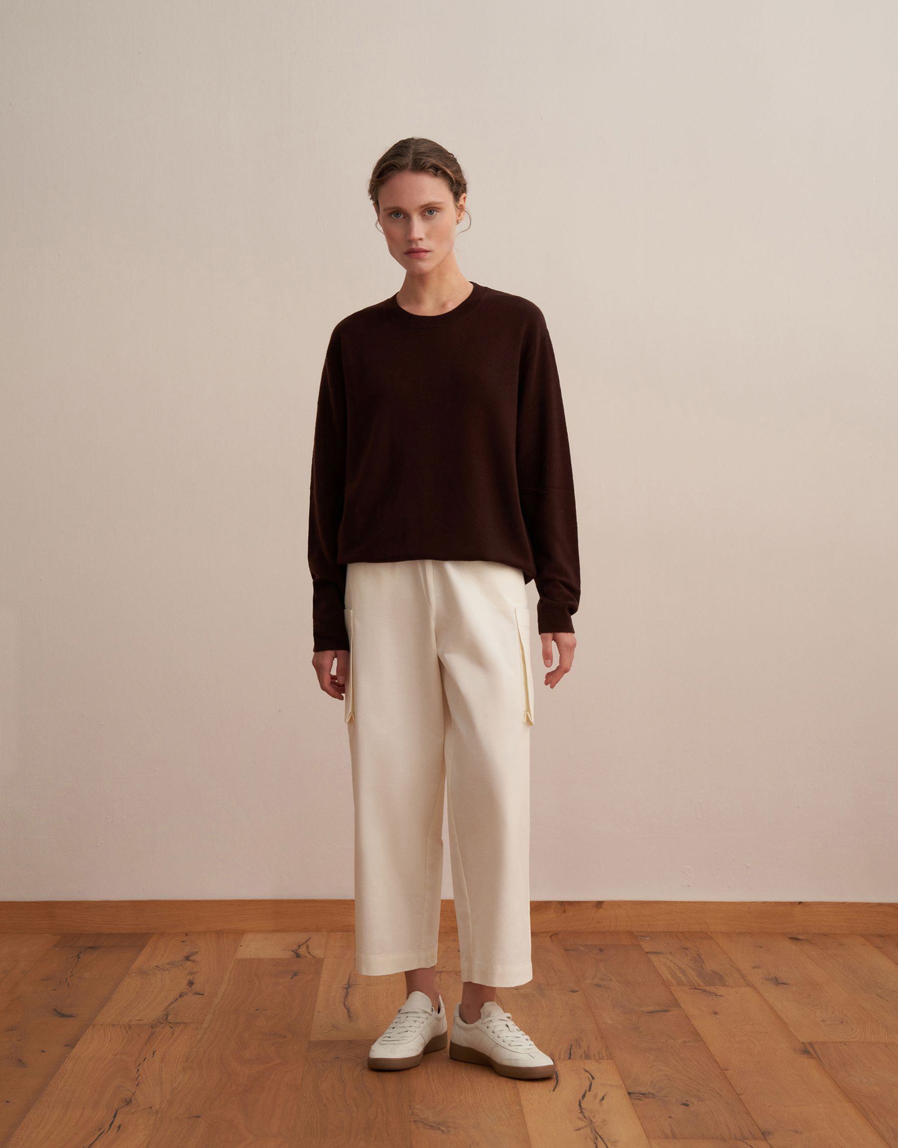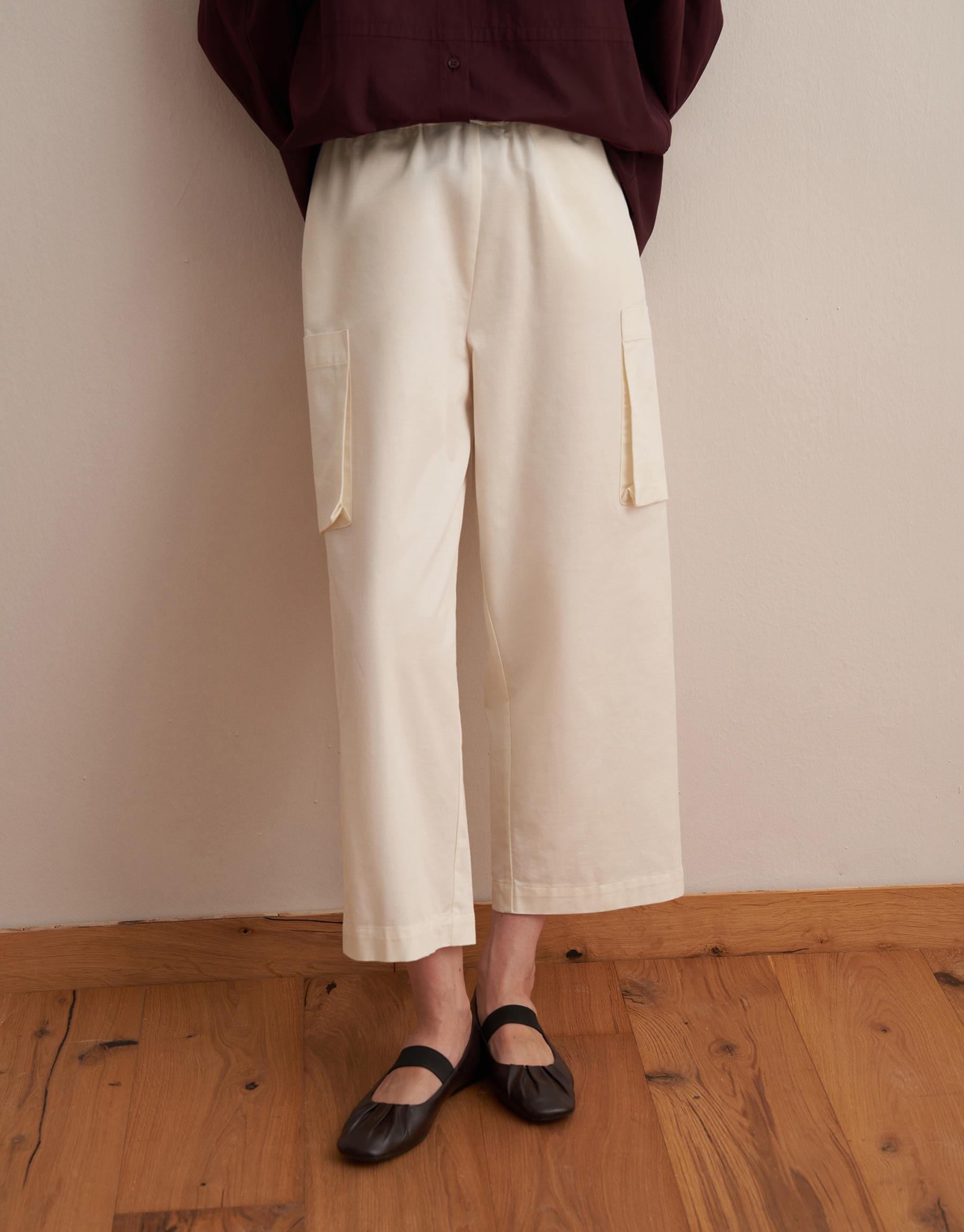 Bayan Ekru Kargo Cepli Bol Pantolon | KK Design