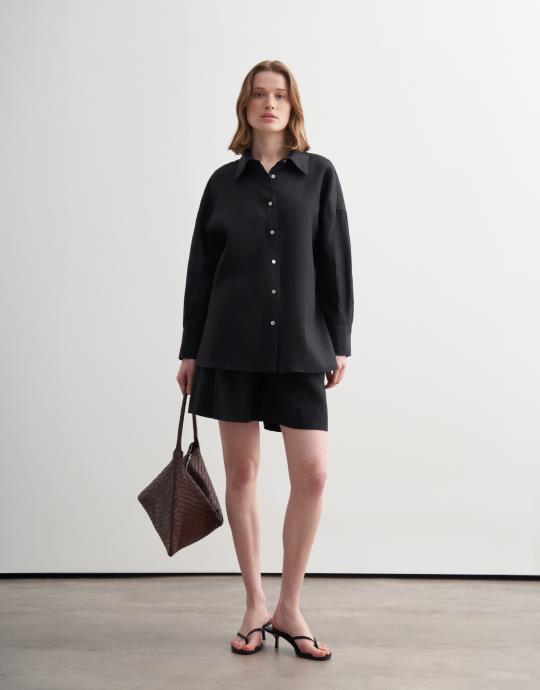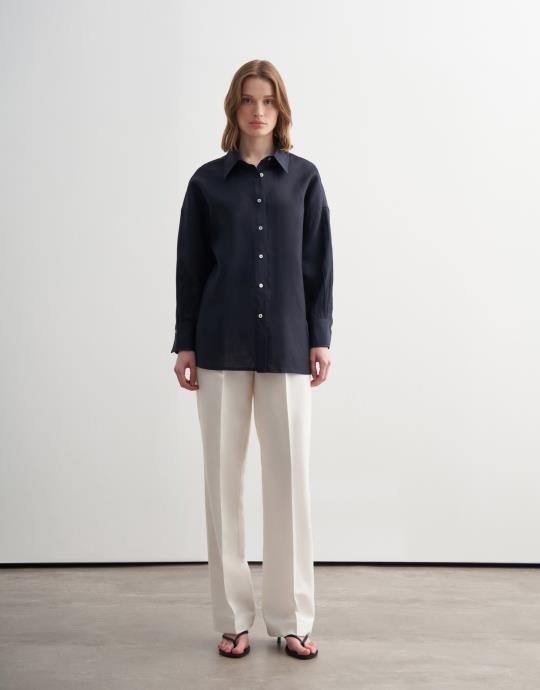 Bayan Lacivert %100 Keten Culotte Pantolon | KK Design
