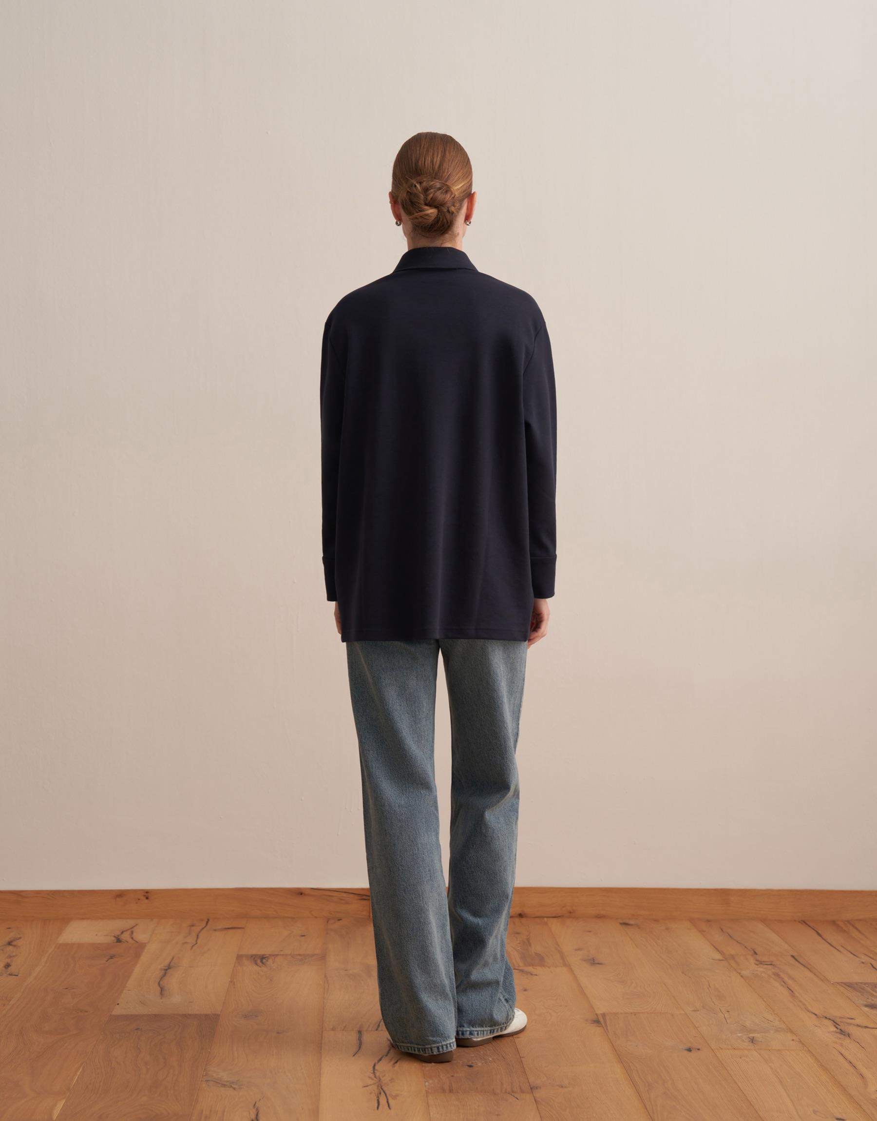 Bayan Lacivert Fermuarlı Sweatshirt | KK Design