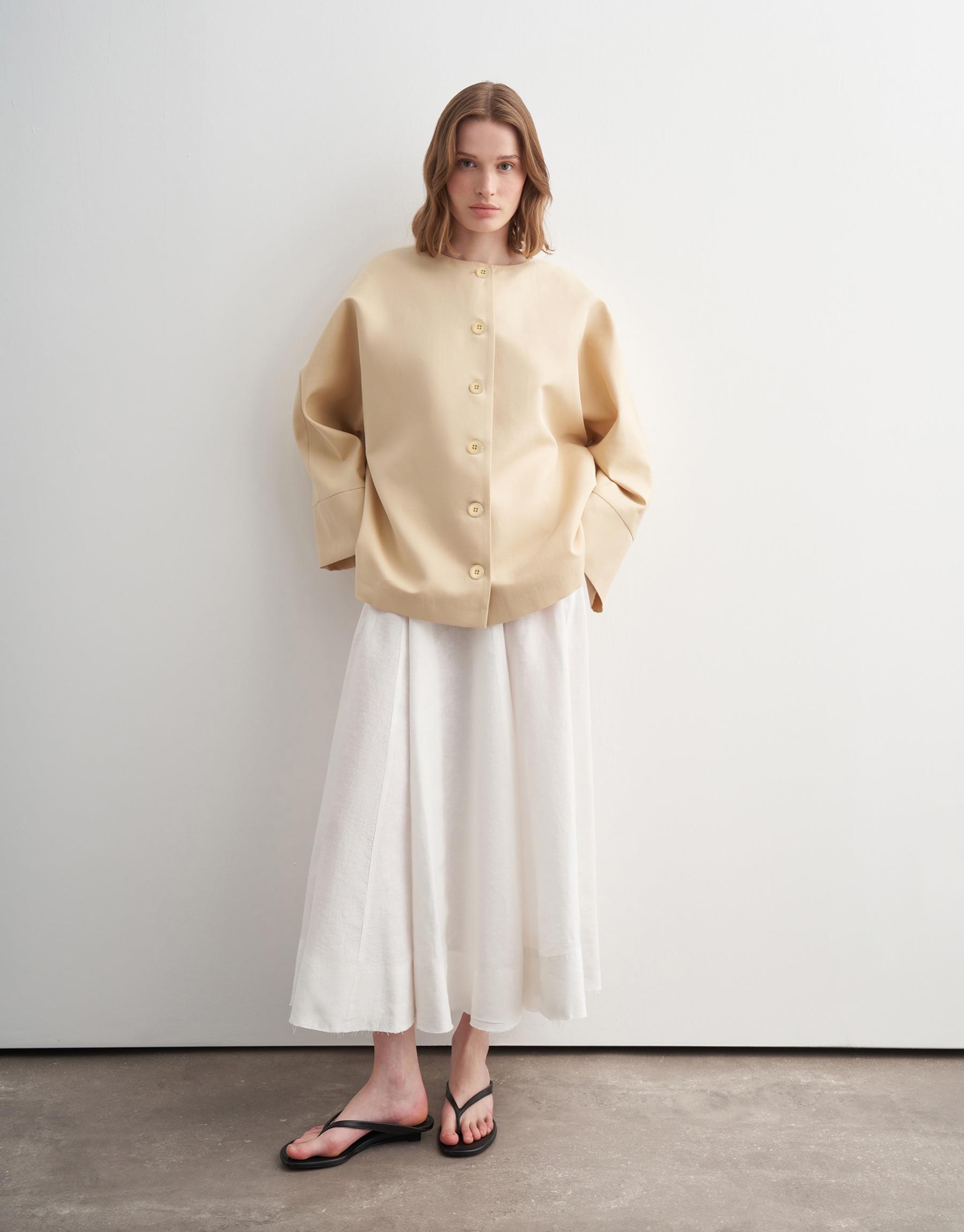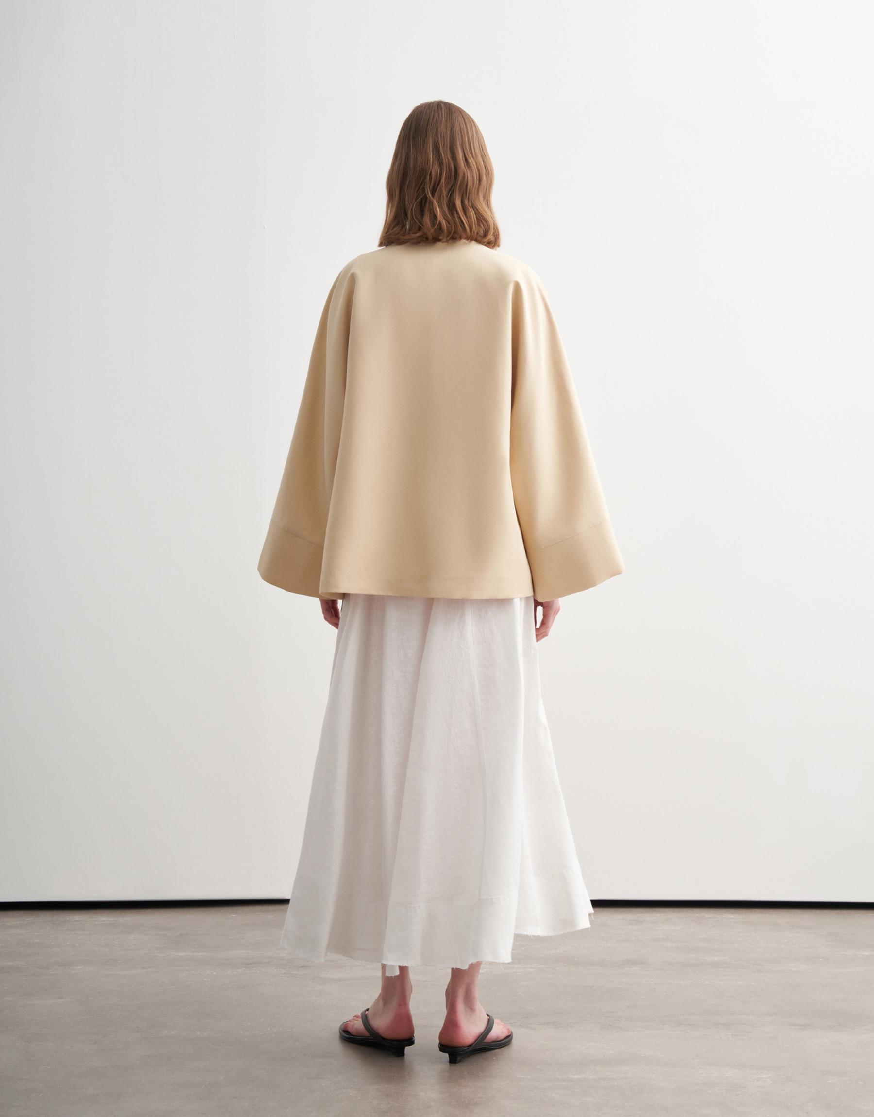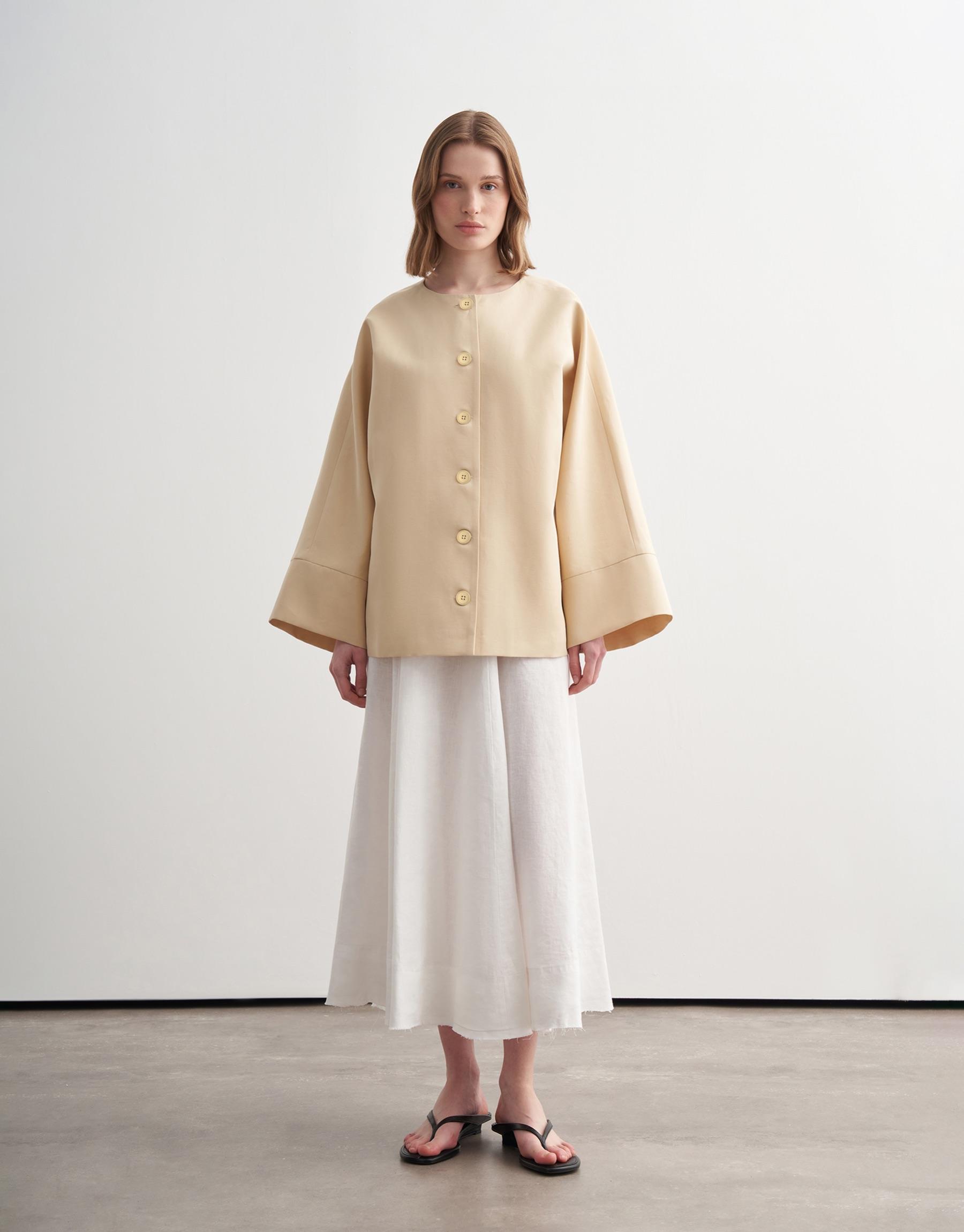 Bayan Açık Bej Keten Karışımlı Geniş Kollu Ceket | KK Design