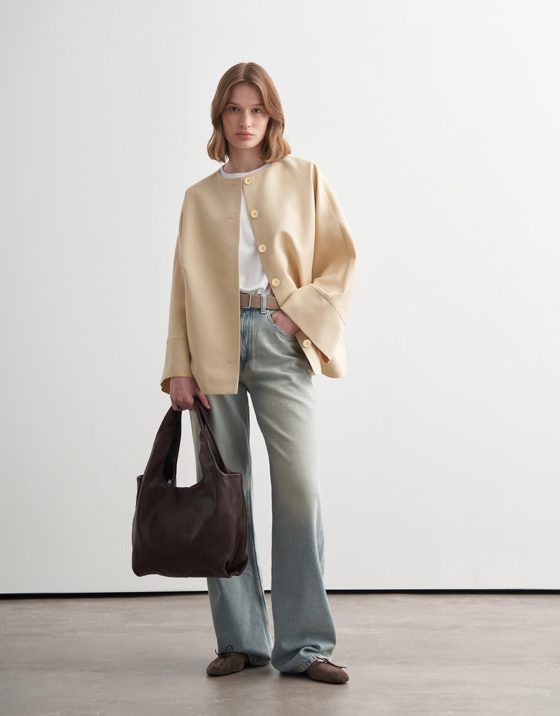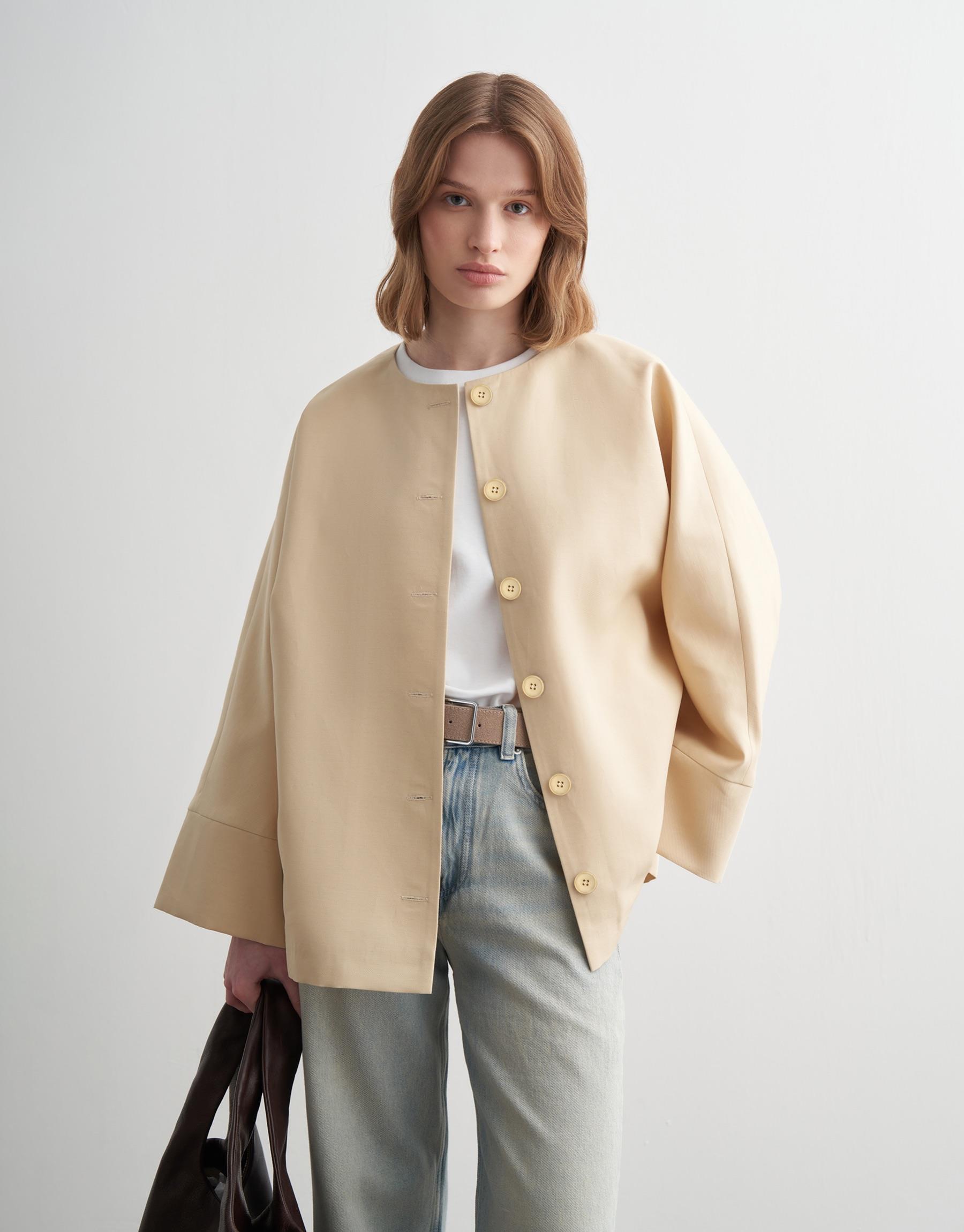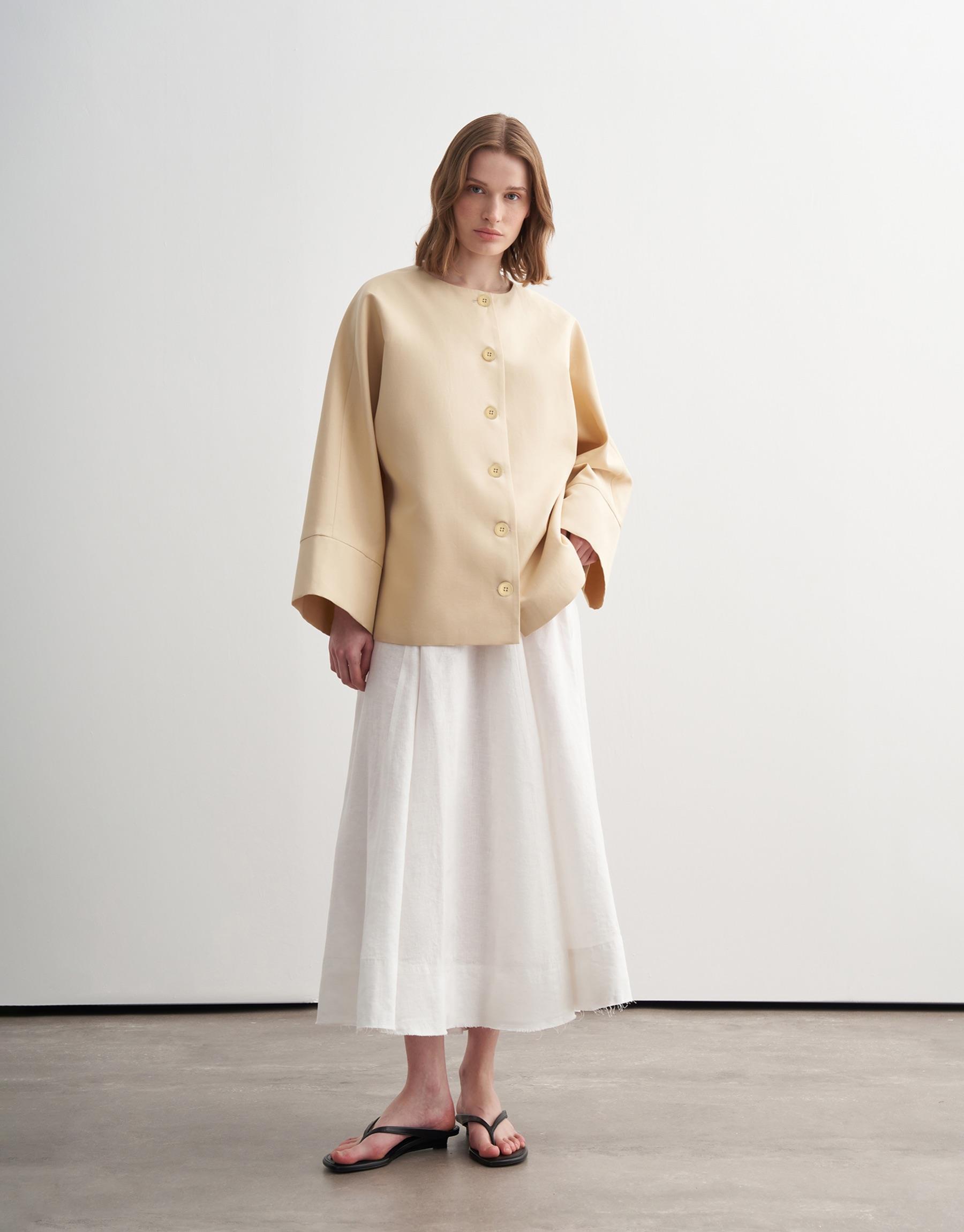 Bayan Açık Bej Keten Karışımlı Geniş Kollu Ceket | KK Design