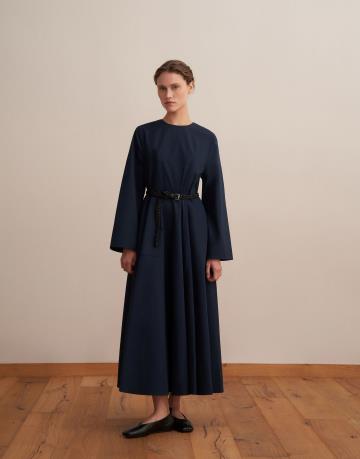 %100 Koton Kesik Detaylı Elbise Lacivert