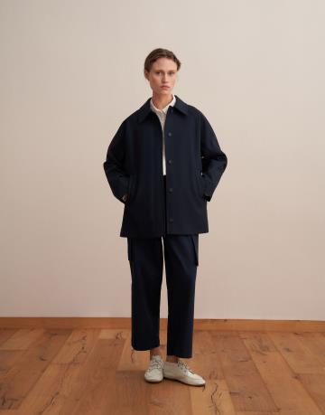 %100 Koton Kontrast Detaylı Trençkot Lacivert