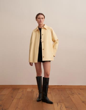 %100 Koton Kontrast Detaylı Trençkot Soft Sarı