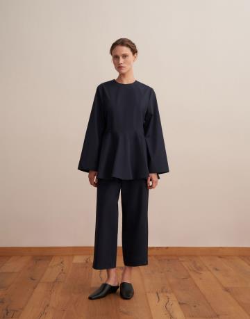 %100 Koton Peplum Bluz Lacivert