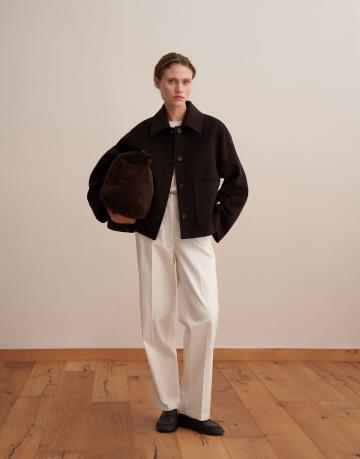 Yün Karışımlı Cepli Kaban Kahverengi