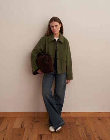 Yün Karışımlı Cepli Kaban Yeşil