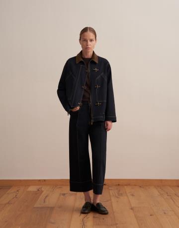 Kadife Yaka Denim Ceket Lacivert