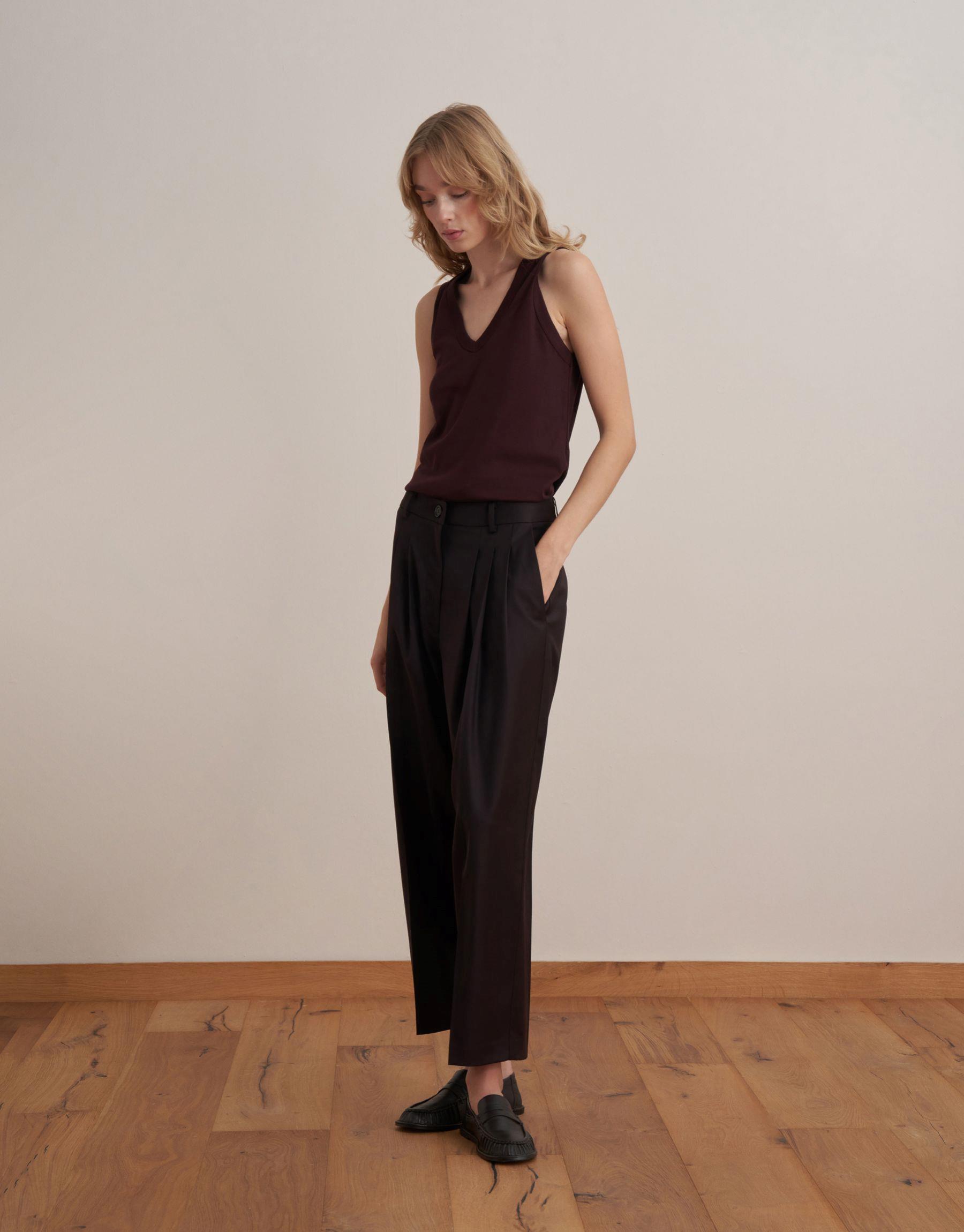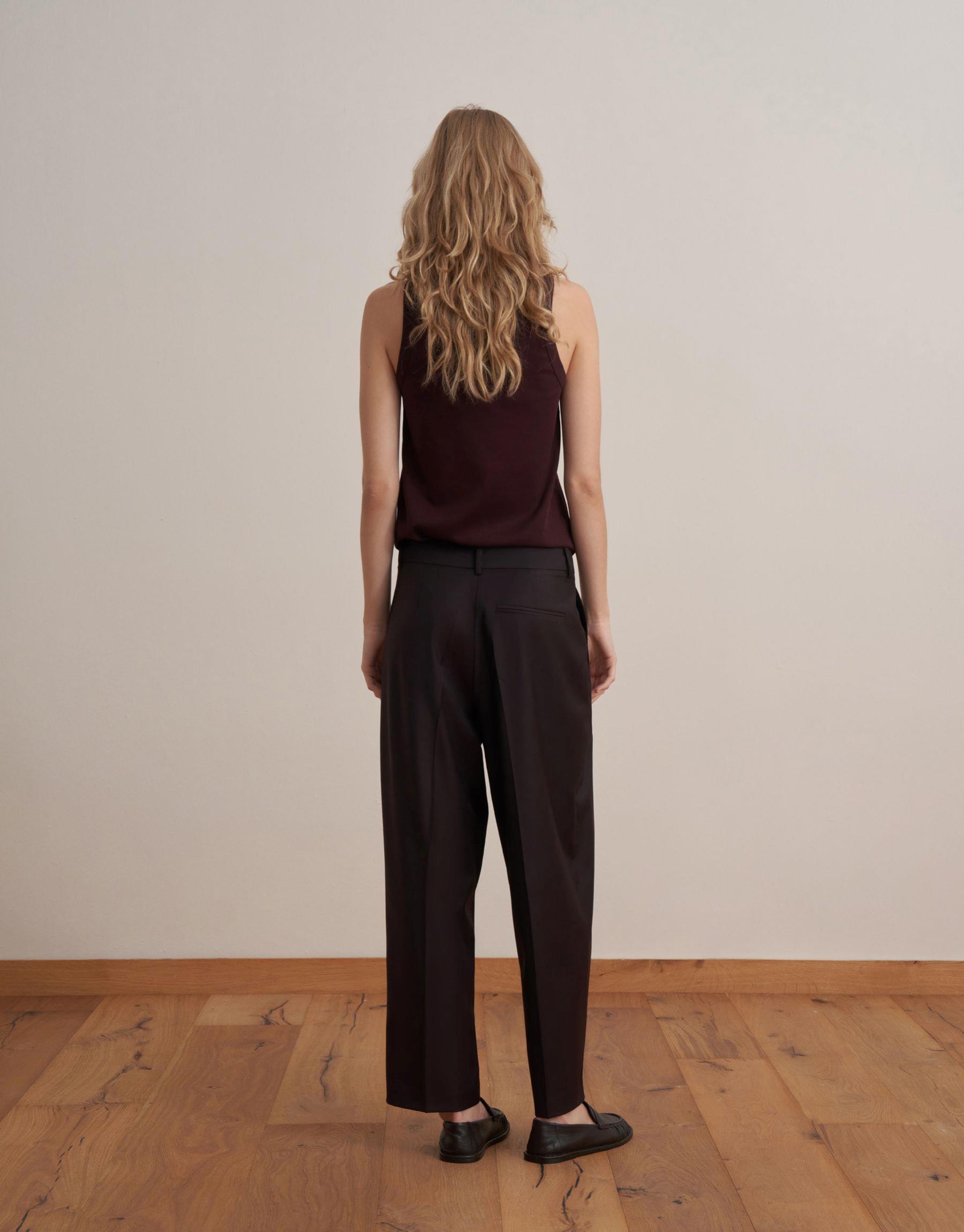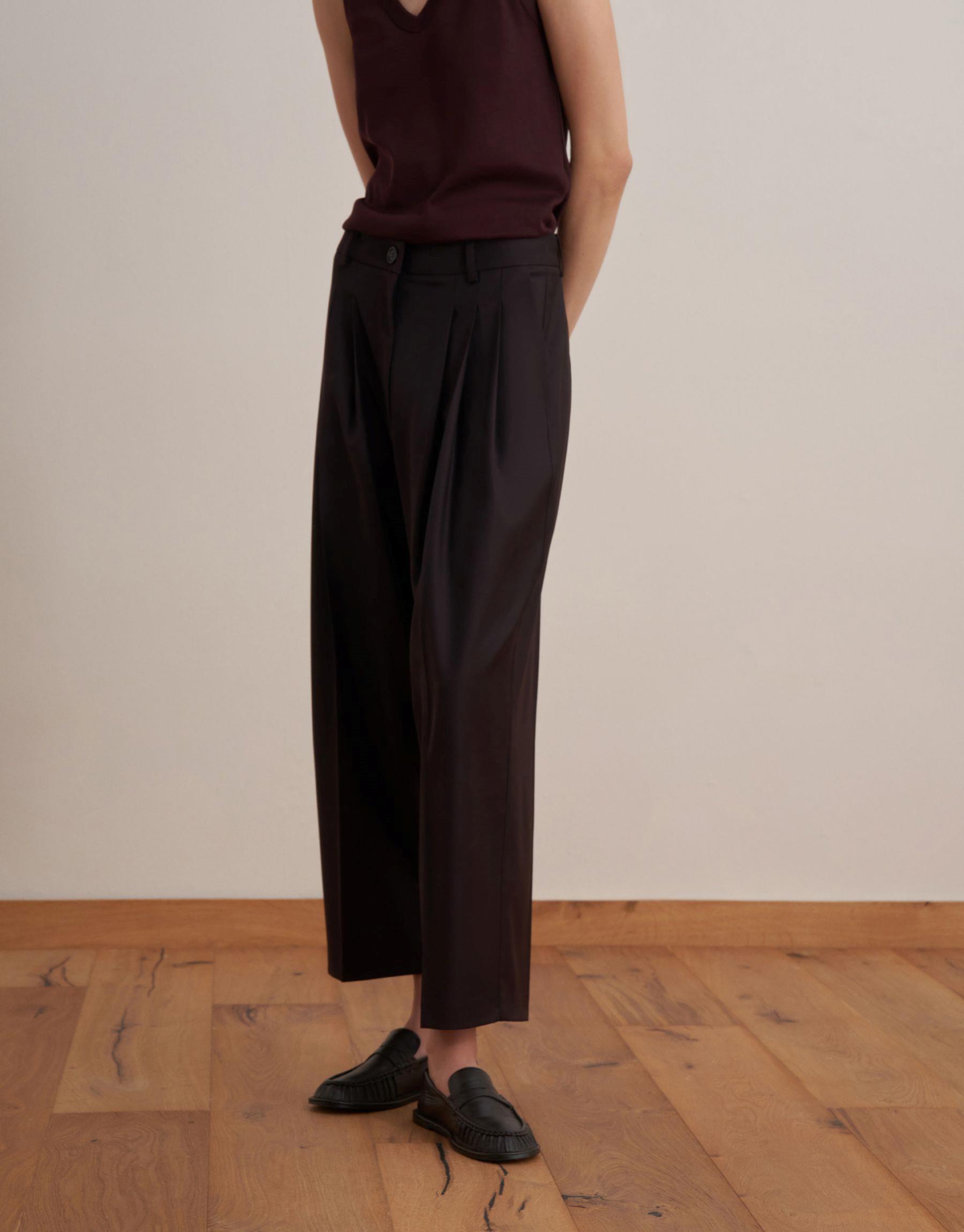 Bayan Koyu Mürdüm Pileli Yün Pantolon | KK Design