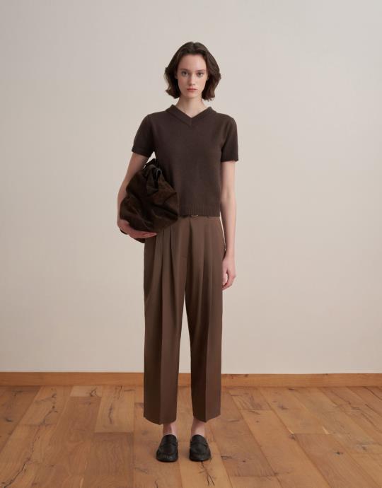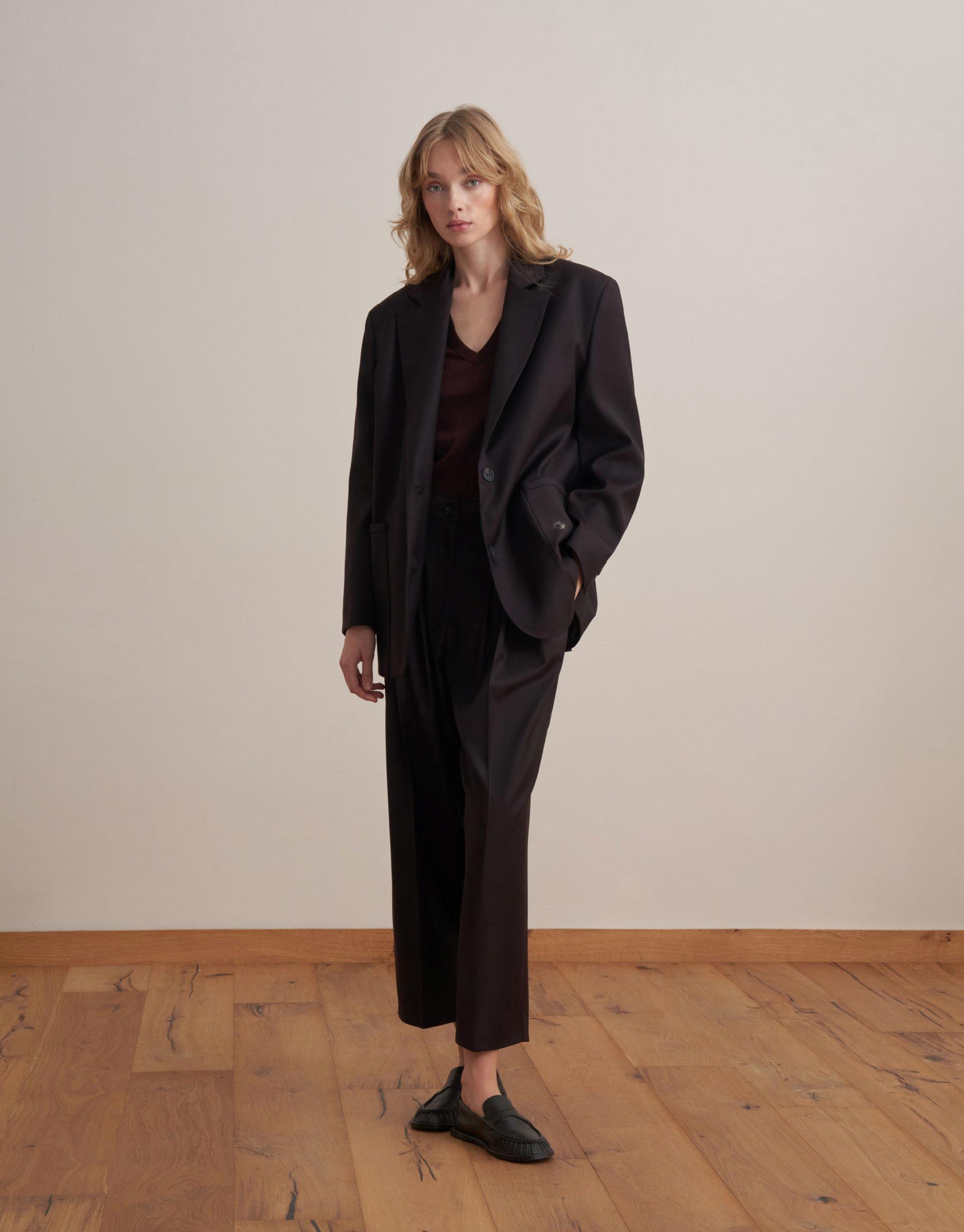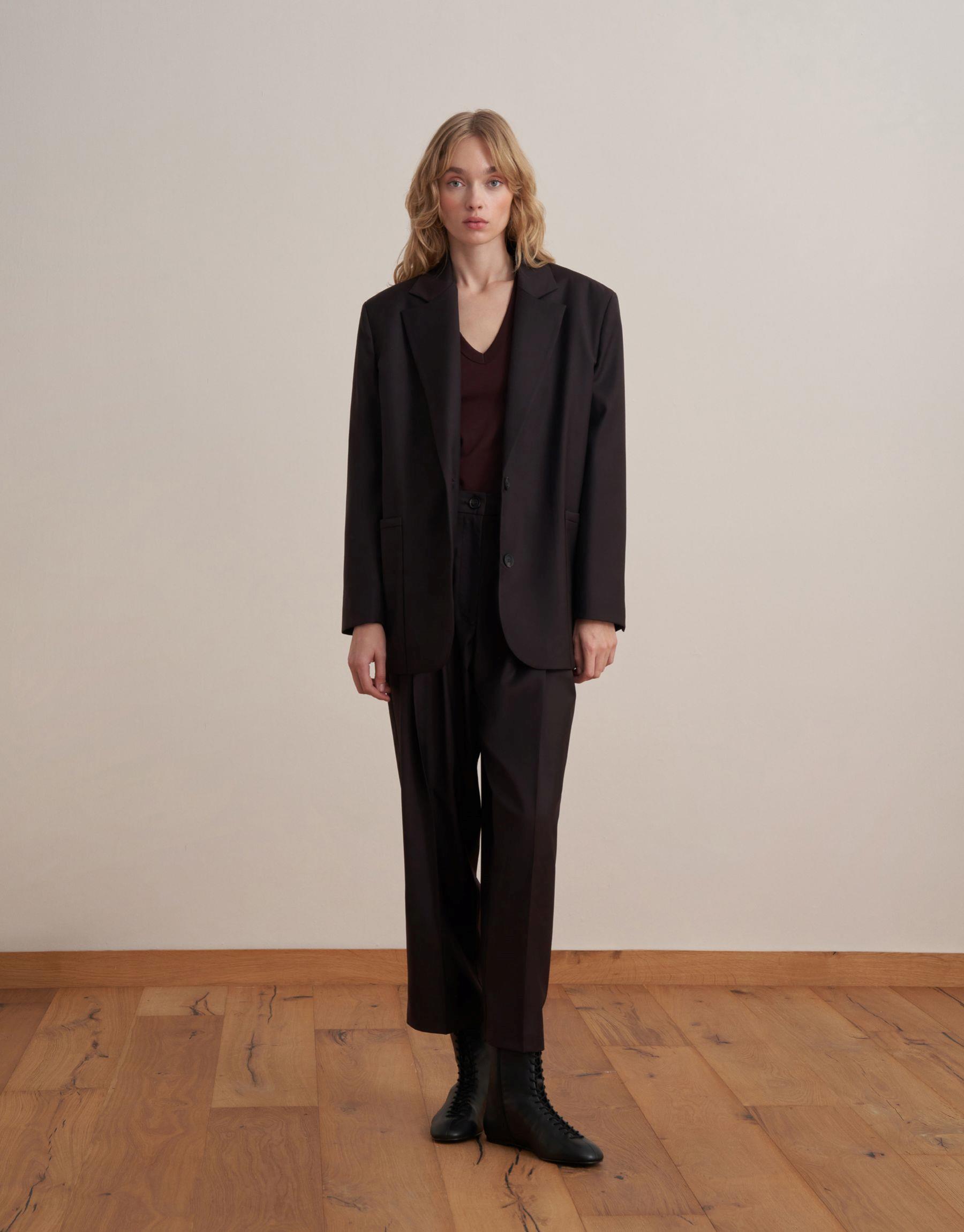 Bayan Koyu Mürdüm Pileli Yün Pantolon | KK Design