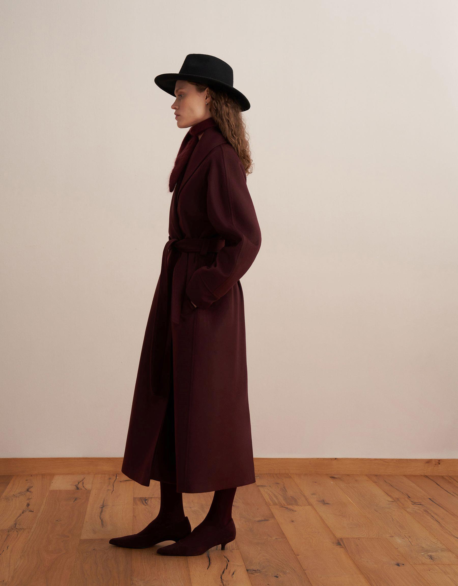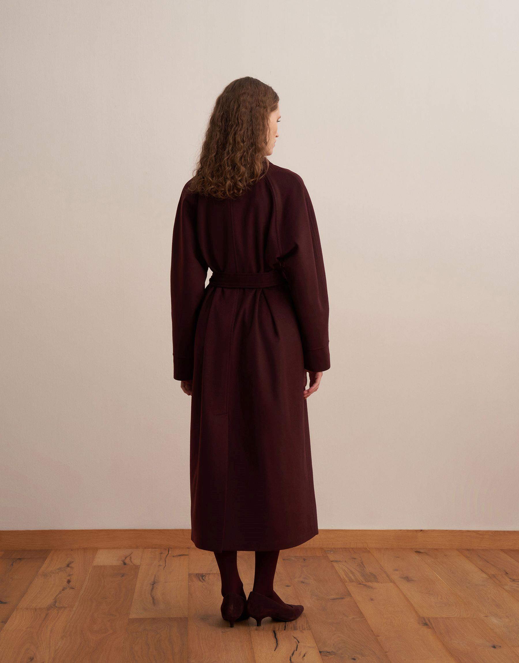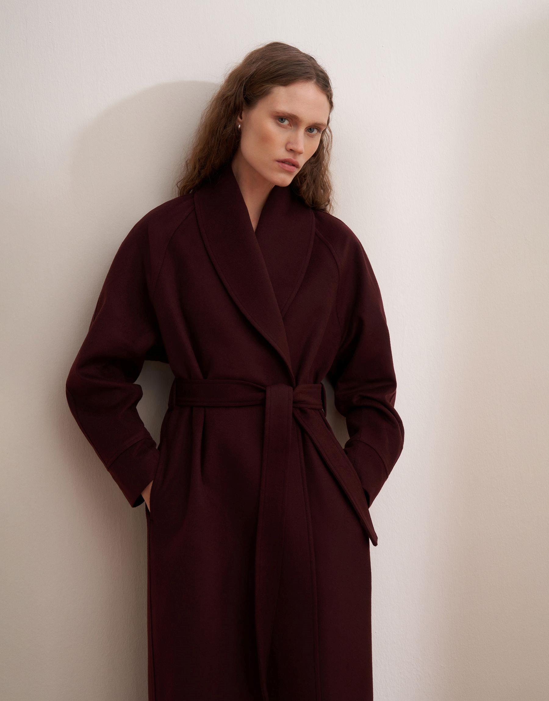 Bayan Burgonya Şal Yaka Yün Palto | KK Design