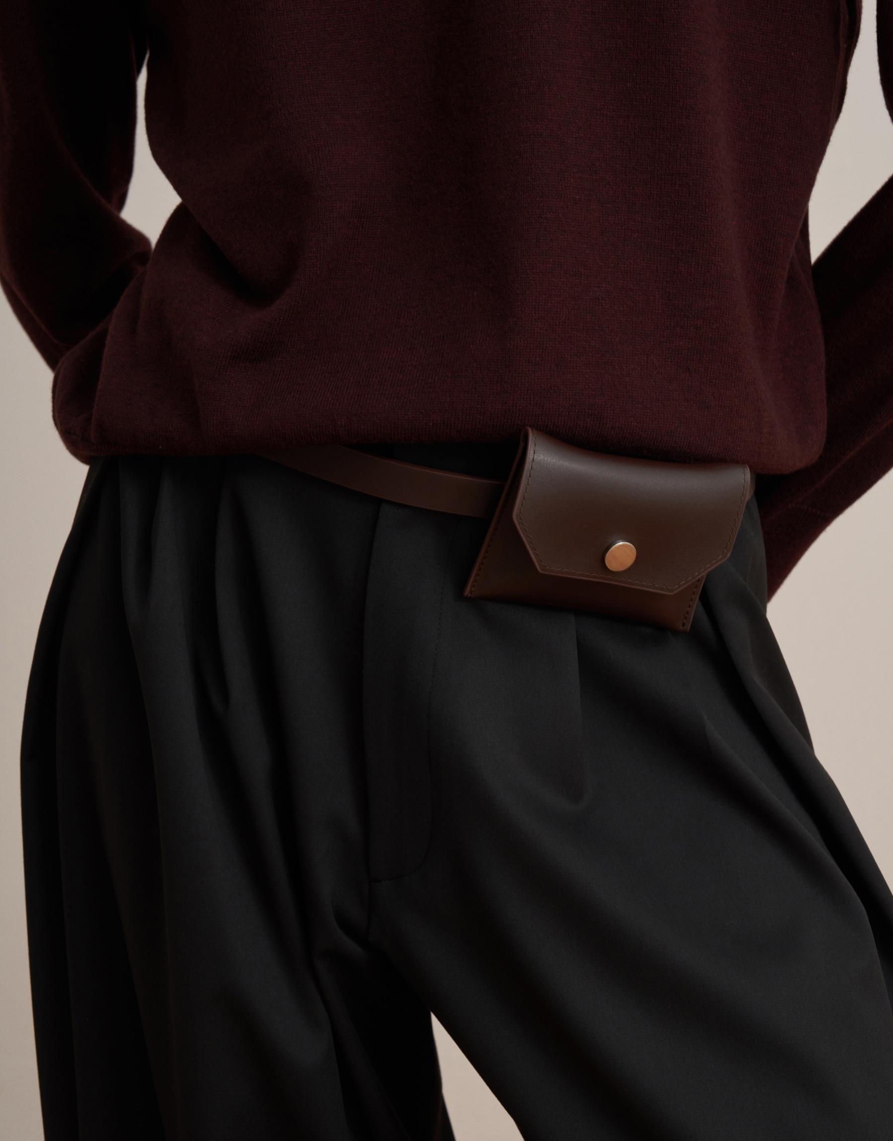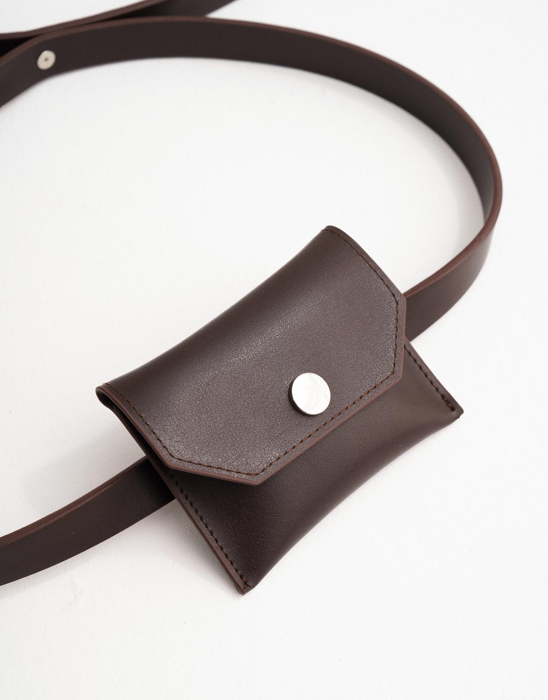 Çanta Detaylı Deri Kemer Acı Kahve