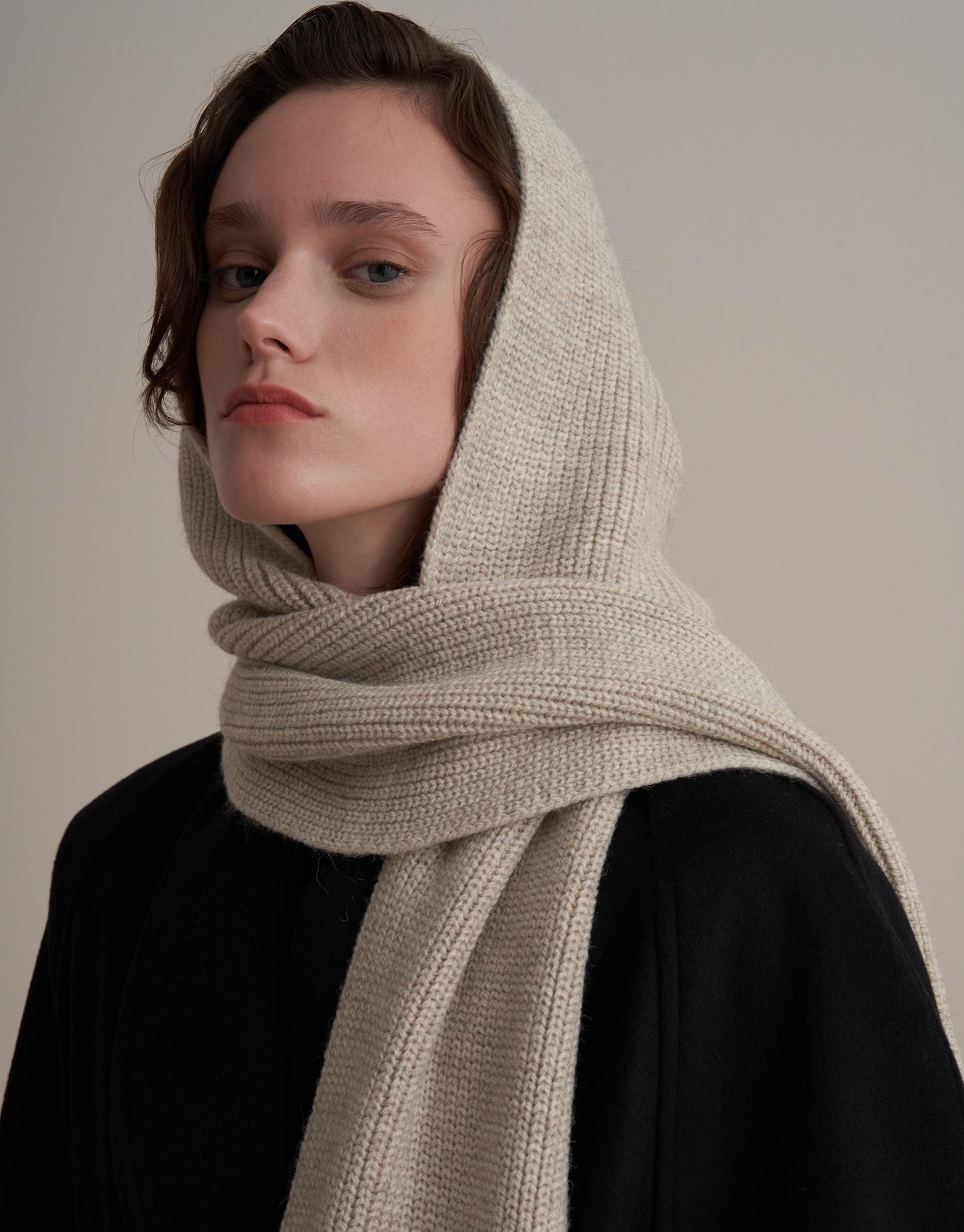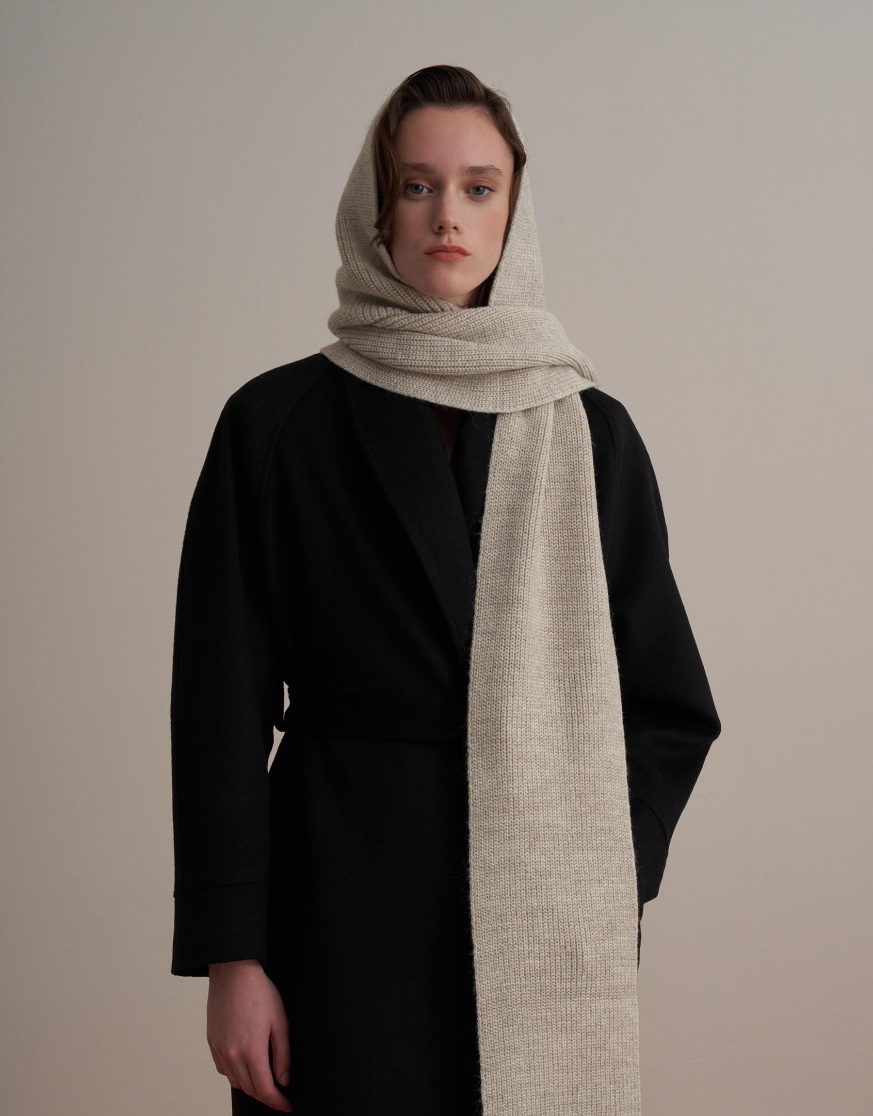 Bayan Bej Kapüşonlu Triko Atkı | KK Design