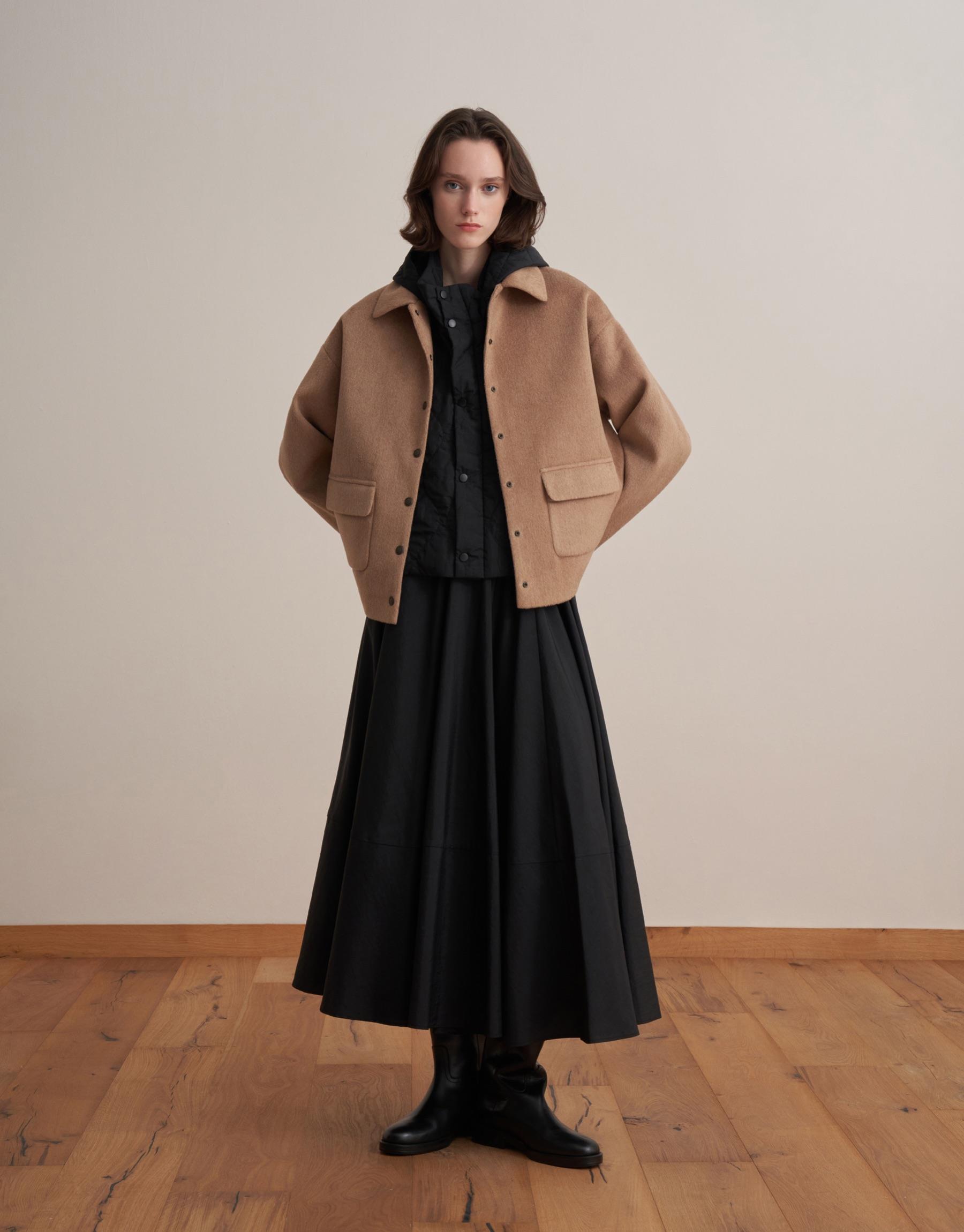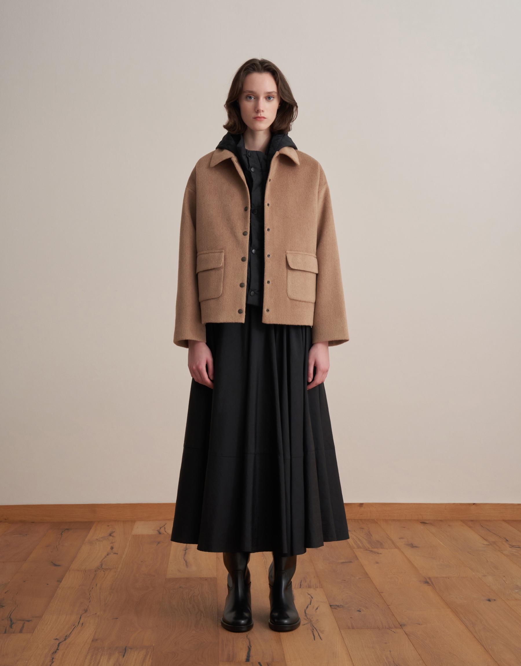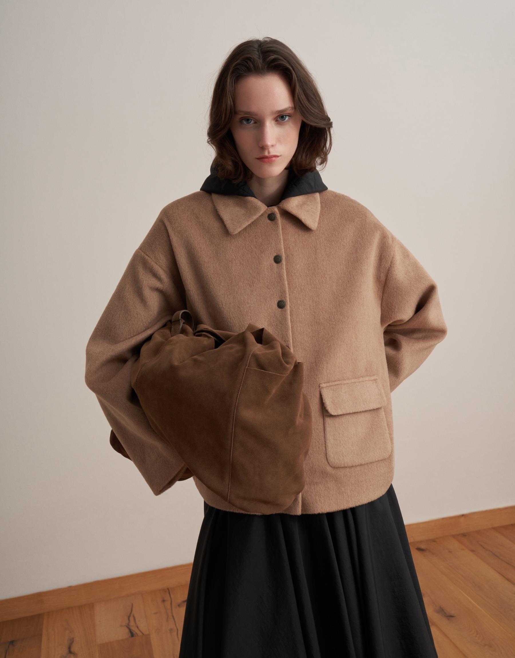 Bayan Camel Çıtçıt Kapamalı Yün Karışımlı Kaban | KK Design