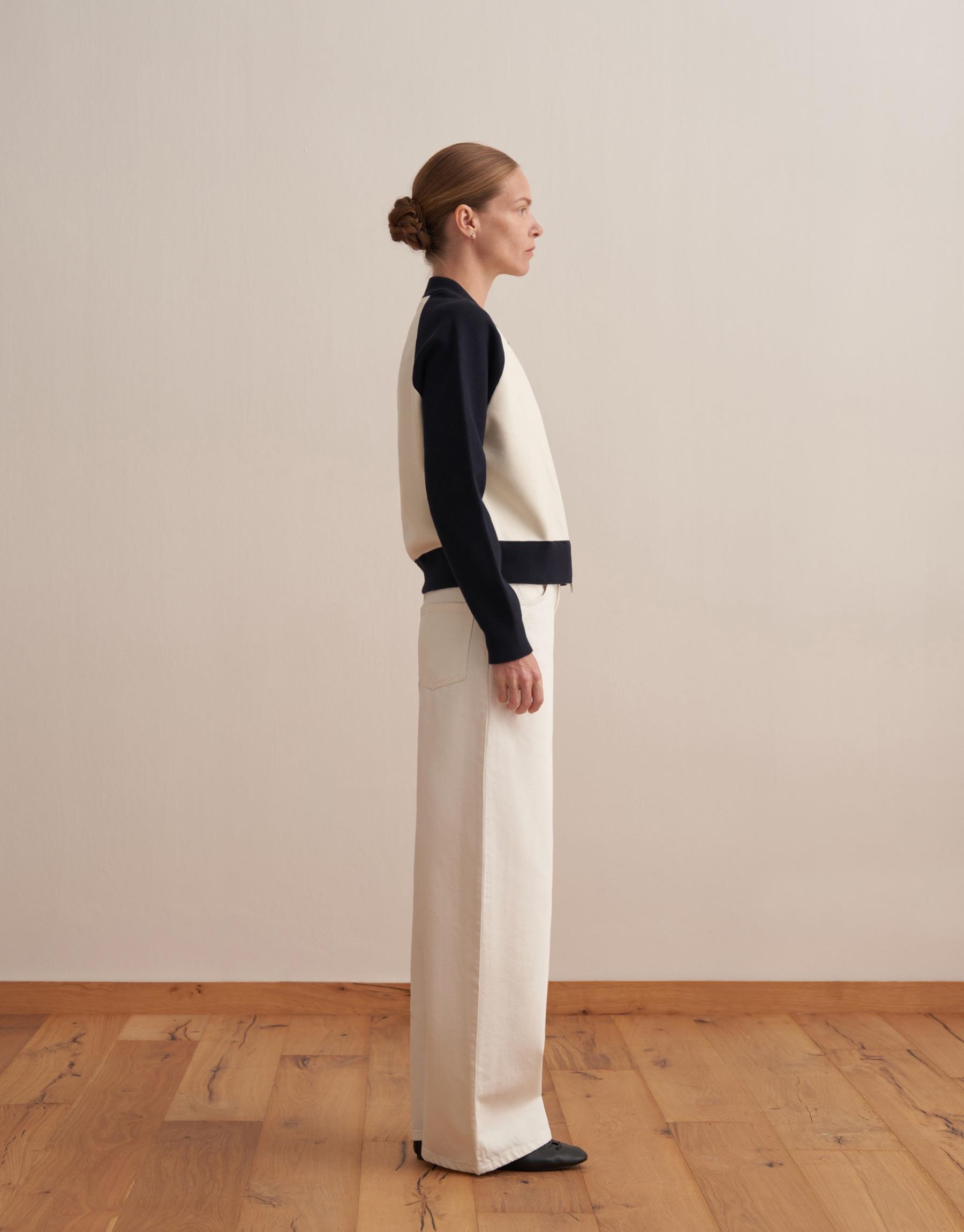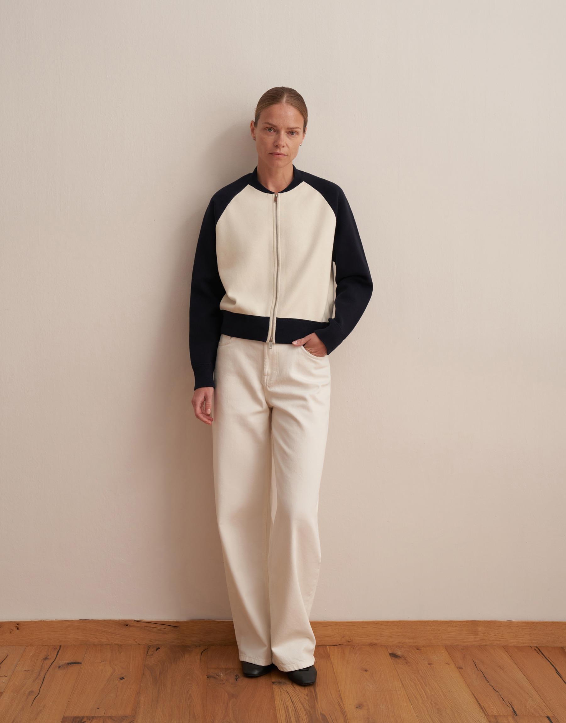 Bayan Ekru İki Renkli Pamuk Triko Hırka | KK Design