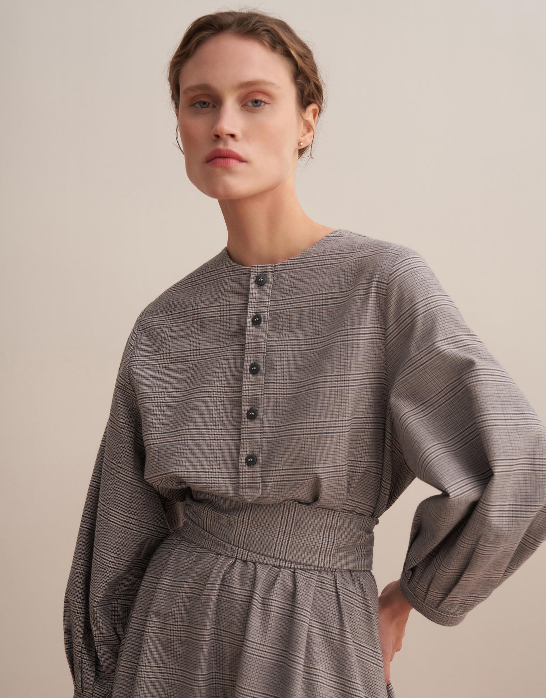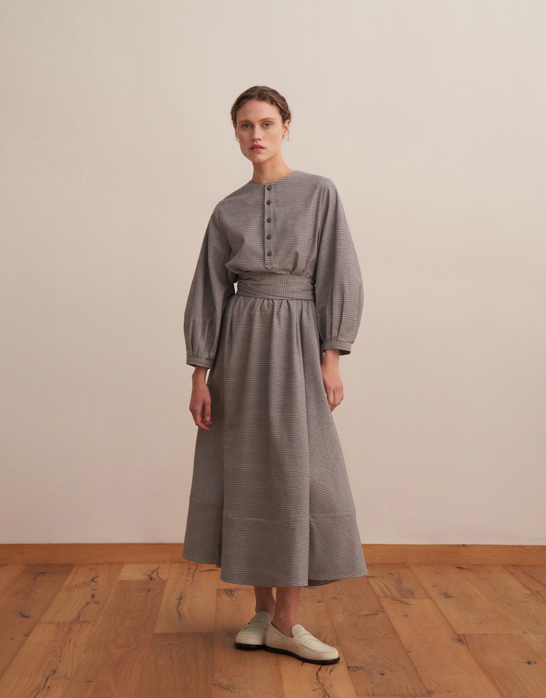 Bayan Gri Kemer Detaylı Ekose Elbise | KK Design