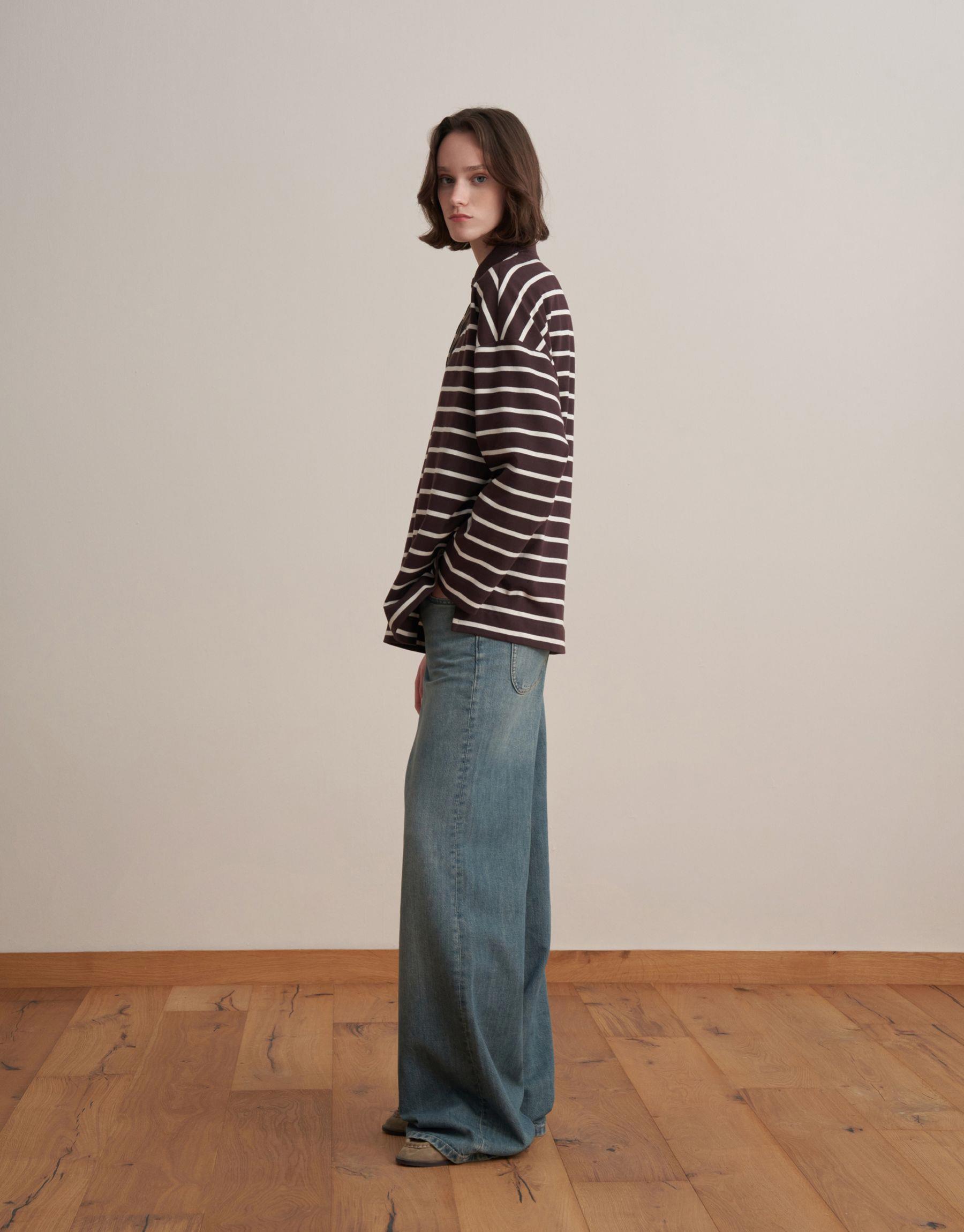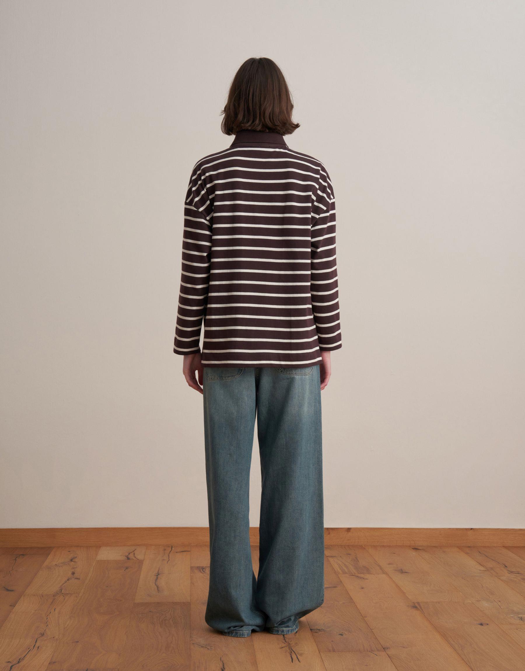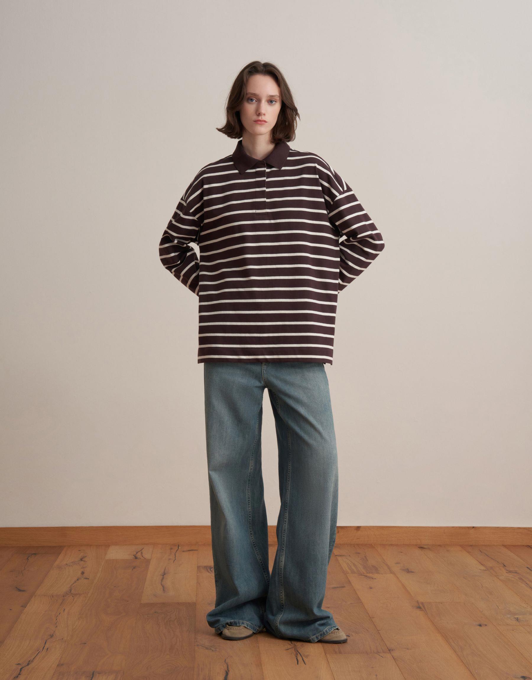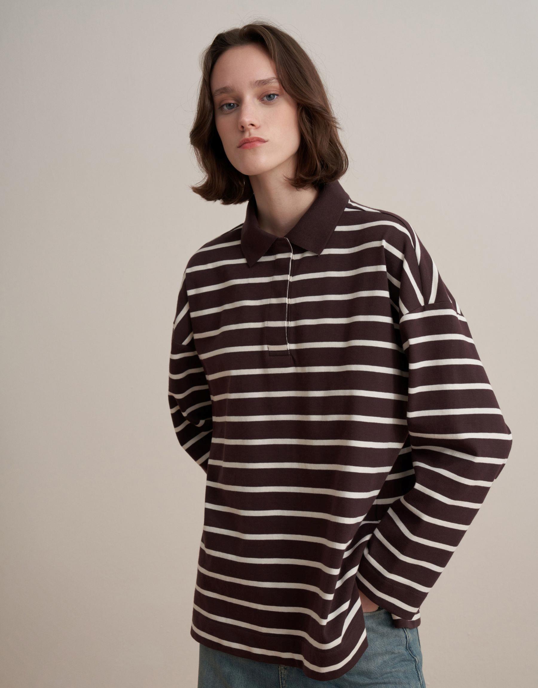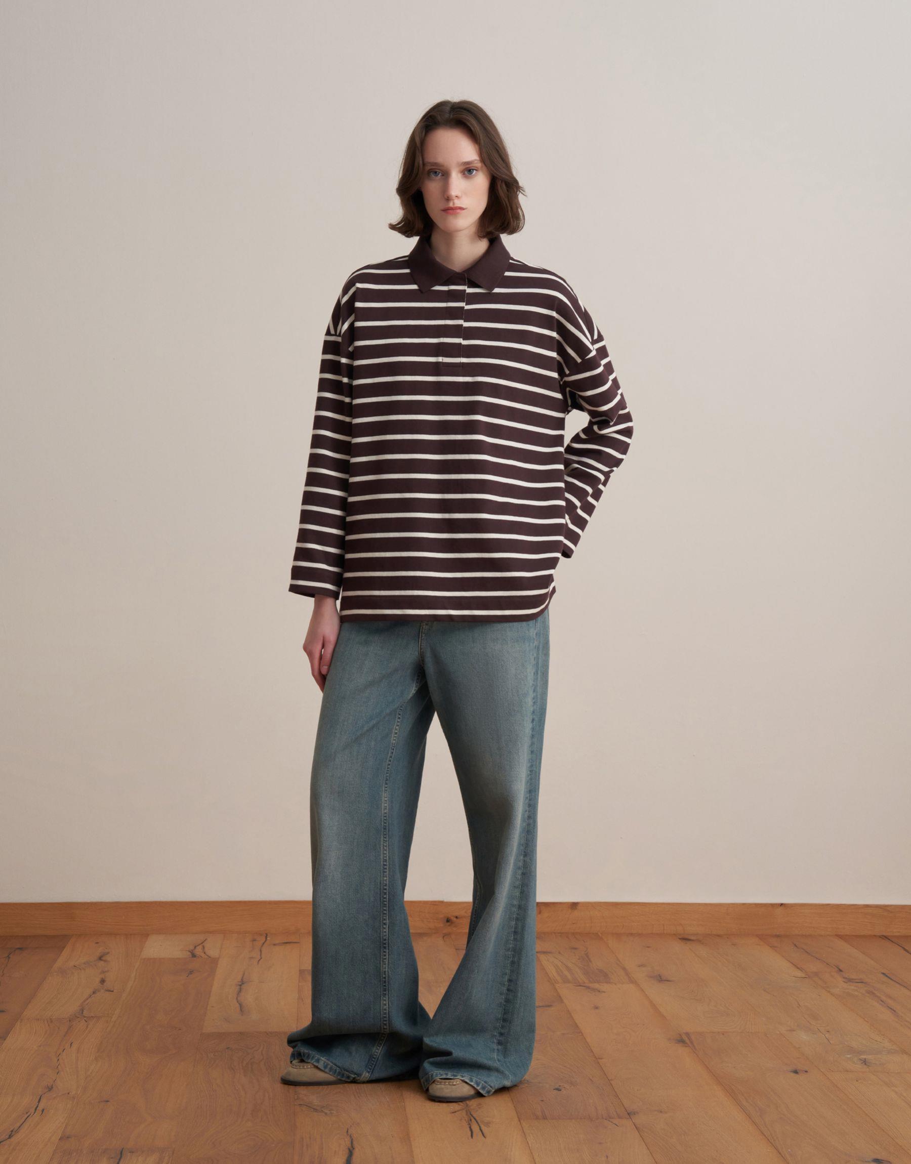 Bayan Kahverengi %100 Pamuk Çizgili Sweatshirt | KK Design