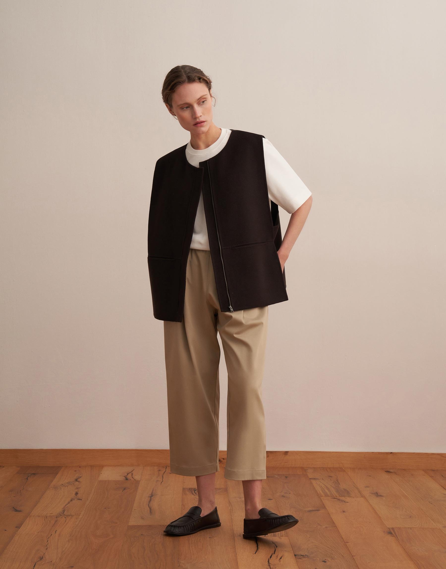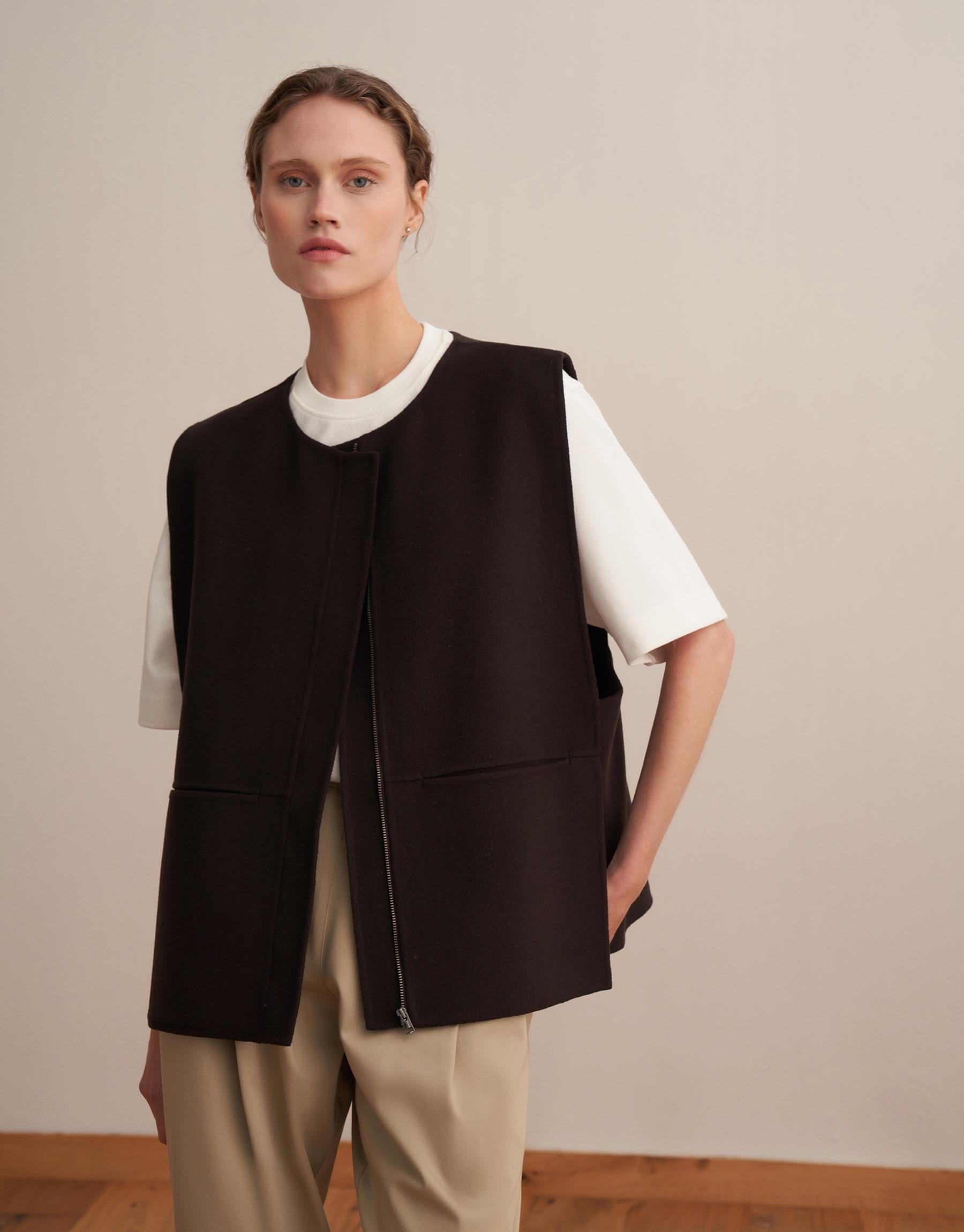 Yün Karışımlı Fermuarlı Yelek Koyu Yağ Yeşili