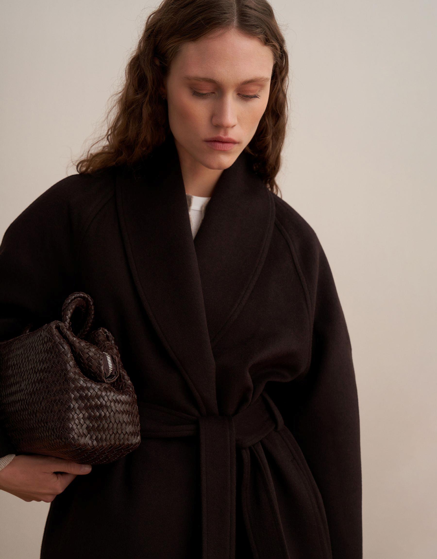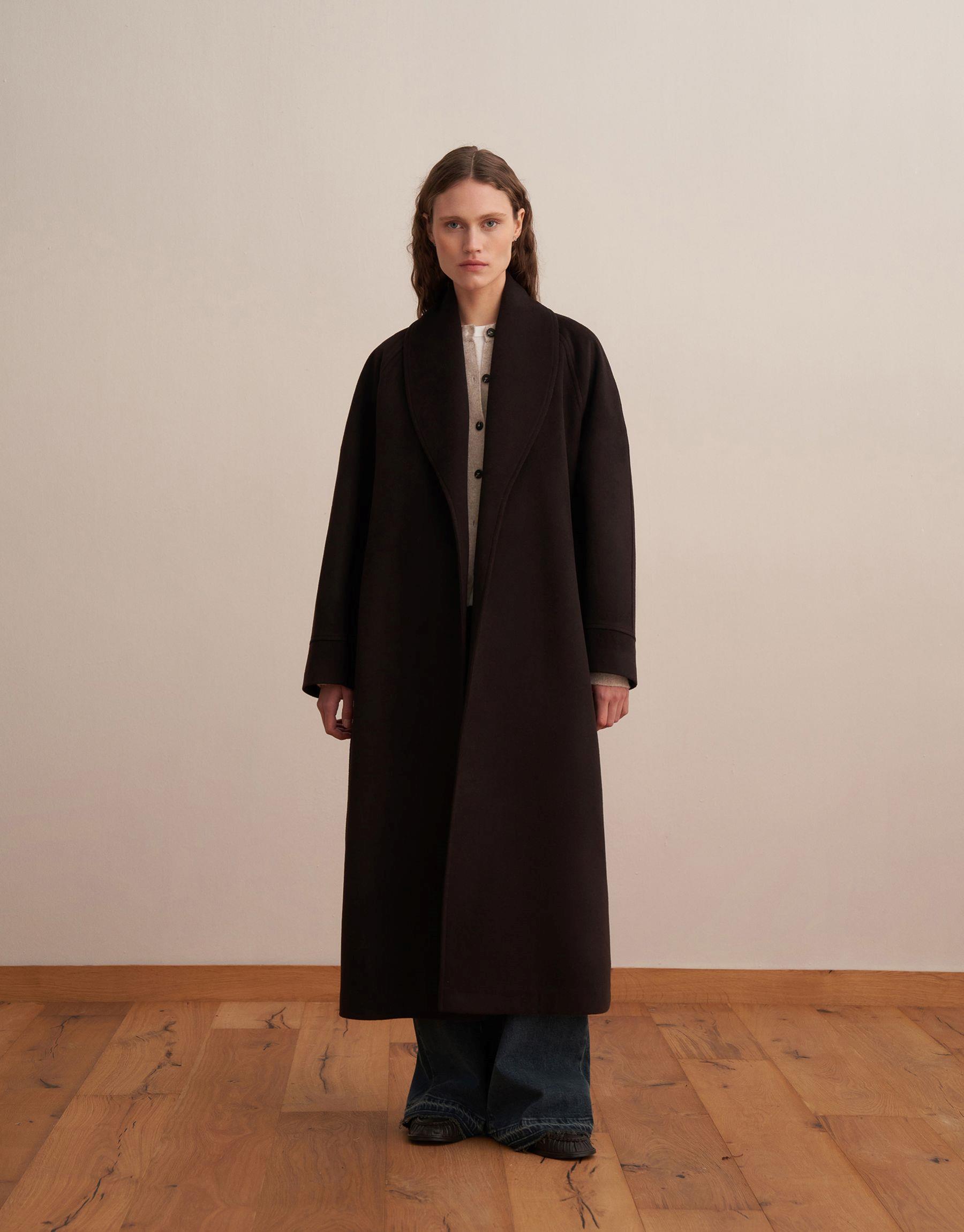 Bayan Kahverengi Şal Yaka Yün Palto | KK Design