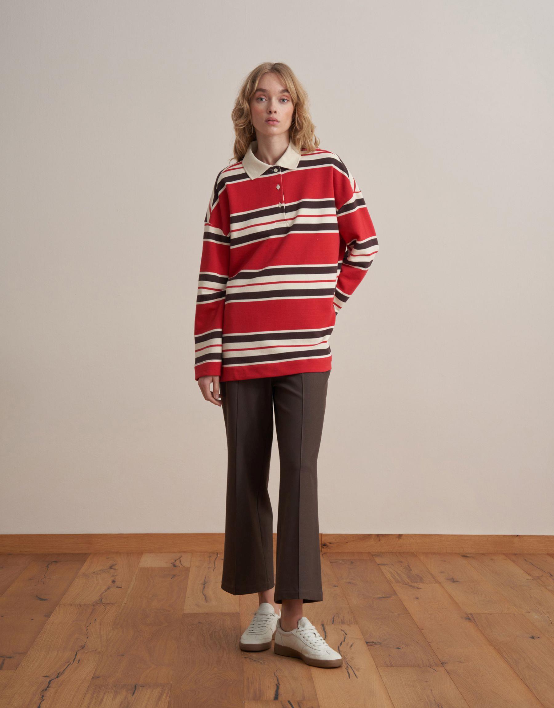 Nakış Detaylı Polo Yaka Sweatshirt Kahverengi