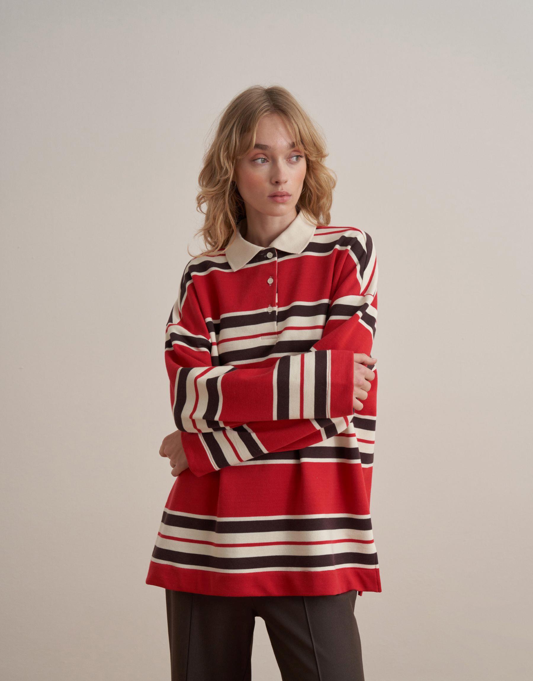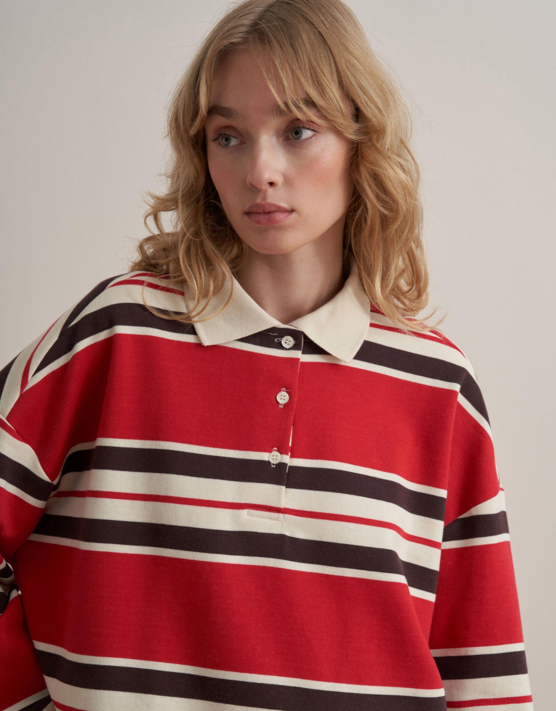Nakış Detaylı Polo Yaka Sweatshirt Ekru