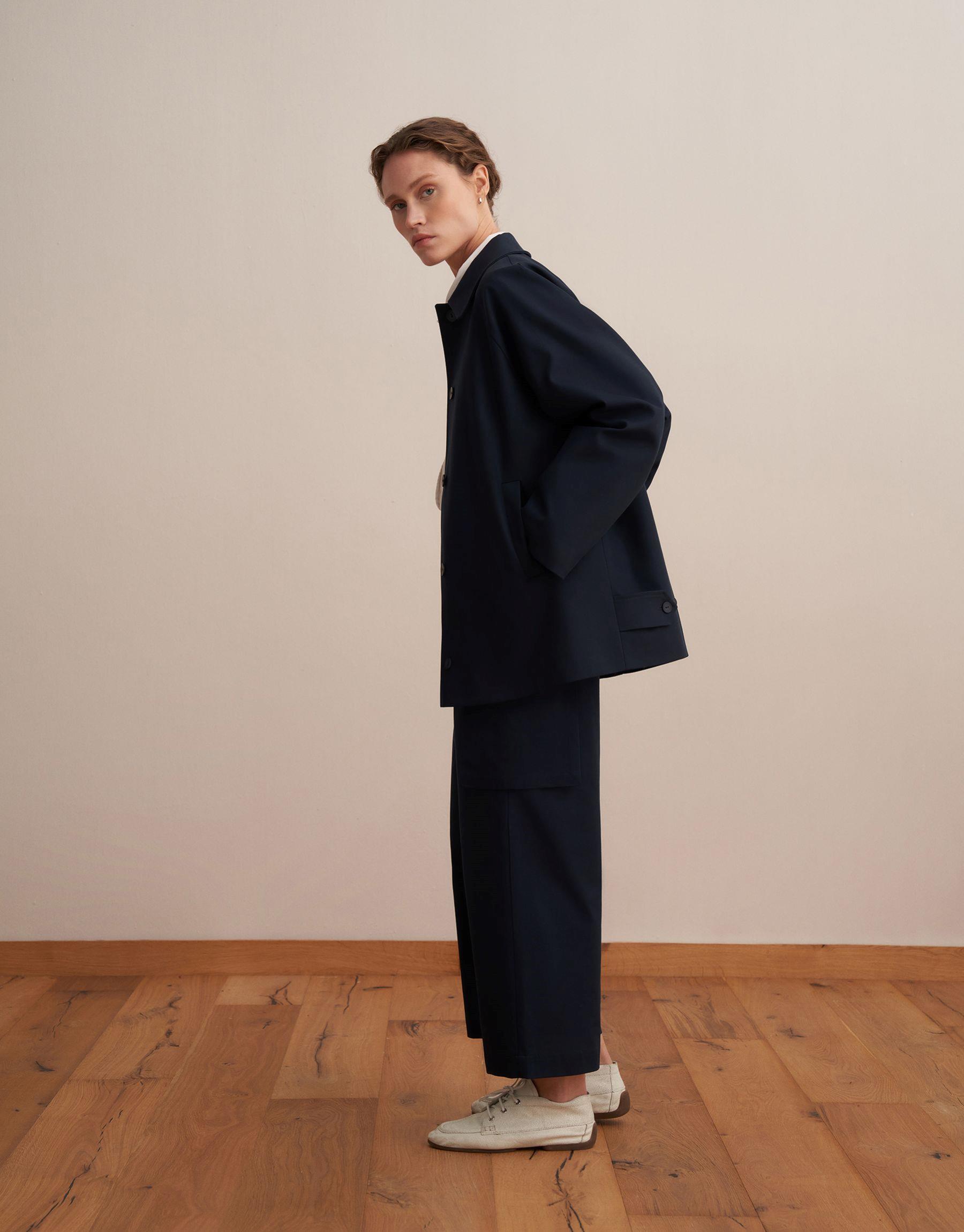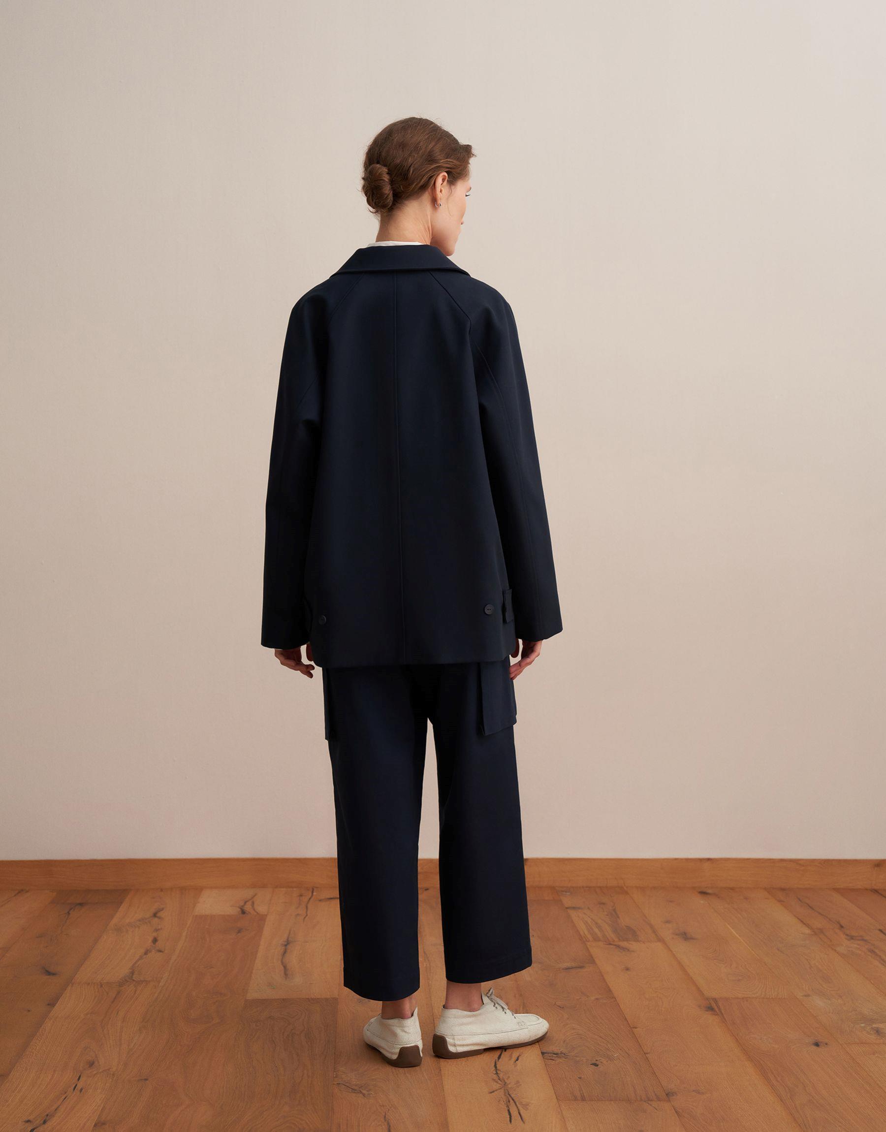 Organik Pamuk Kruvaze Trençkot Lacivert