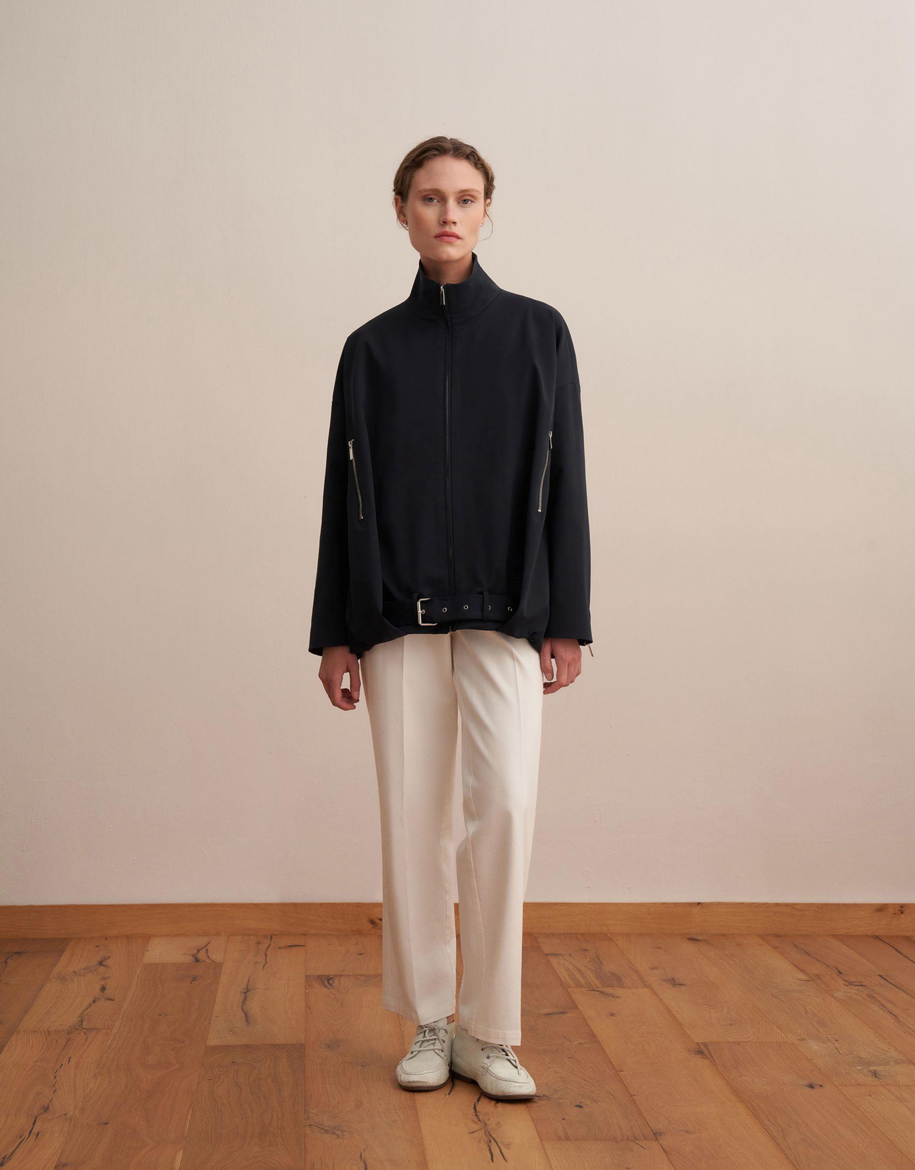 Bayan Lacivert Kemer Detaylı Teknik Ceket | KK Design