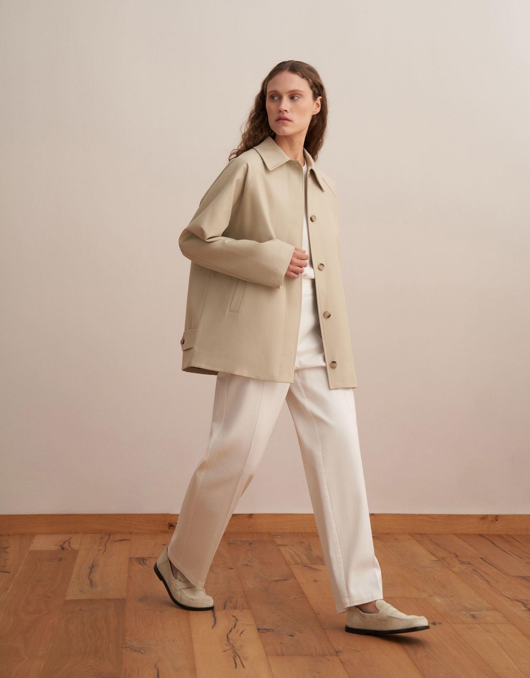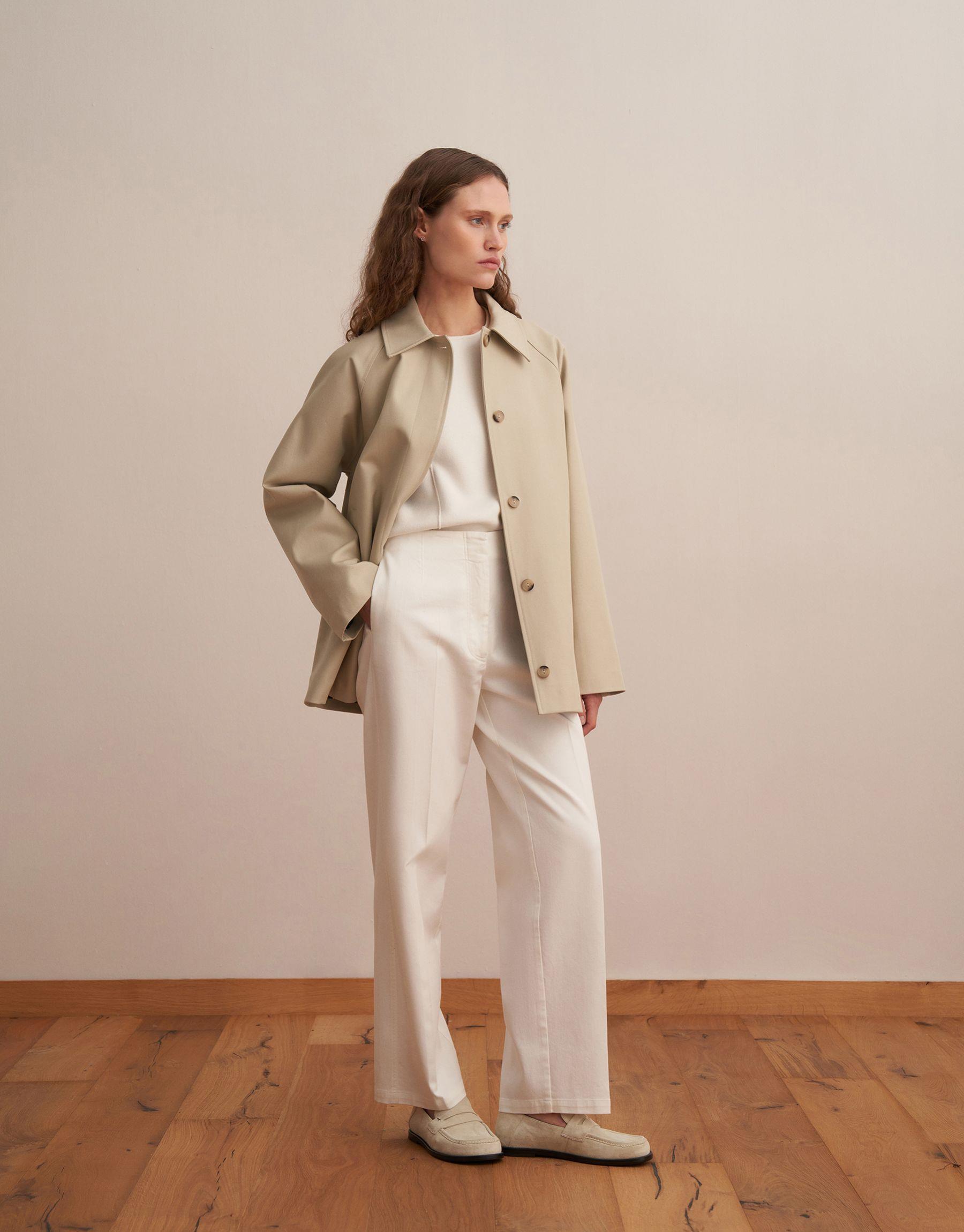 Bayan Uçuk Yeşil %100 Koton Kontrast Detaylı Trençkot | KK Design