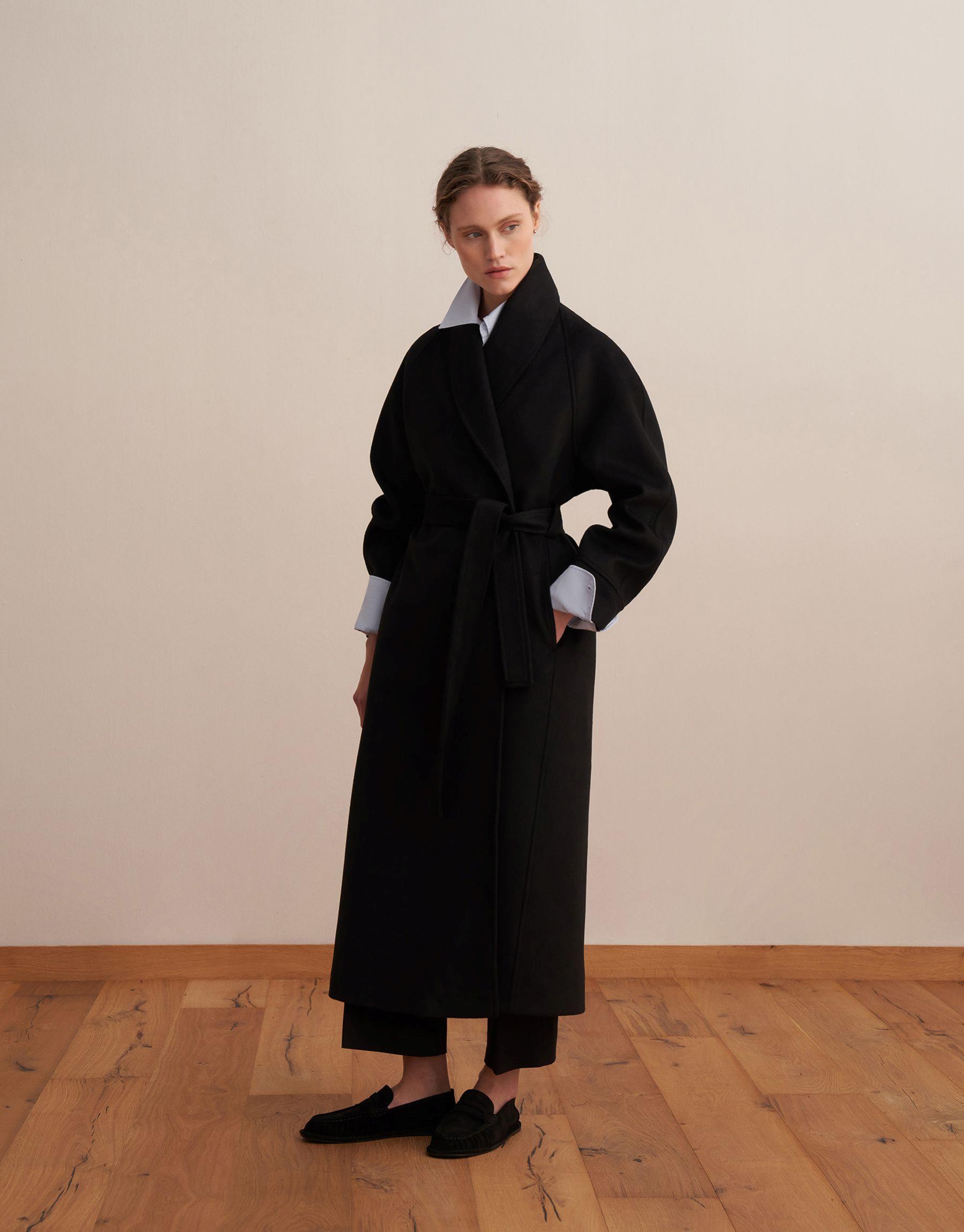 Bayan Siyah Şal Yaka Yün Palto | KK Design