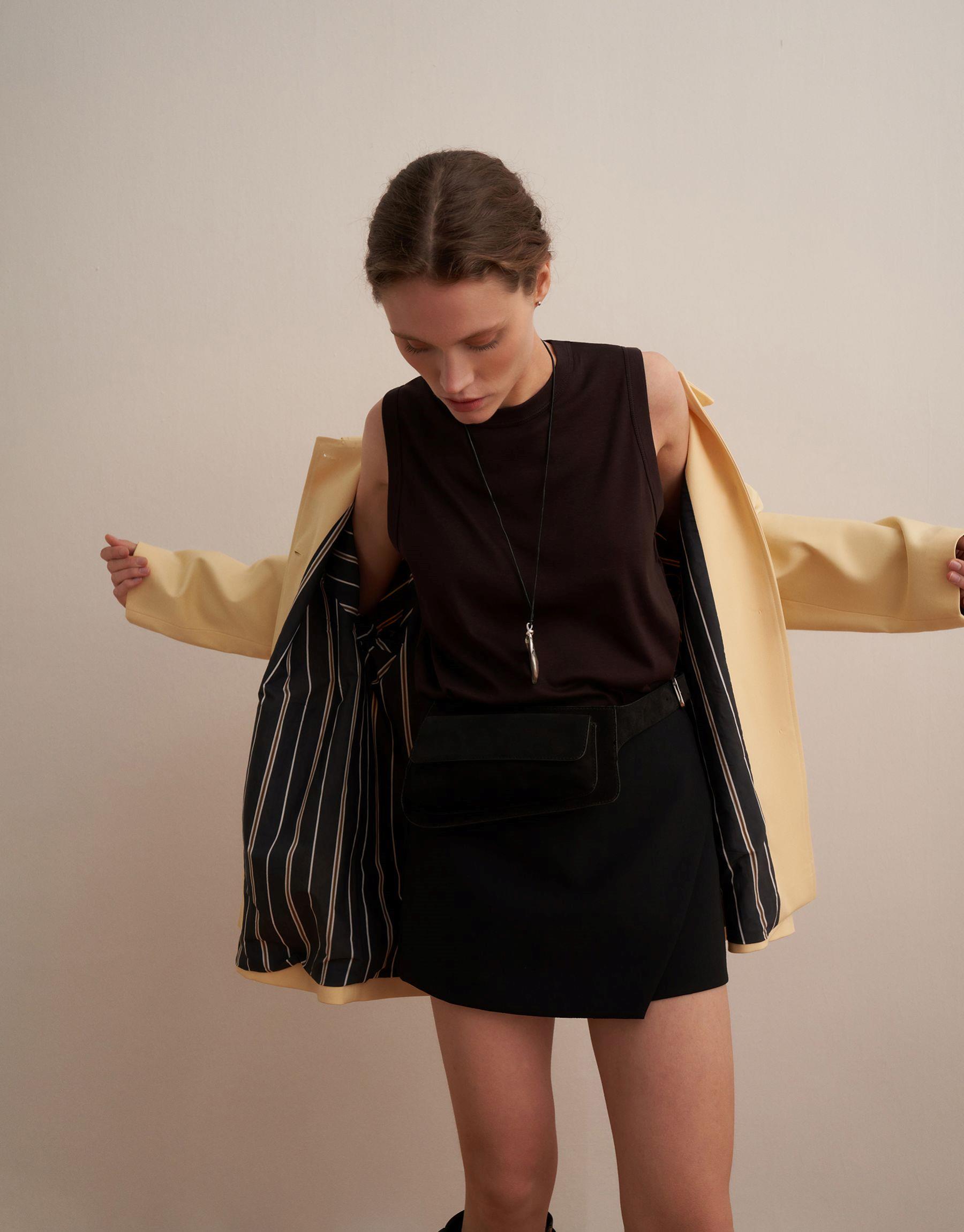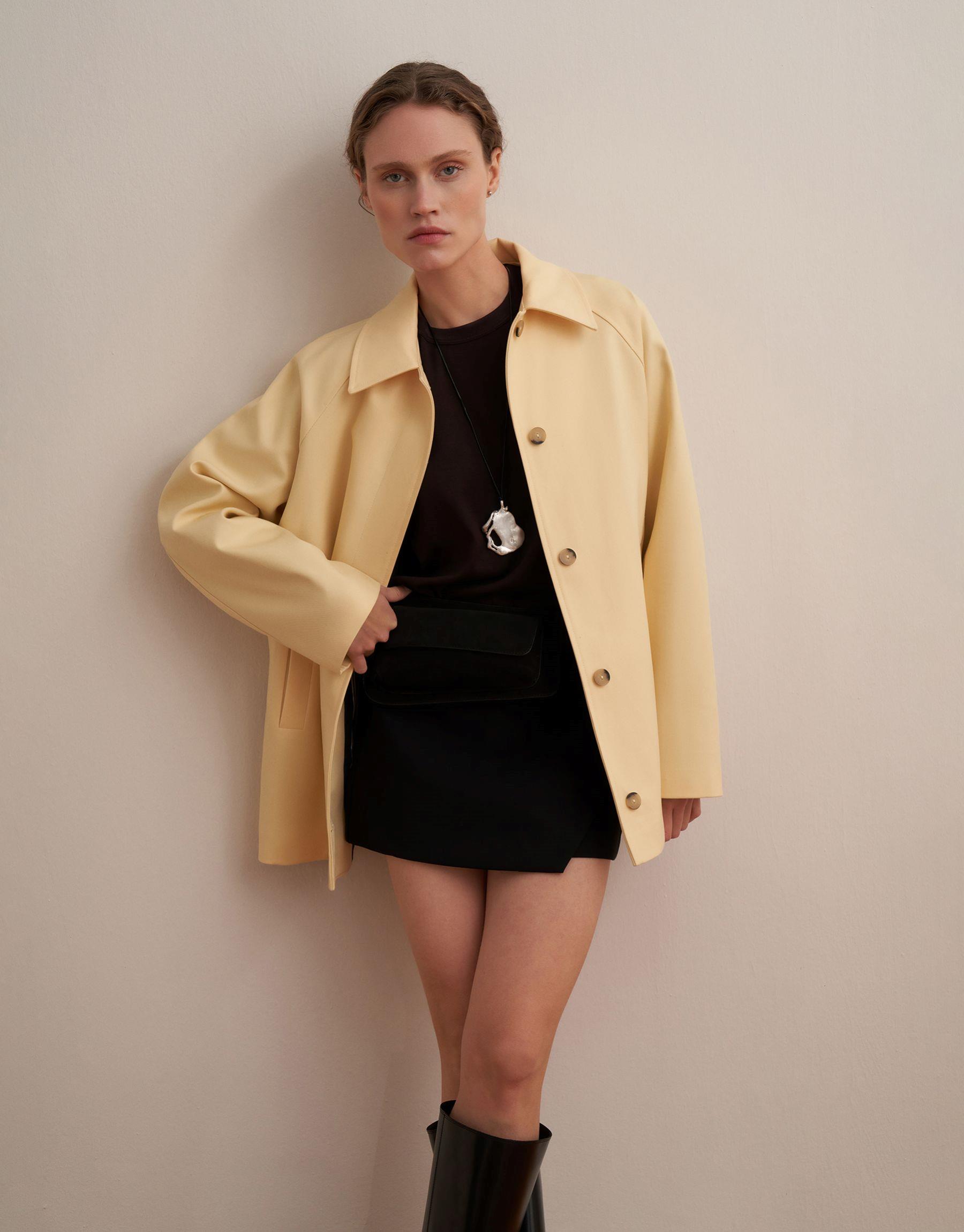 Bayan Soft Sarı %100 Koton Kontrast Detaylı Trençkot | KK Design