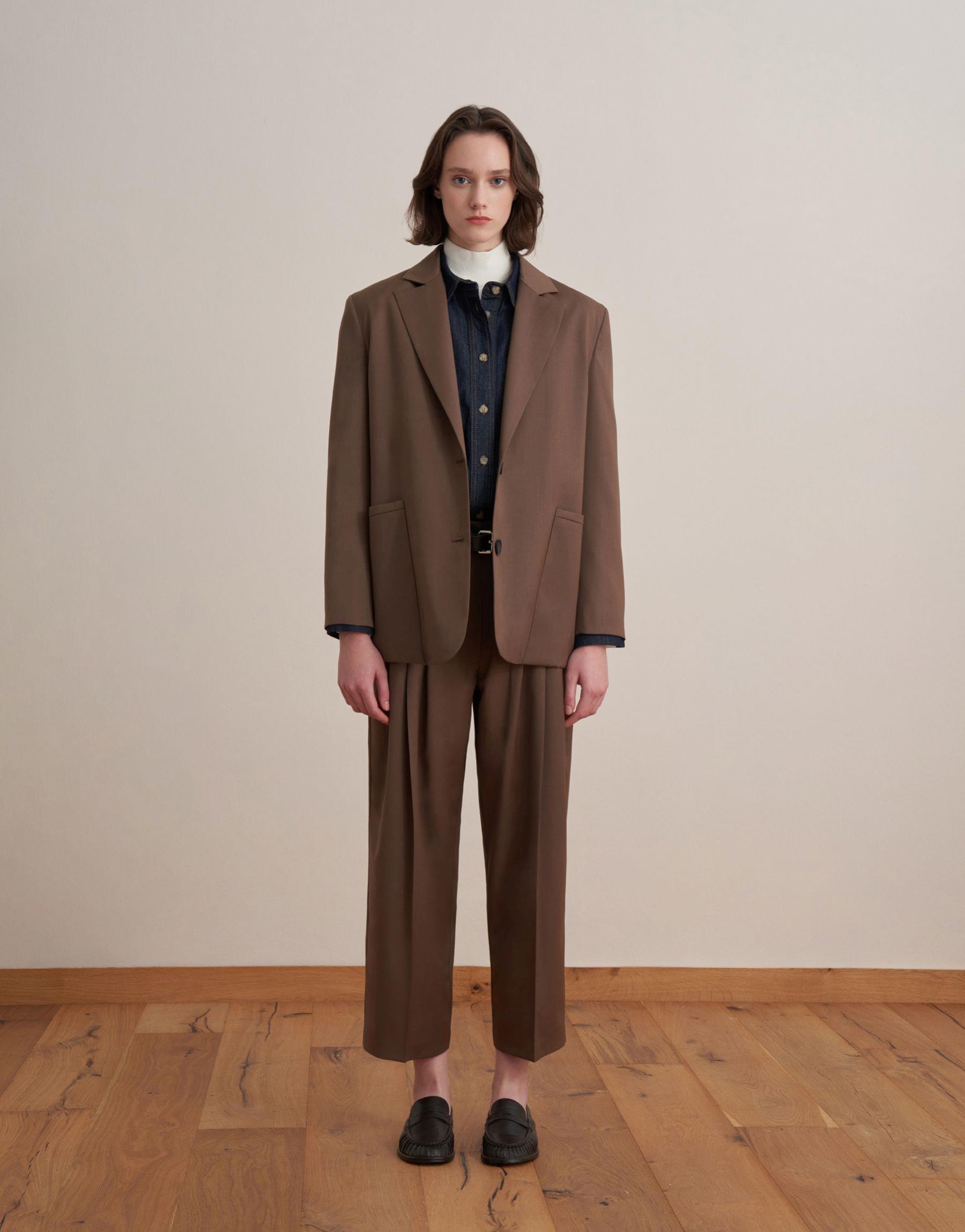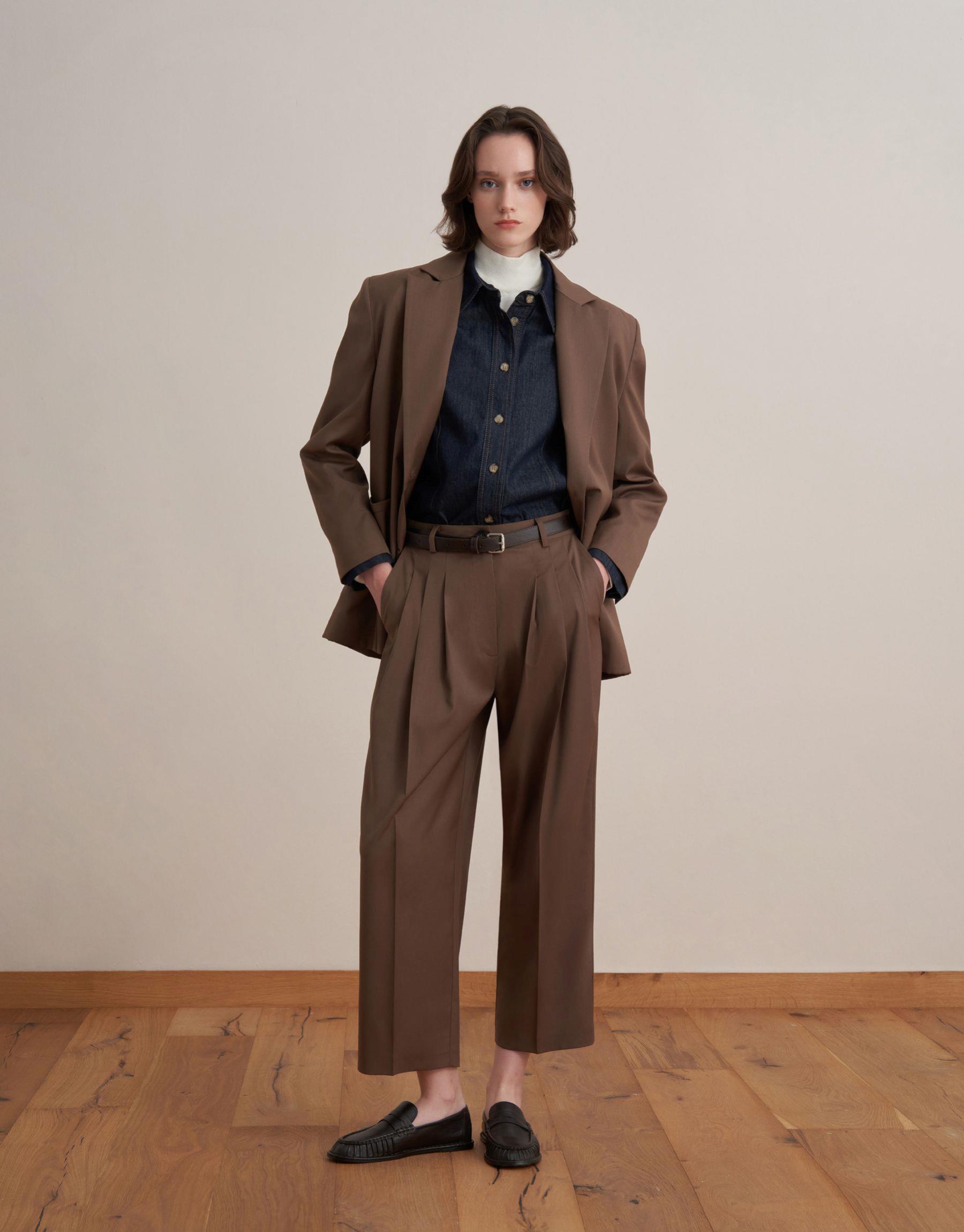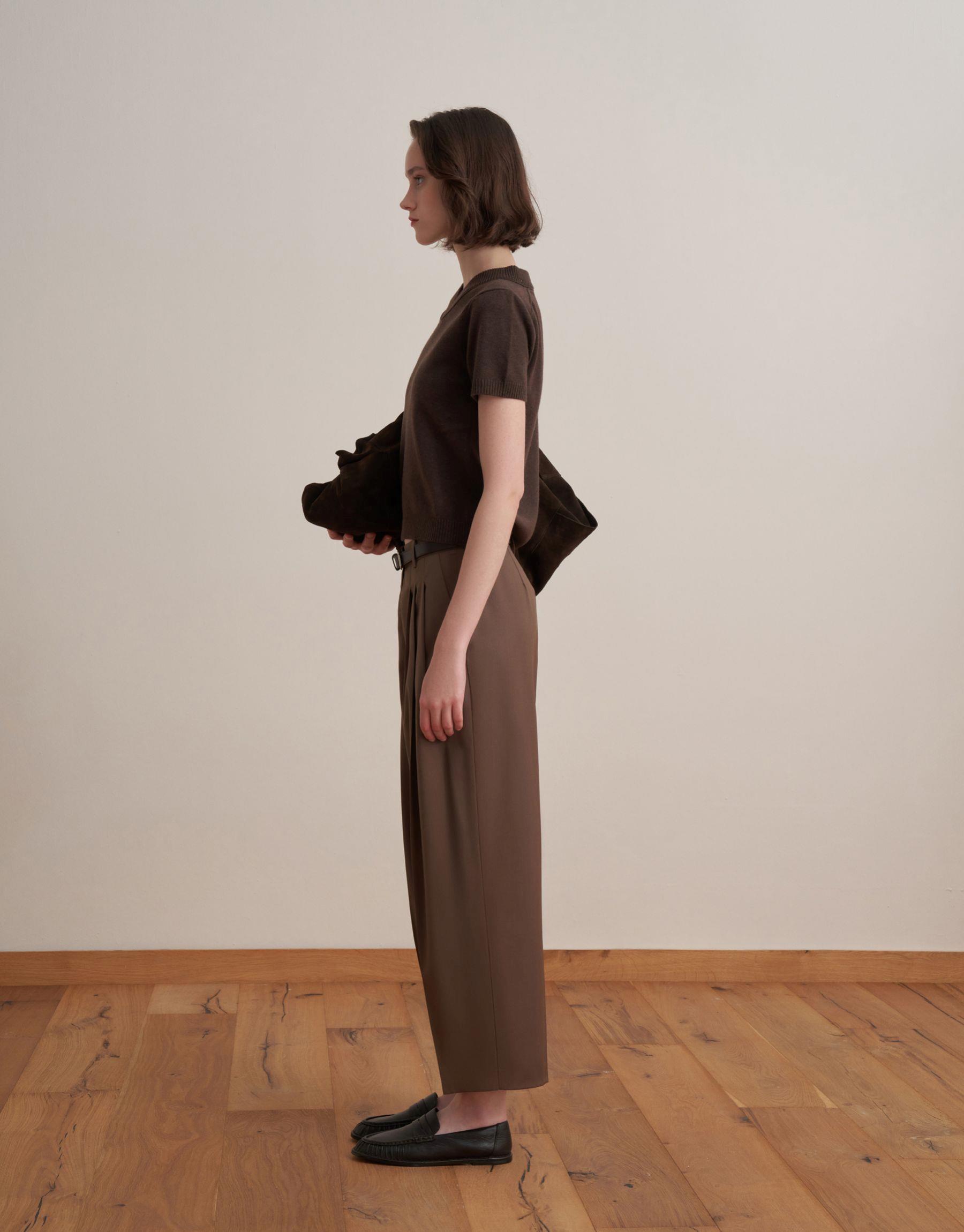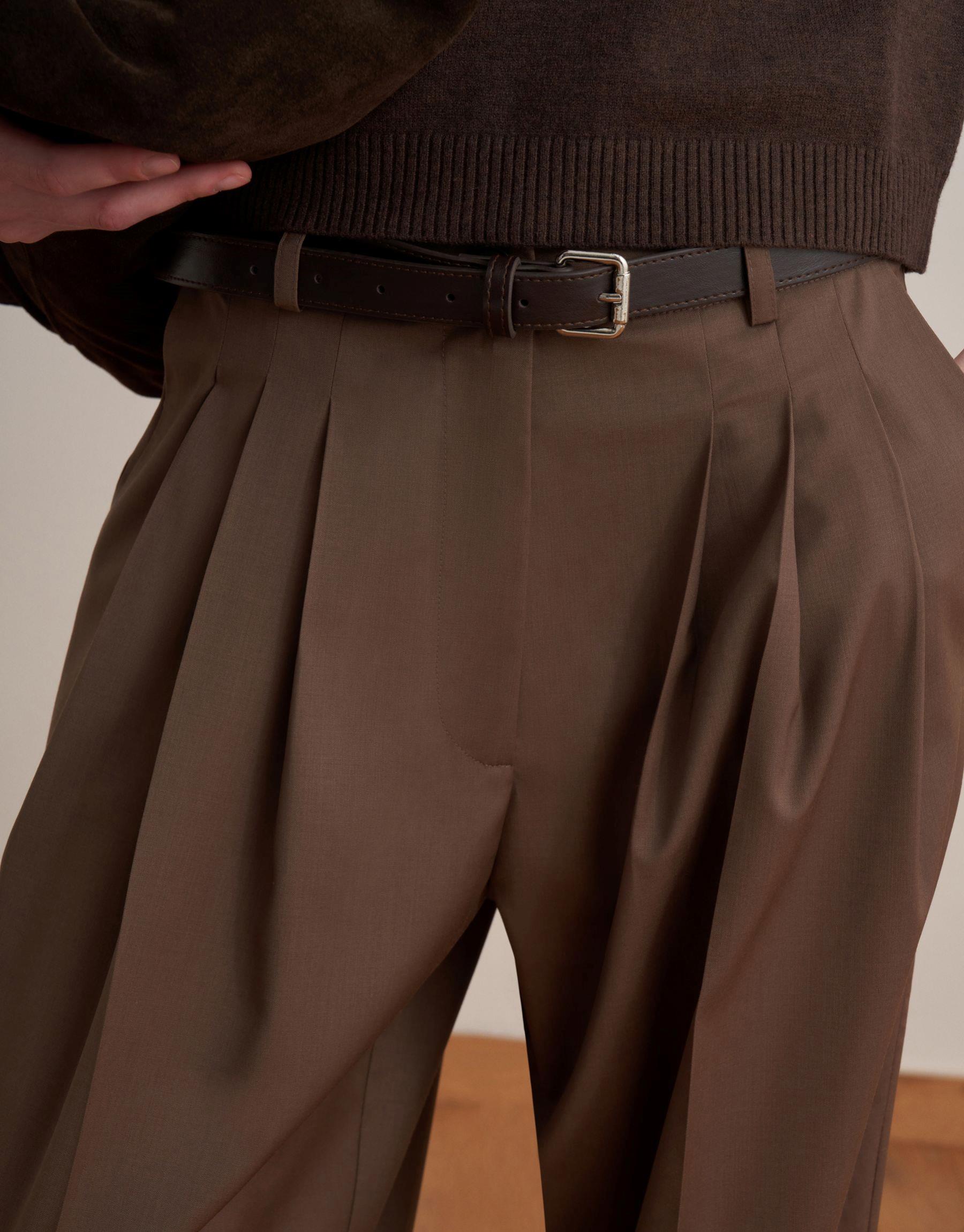 Bayan Sütlü Kahve Pileli Yün Pantolon | KK Design