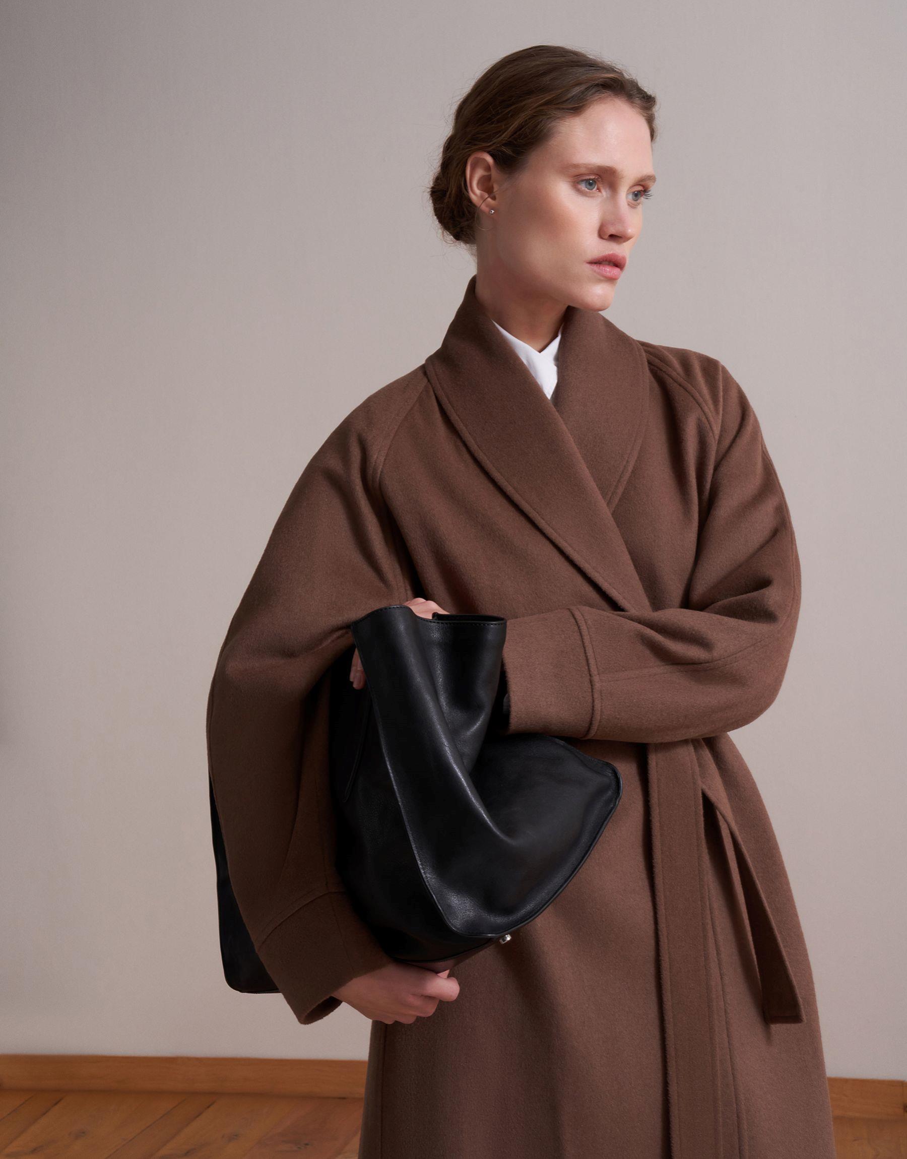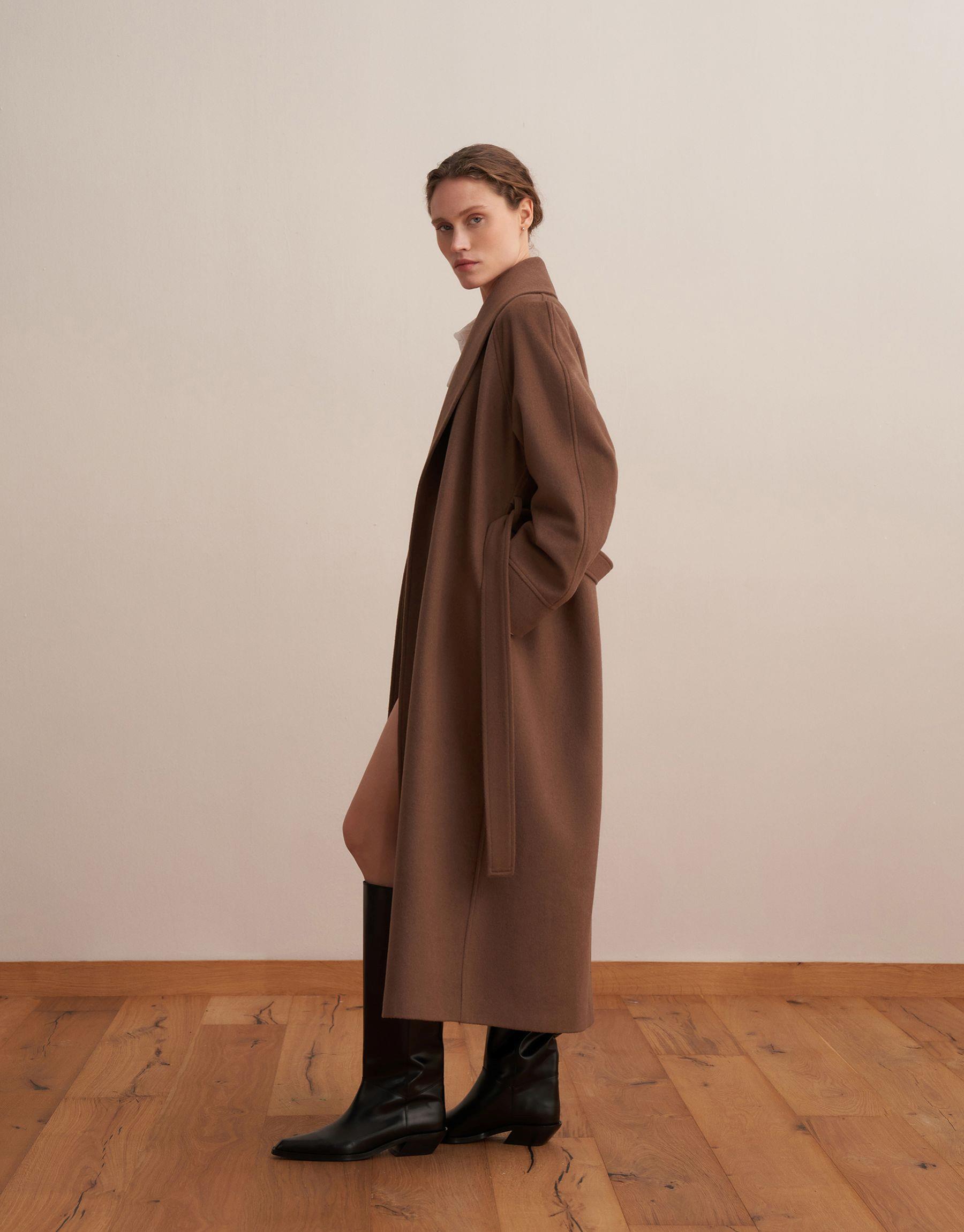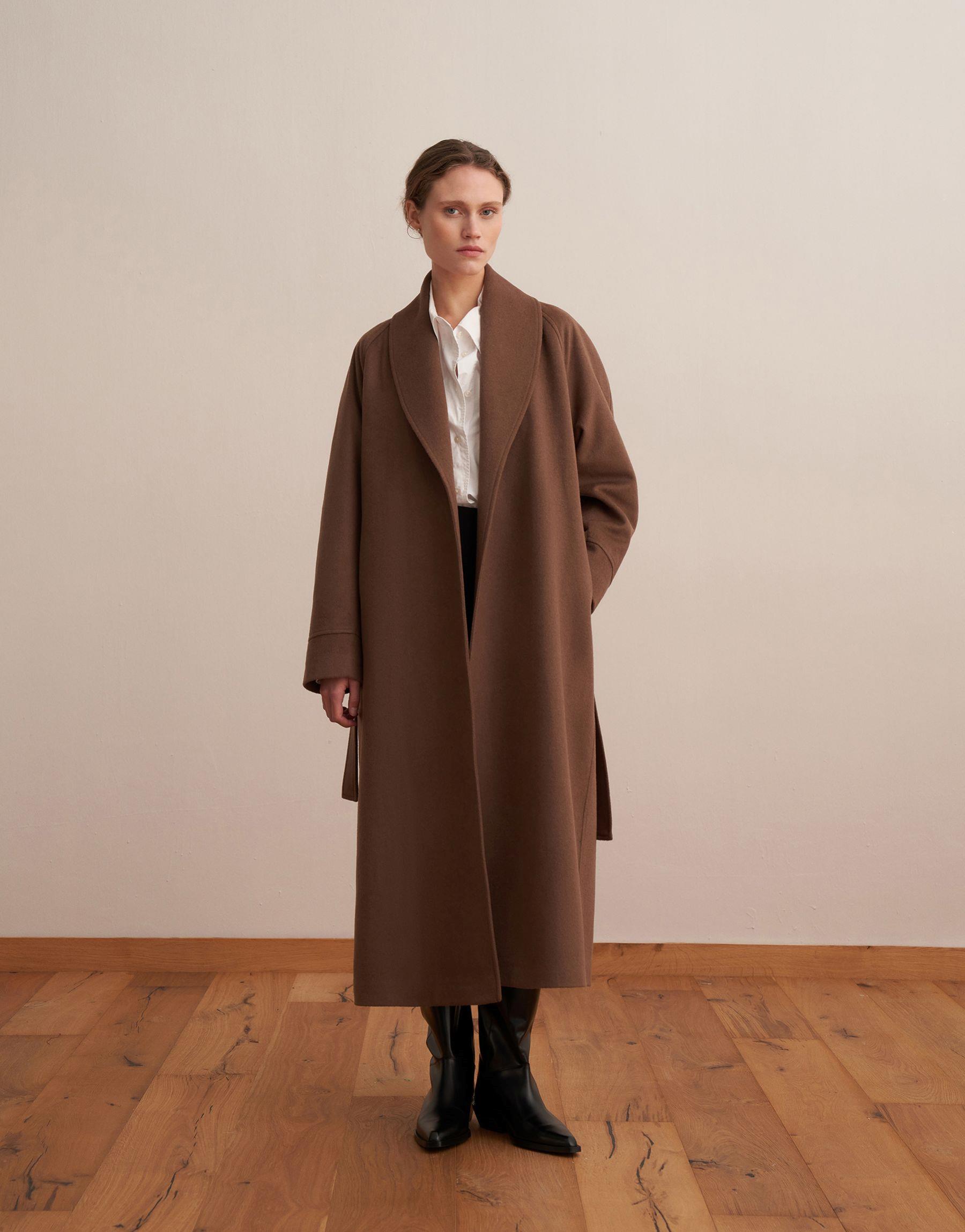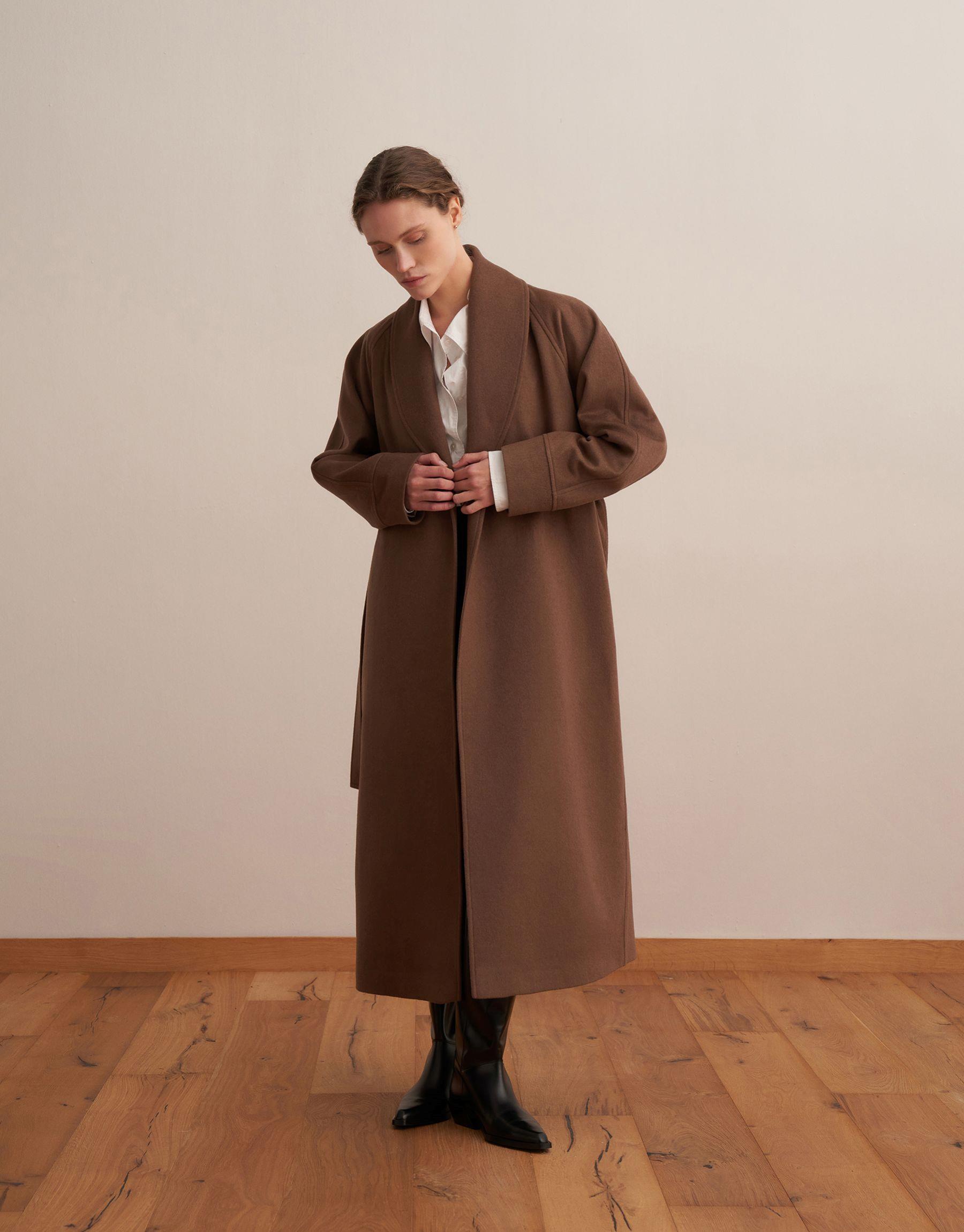 Bayan Sütlü Kahve Şal Yaka Yün Palto | KK Design