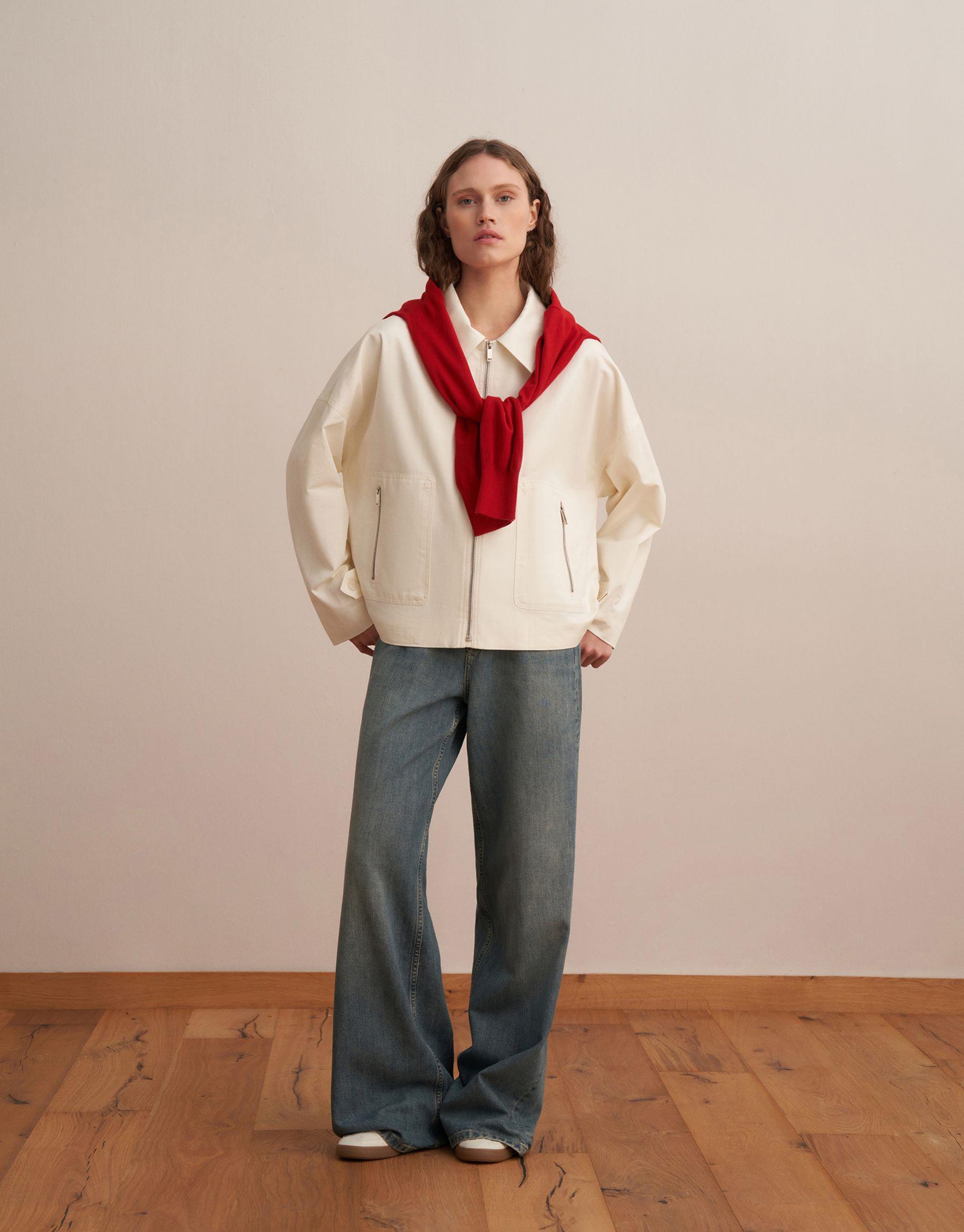 Bayan Ekru Fermuarlı Koton Ceket | KK Design